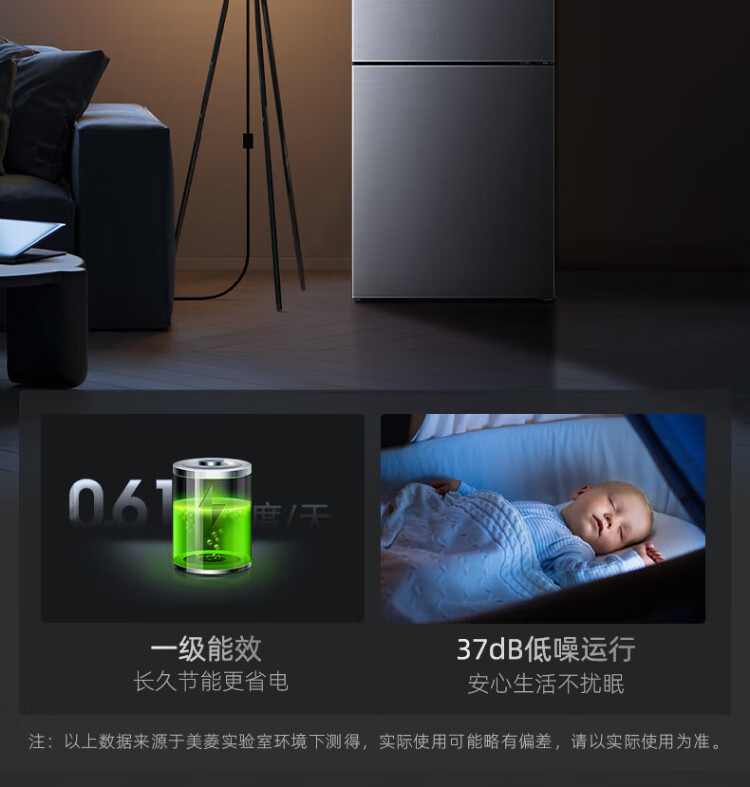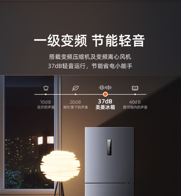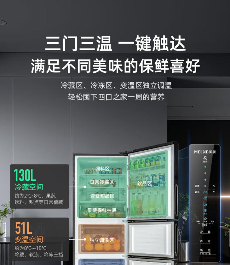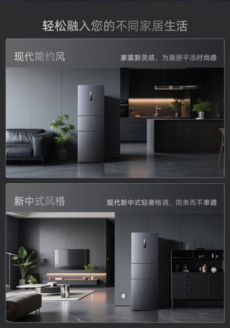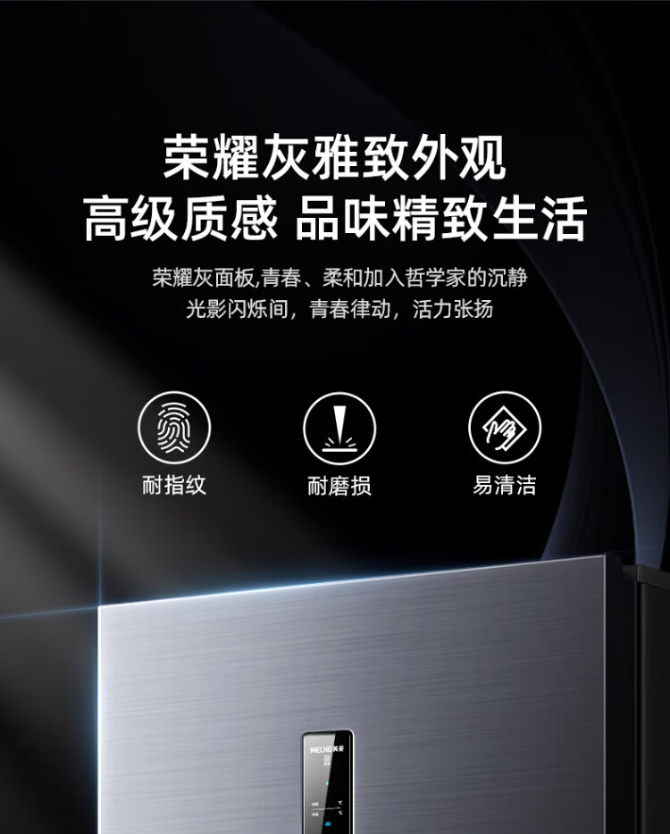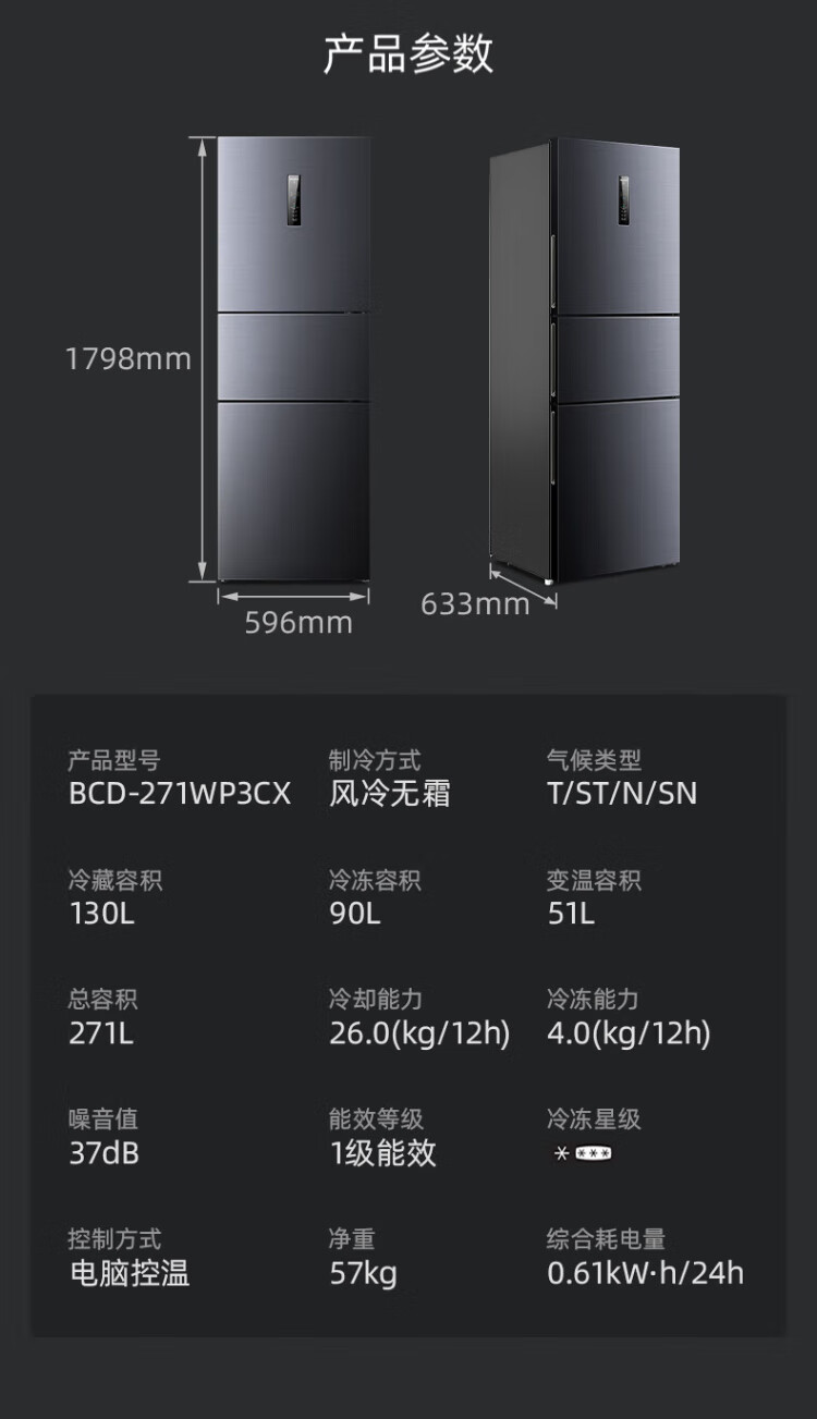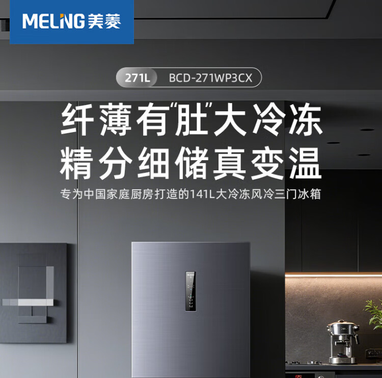 MeiLing ion net 271 liter three-door refrigerator three-door home frequency conversion first-level power-saving air-cooled frost-free dormitory rental small apartment national subsidy BCD-271WP3CX glory gray