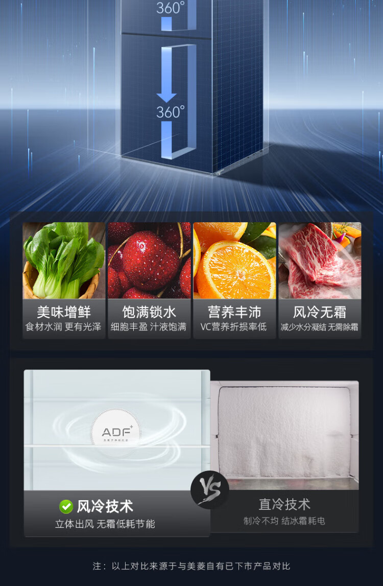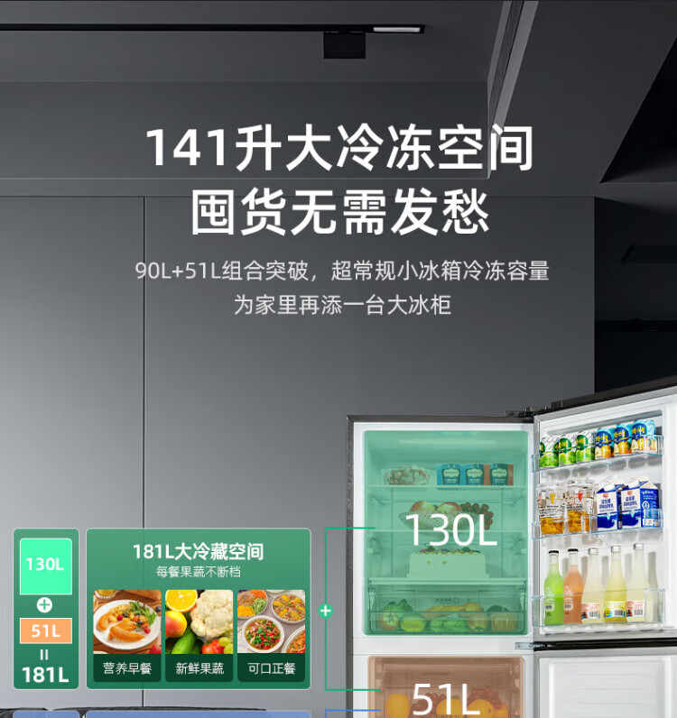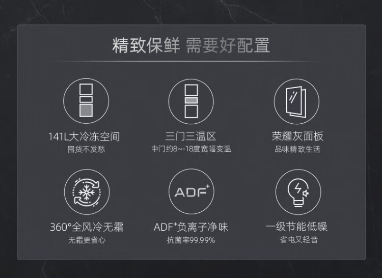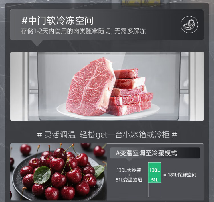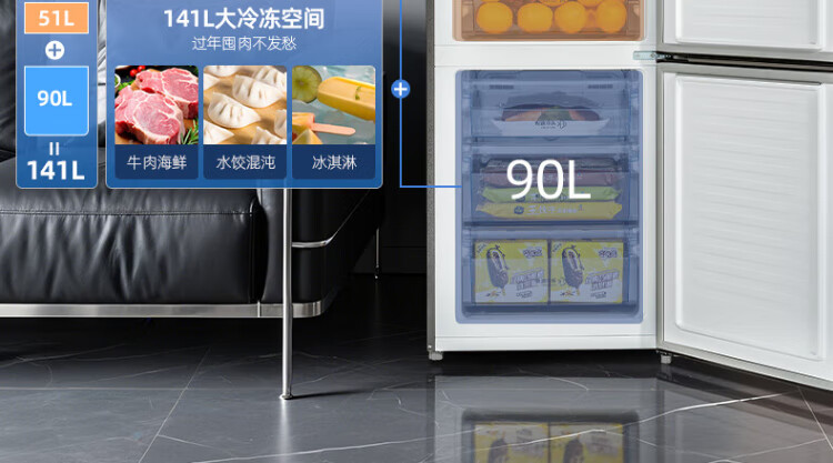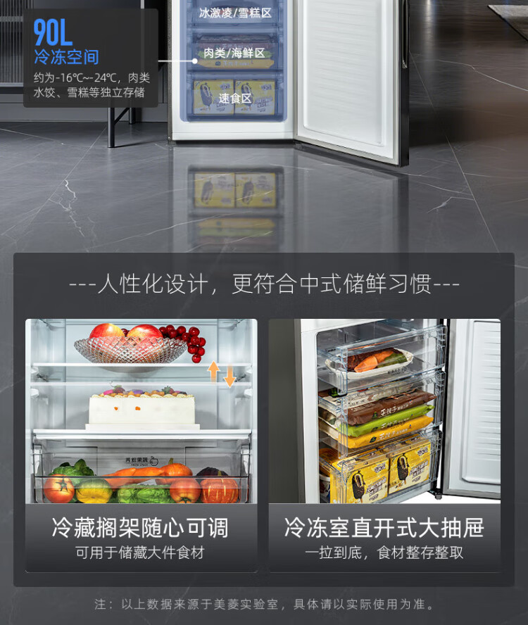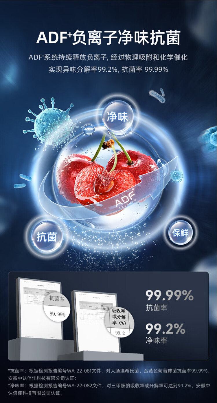 MeiLing ion net 271 liter three-door refrigerator three-door home frequency conversion first-level power-saving air-cooled frost-free dormitory rental small apartment national subsidy BCD-271WP3CX glory gray