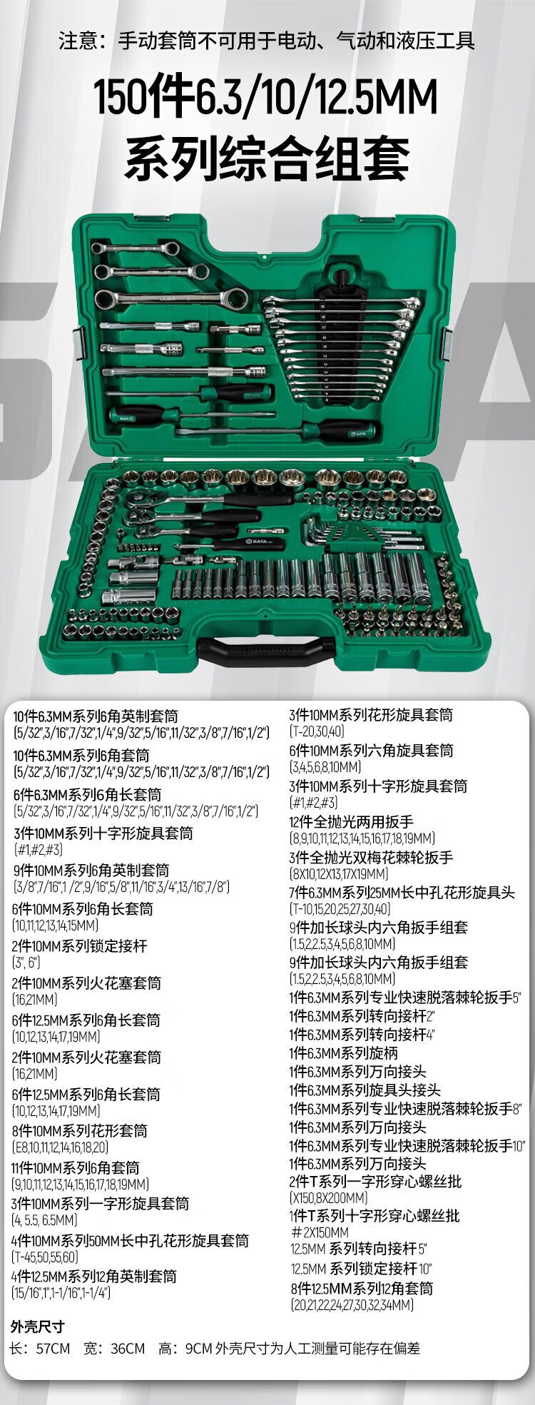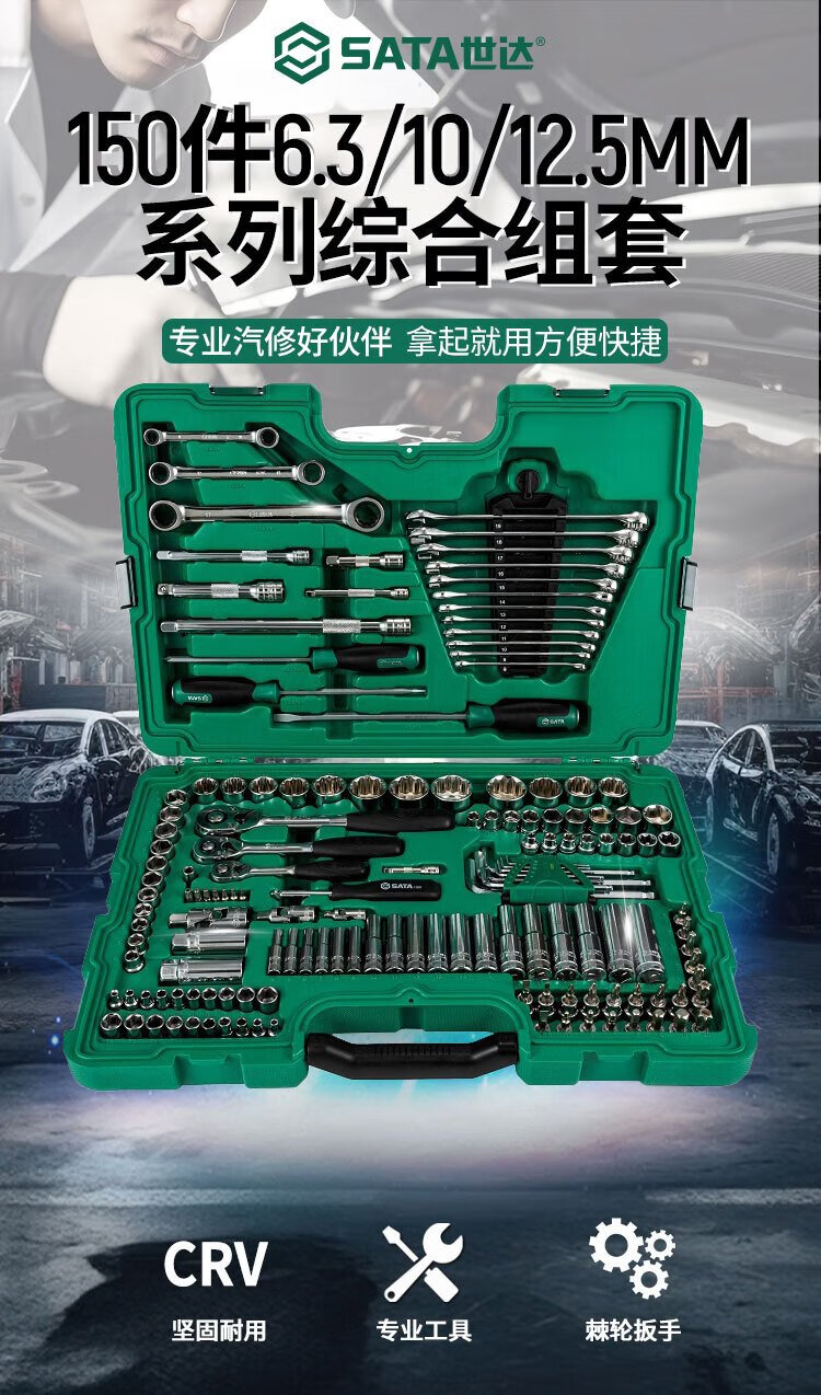 SATA 150-piece small fly, medium fly and large fly ratchet wrench socket comprehensive set tool box 09510
