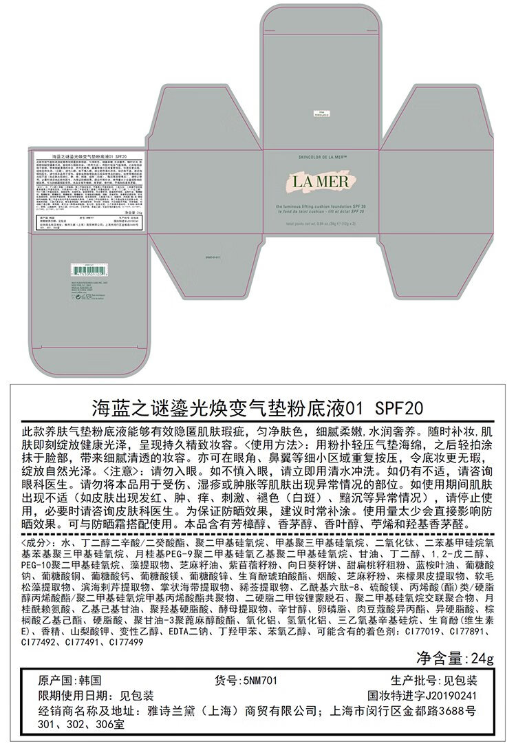 LA MER Radiant Cushion Foundation One Box Double Core 12g*2#01 Porcelain Color SPF20 Cosmetics Birthday Gift