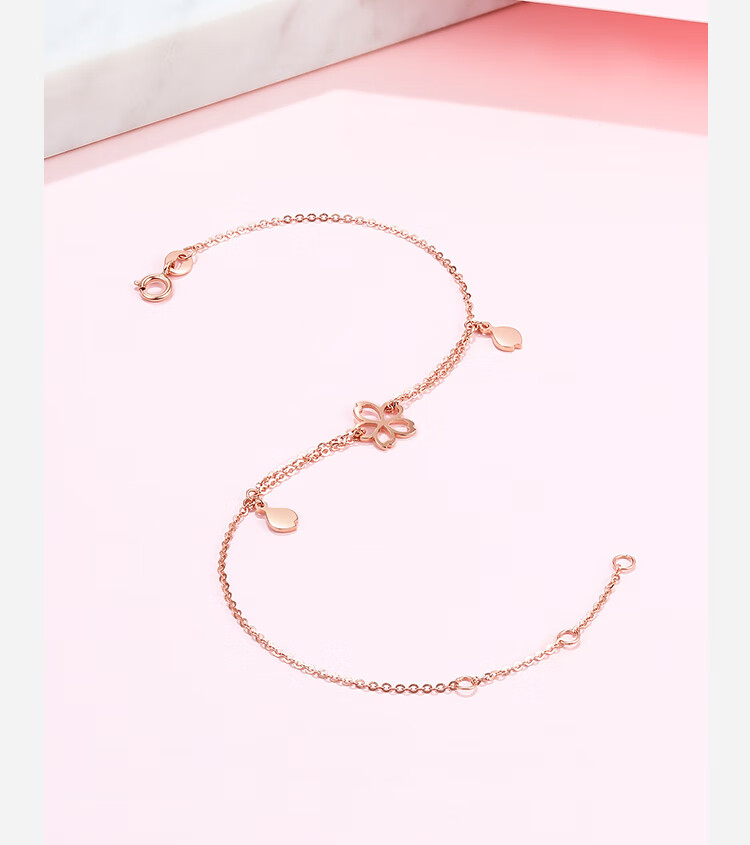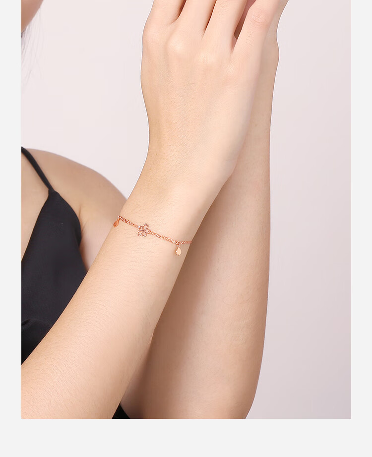 Saturday Fuhong 18K gold bracelet female cherry blossom gold bracelet birthday gift C077936 about 16+3cm