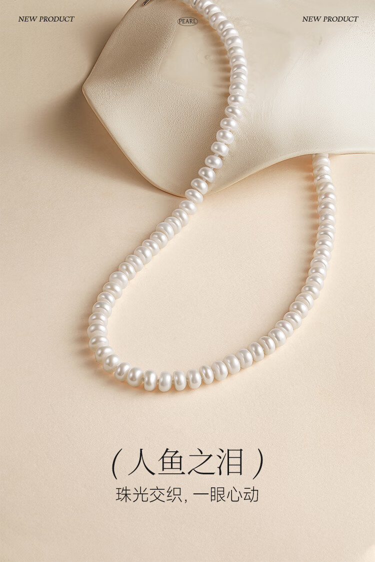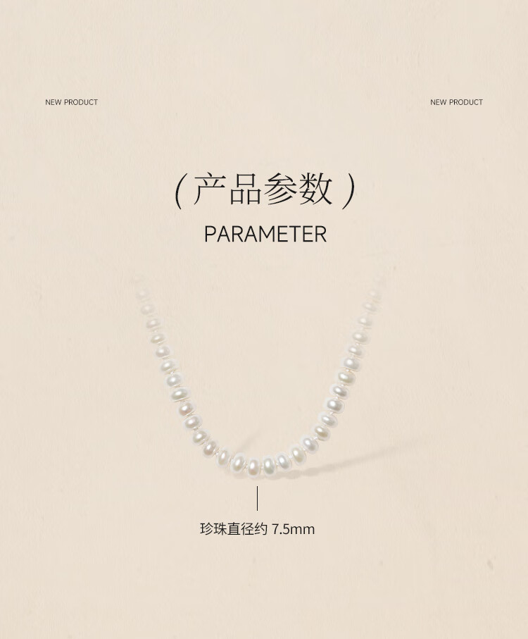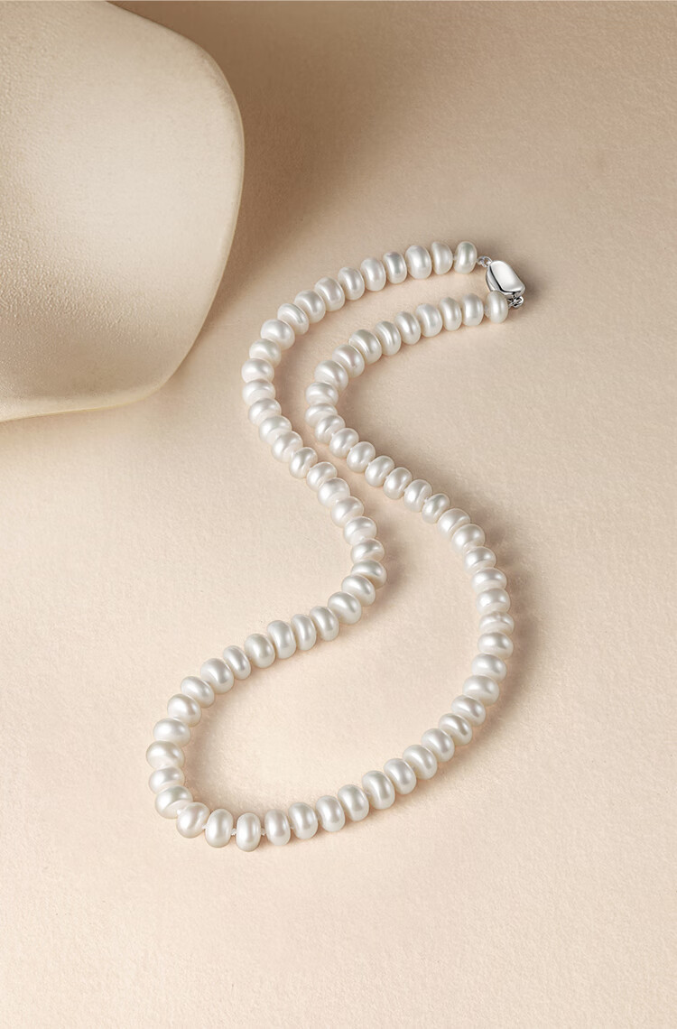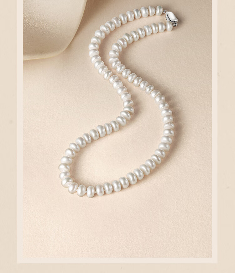 Saturday Fortune S925 Silver Buckle Pearl Necklace Mom Birthday Gift X058607 Oblate Round Approx. 7.5mm 45cm