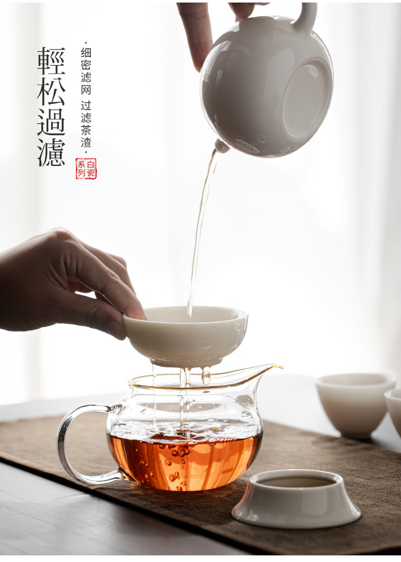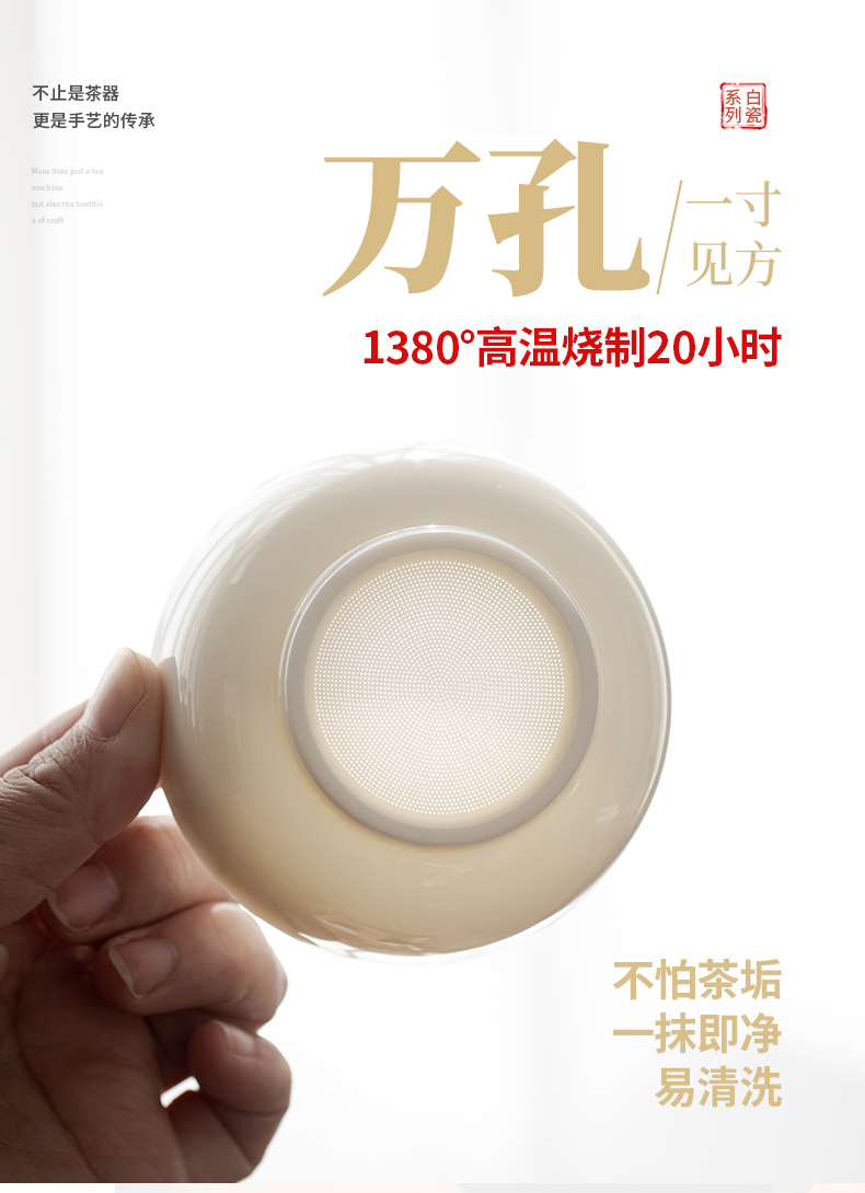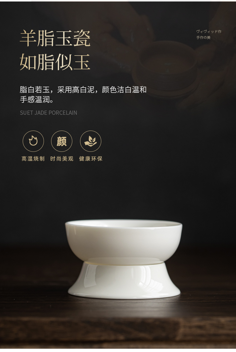 SUSHI CERAMICS tea drain mutton fat jade all-white porcelain one-piece tea strainer creative tea separator tea set accessories J0425