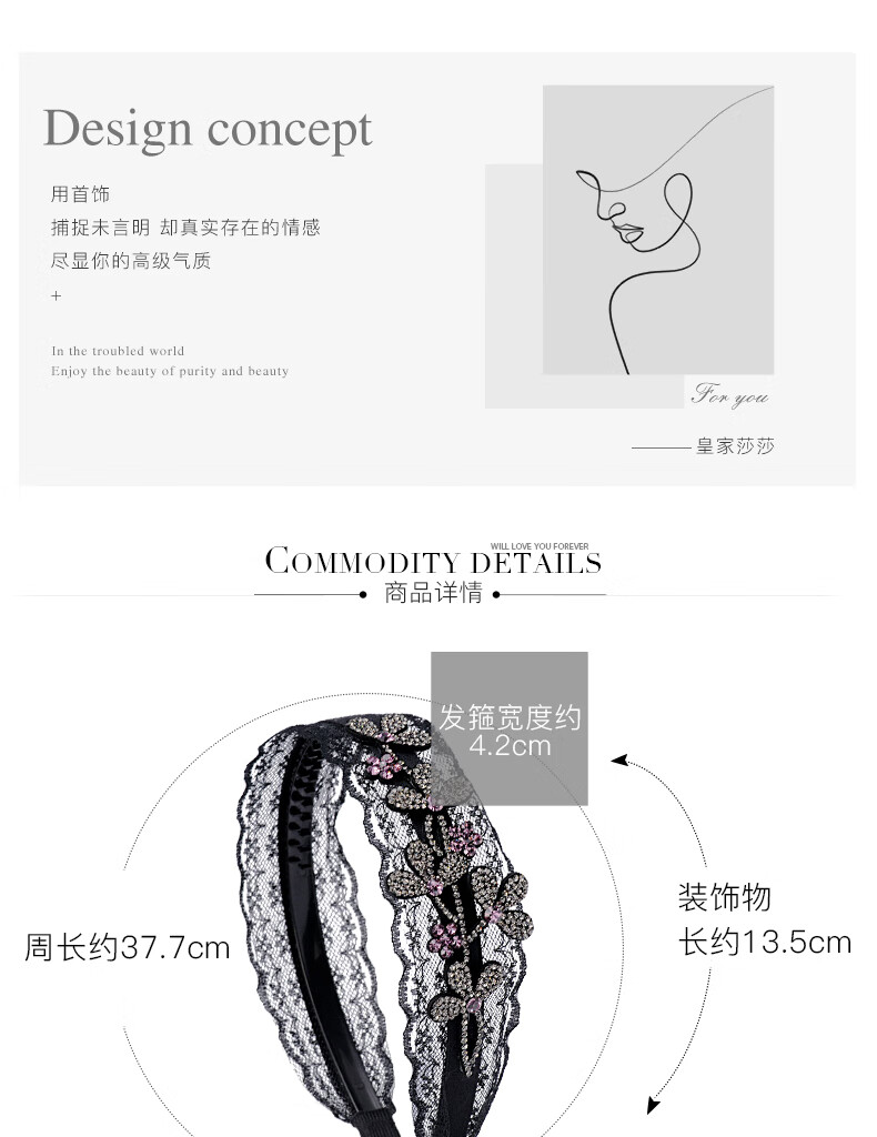 Royal sasa royal salsa hair hoop wide-brimmed hair headband imitation crystal handmade lace fabric hairpin hairpin head
