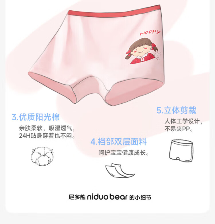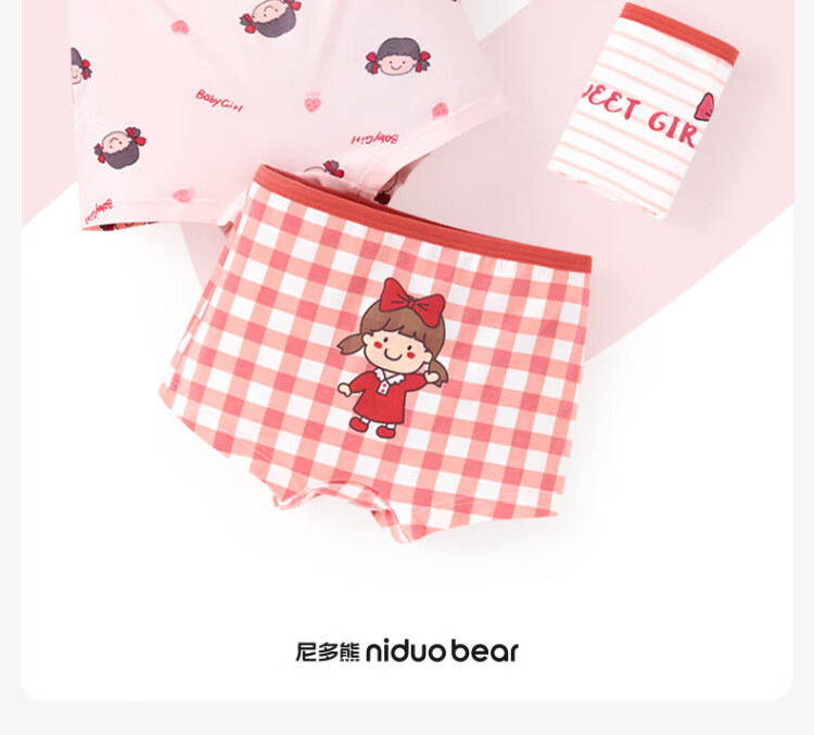 Nido Bear children's underwear for girls, middle and large children, category A, boxer pure cotton, baby, no clip pp, breathable and comfortable boxer shorts, size S