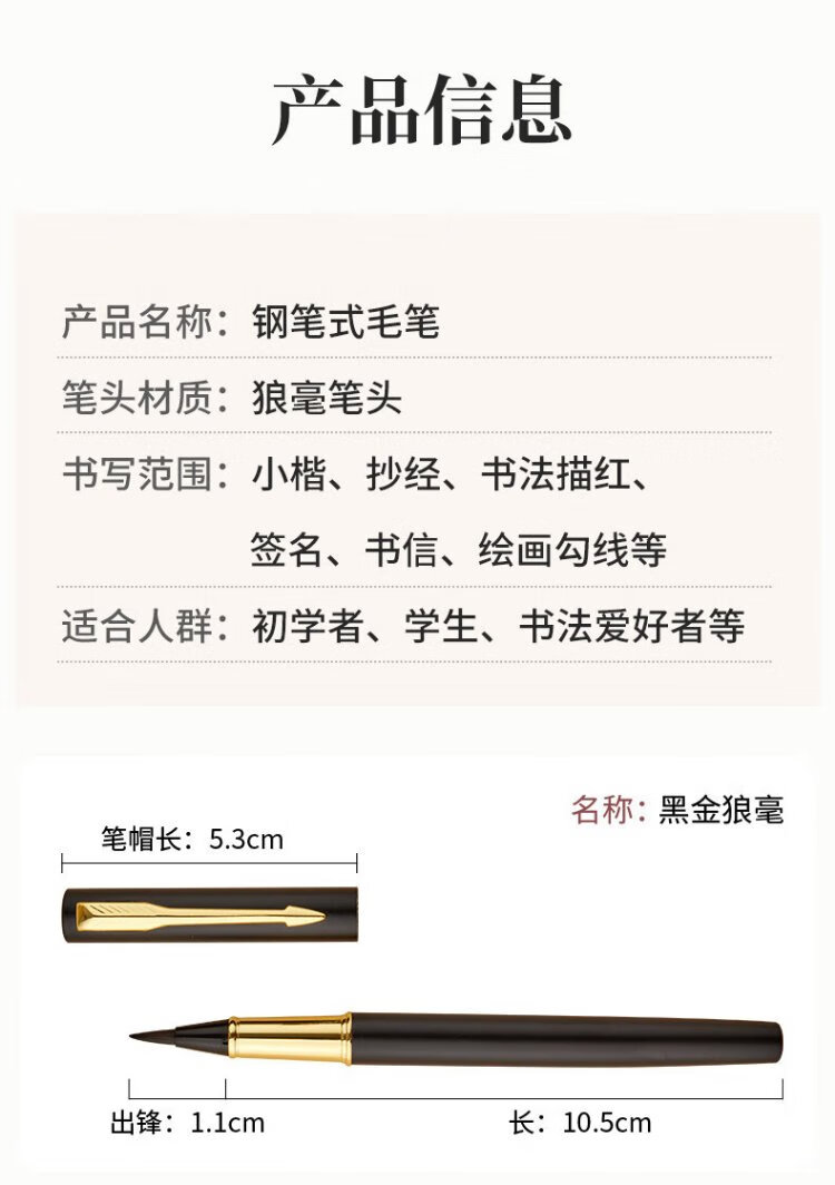 Liupin Academy soft pen fountain pen style brush with refillable ink soft tip brush Langhao portable small regular script calligraphy sutra copying pen small character brush extra fine art pen gift pen brush