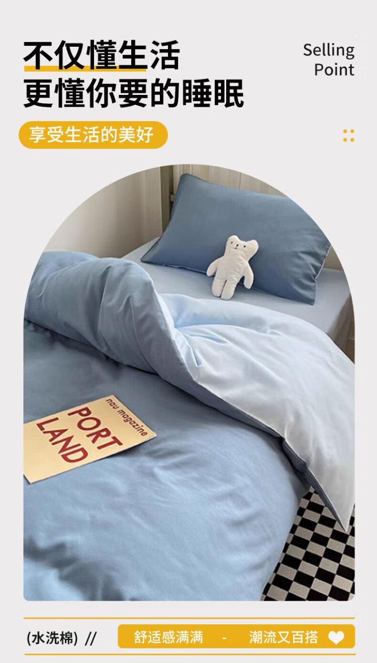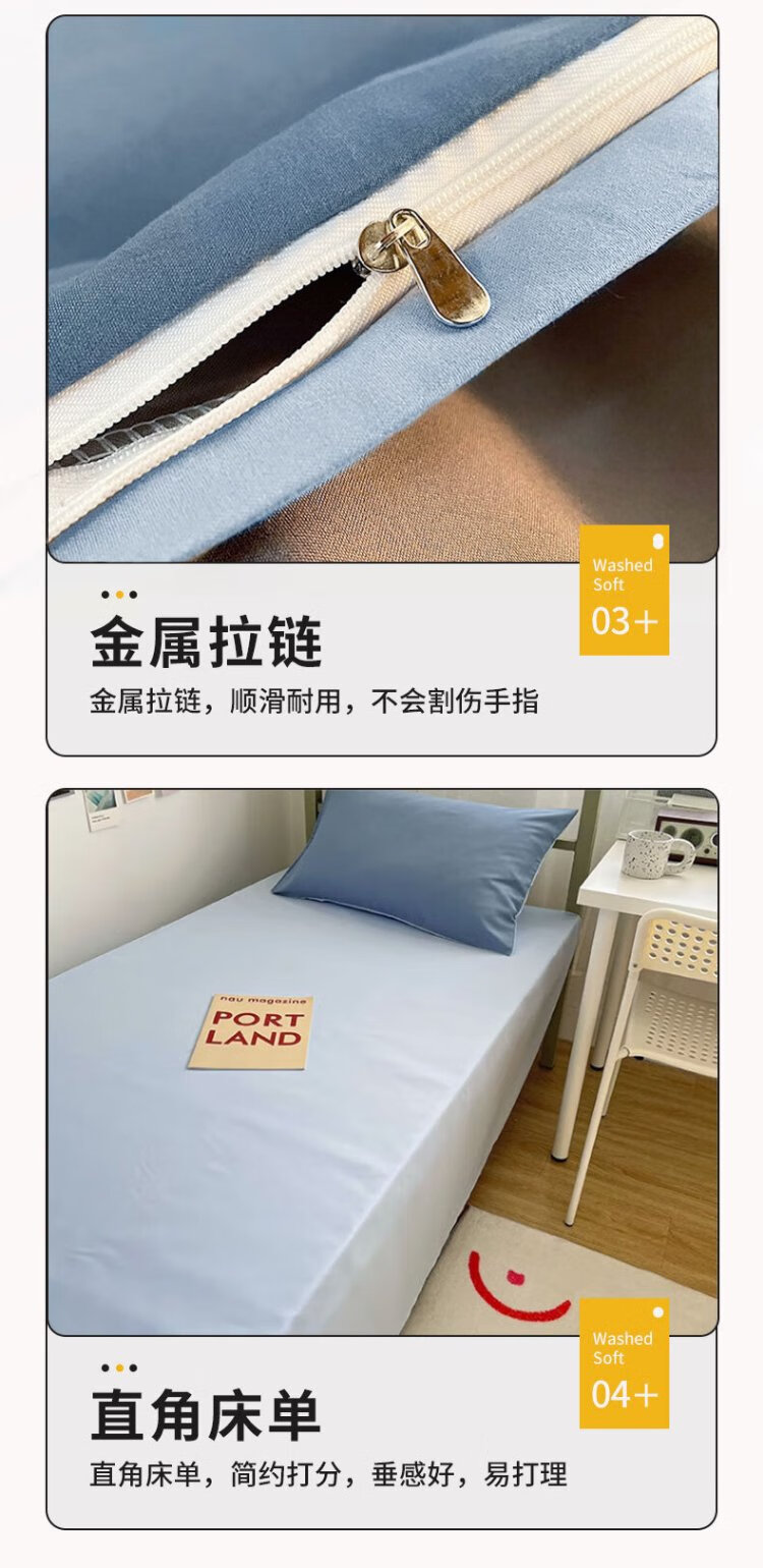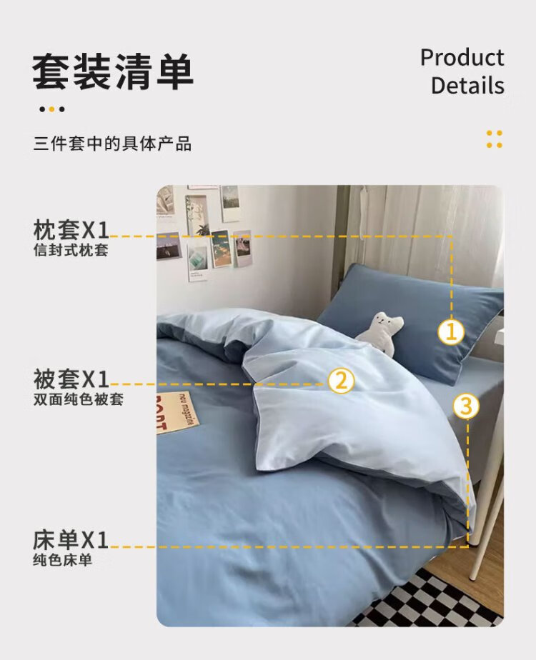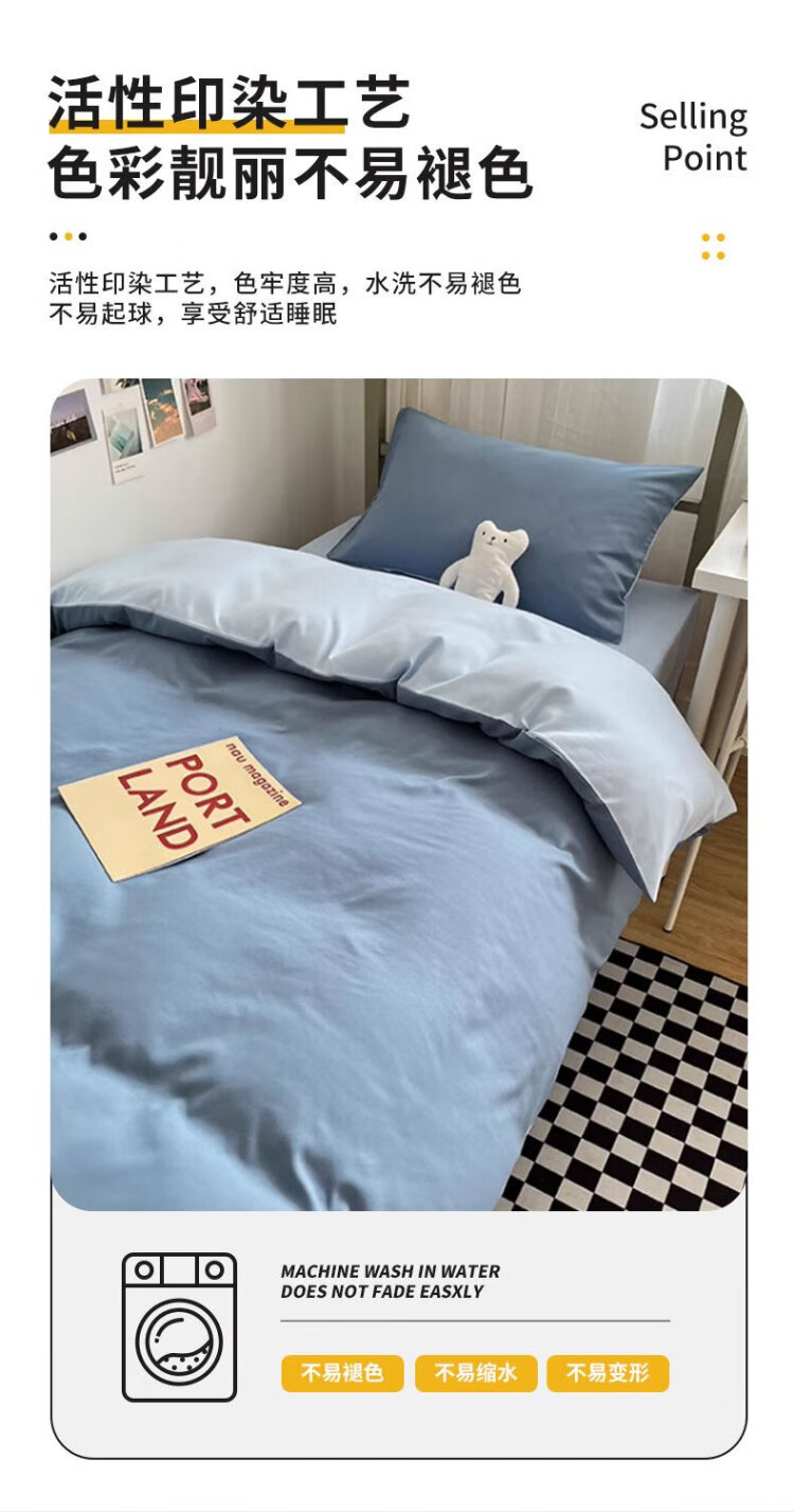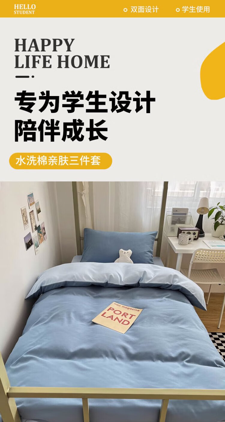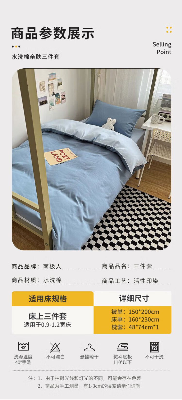 Nanjiren student dormitory single bed and lower bunk three-piece set 0.9/1.2m bed sheet, pillowcase and quilt cover 150*200cm