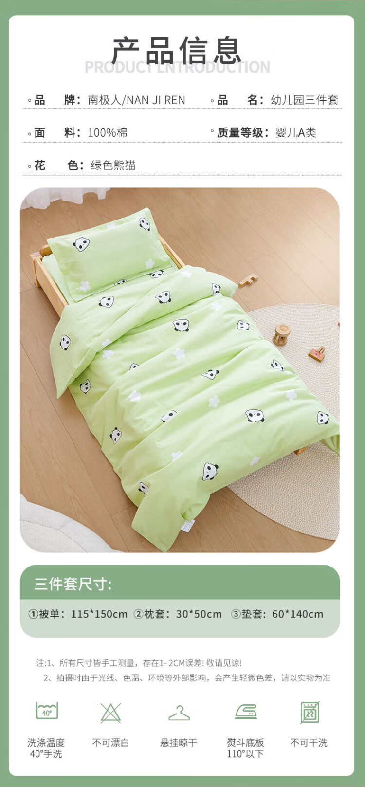 Nanjiren Children's Bedding 3-piece Set Pure Cotton Quilt Cover Pillowcase Cushion Cover Baby Quilt Cover Class A Kindergarten Napping Supplies