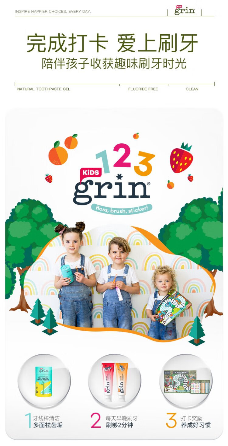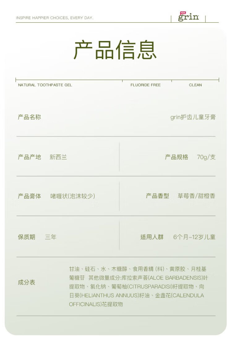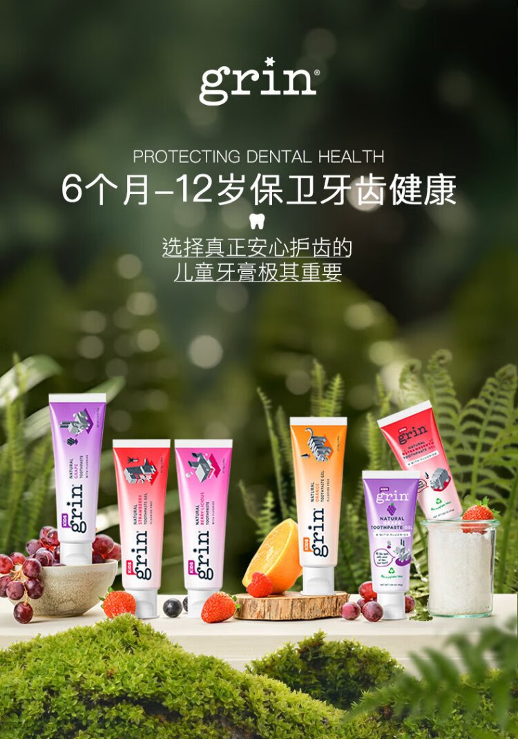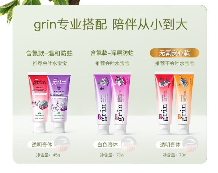 Grin baby children's toothpaste fluoride-free, fluoride-free, anti-moth, 0-3-6 years old infant toothpaste gum care 70g strawberry flavor