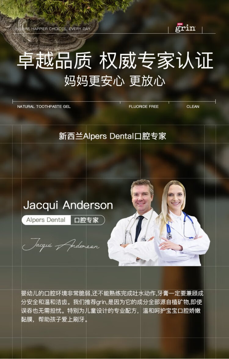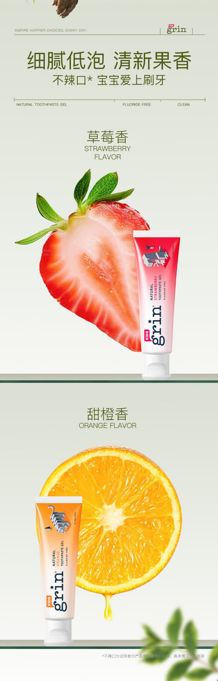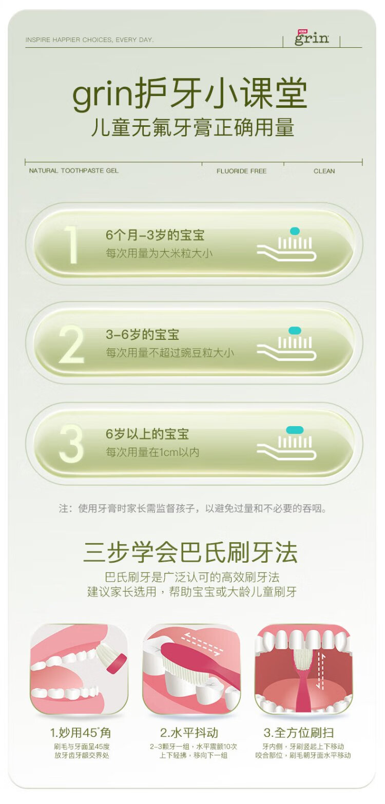 Grin baby children's toothpaste fluoride-free, fluoride-free, anti-moth, 0-3-6 years old infant toothpaste gum care 70g strawberry flavor