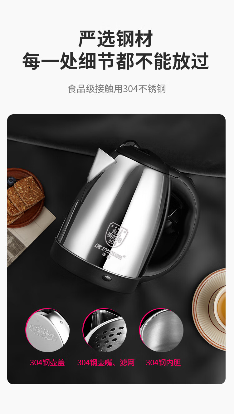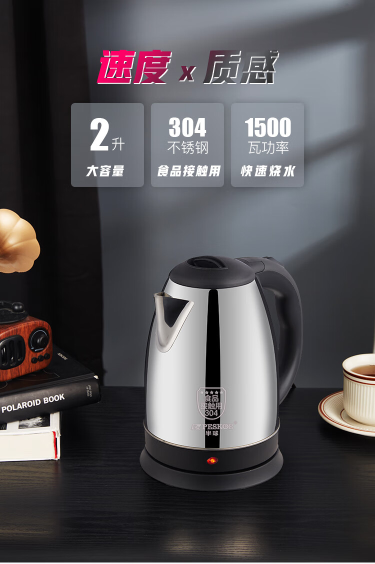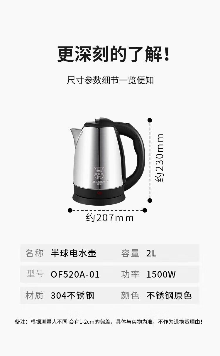 Hemisphere (PESKOE) 2L electric kettle 304 stainless steel electric kettle kettle HL-520E