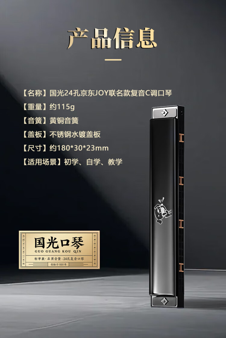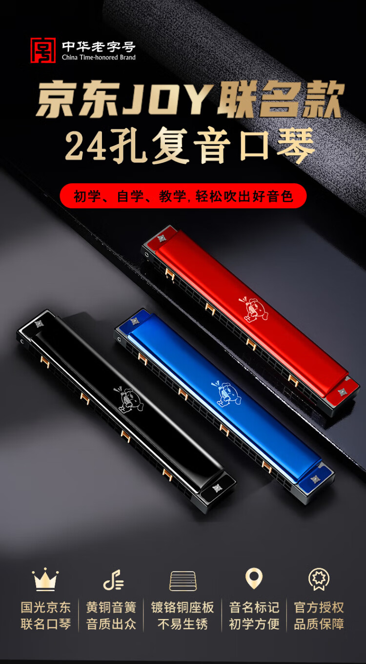 Guoguang Beginner's 24-hole JOY Joint Commemorative Edition Polyphonic C Harmonica Chinese Red Playing Instructions