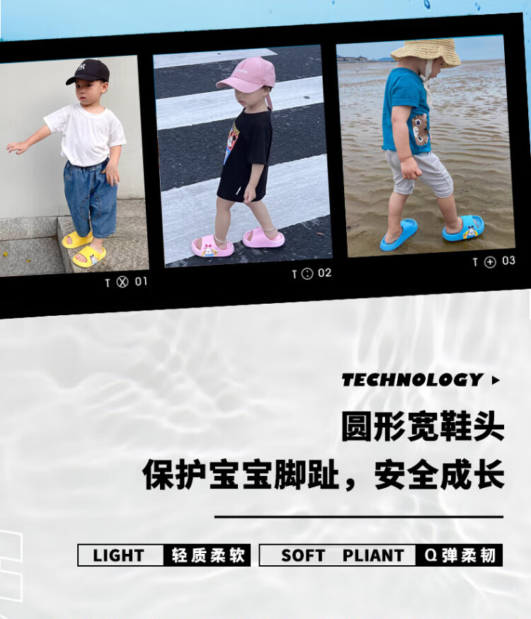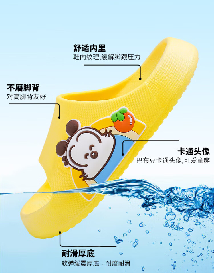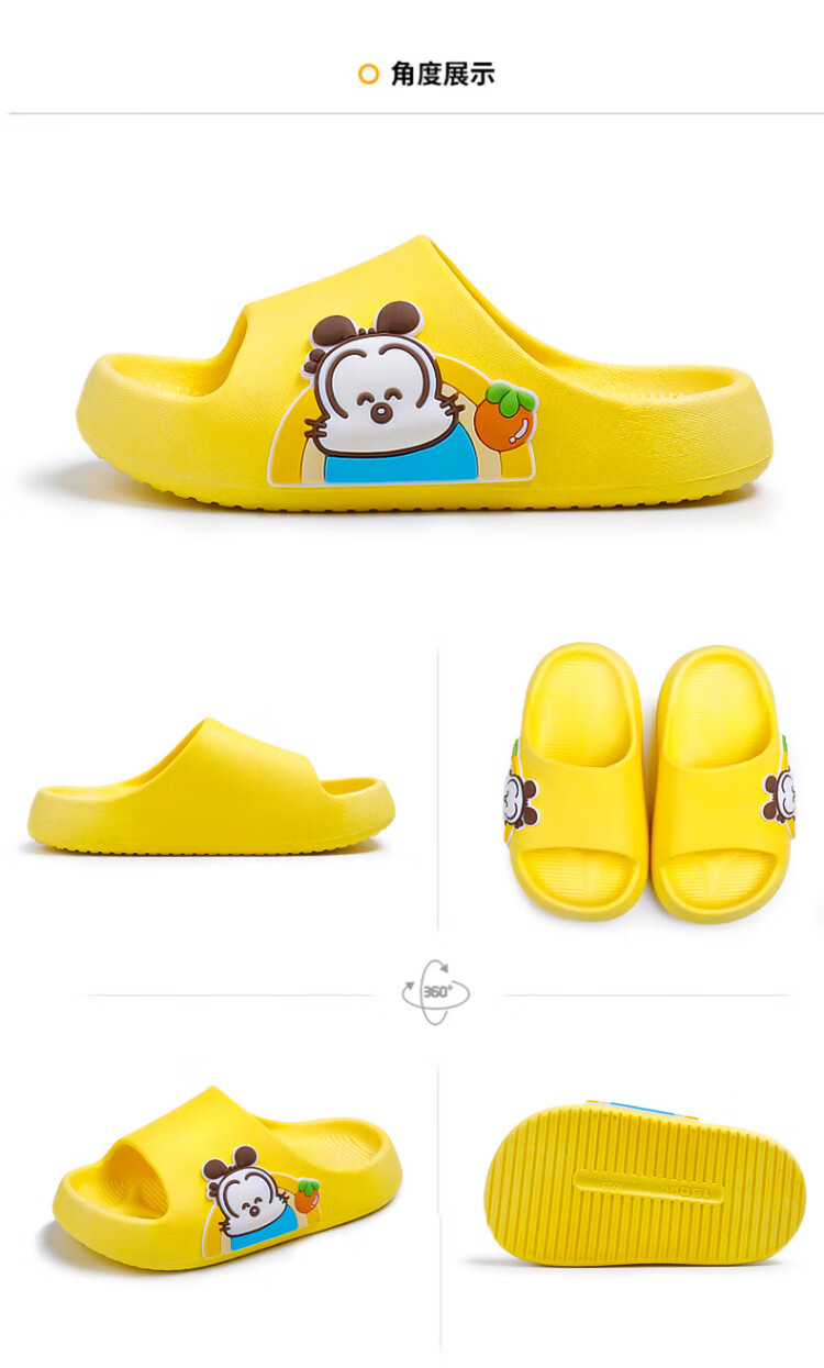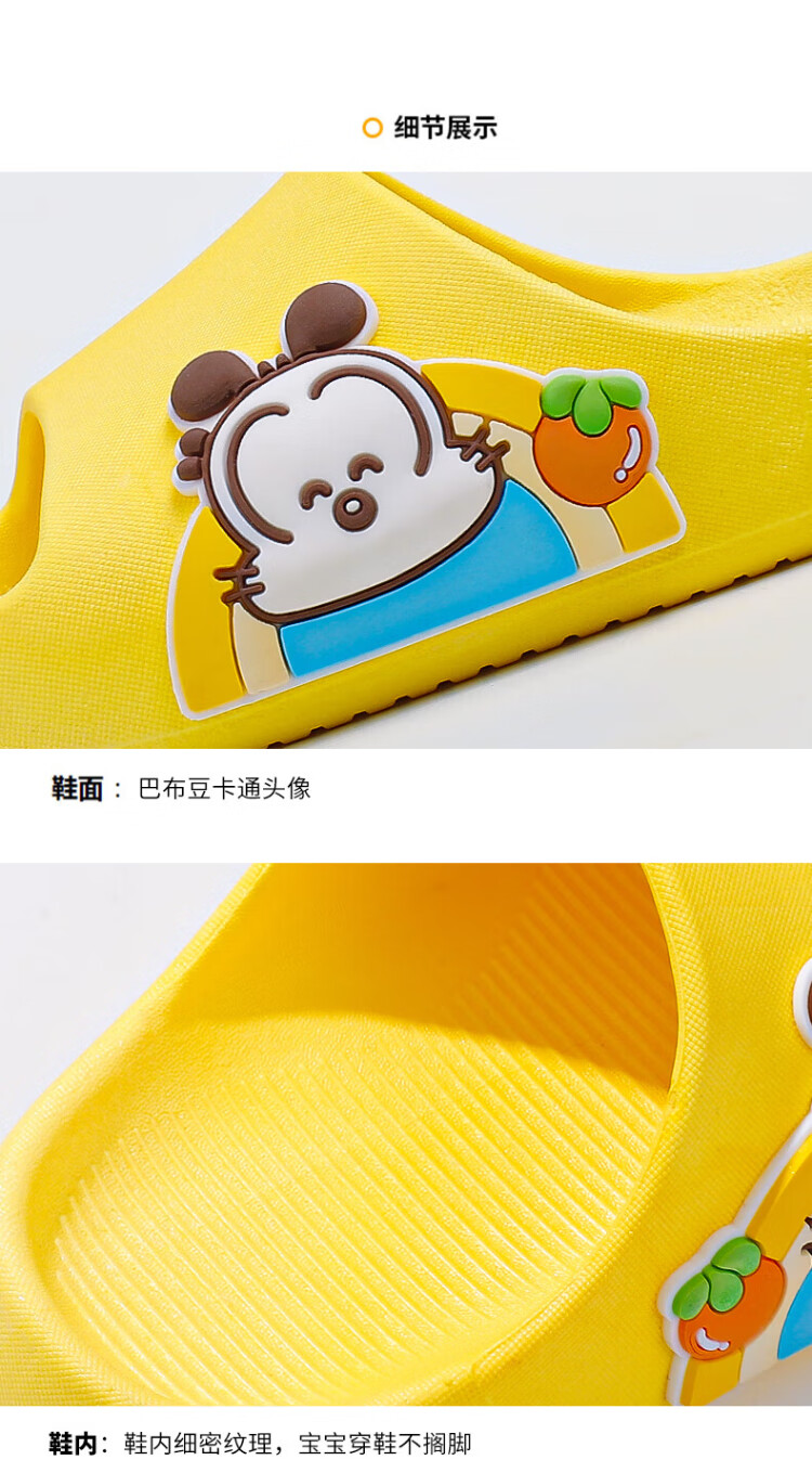Babudou children's slippers for boys and girls soft-soled home bathroom summer slippers yellow 150 yards