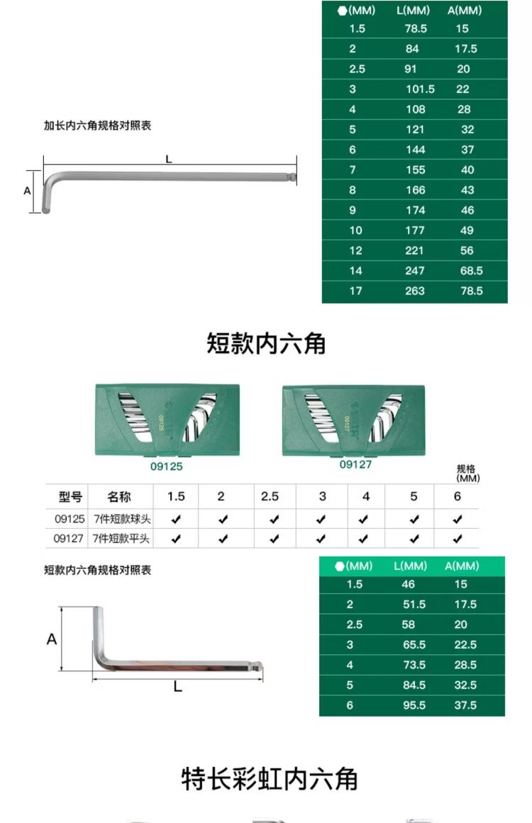 SATA Tools 9-piece power-increasing special long ball head hexagonal wrench set 09124