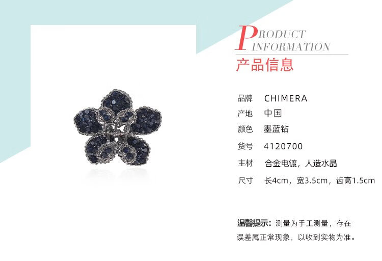 Chimera (CHIMERA) crystal flower small hair clip women's hair accessories bangs top clip half-tied hairpin girl birthday gift