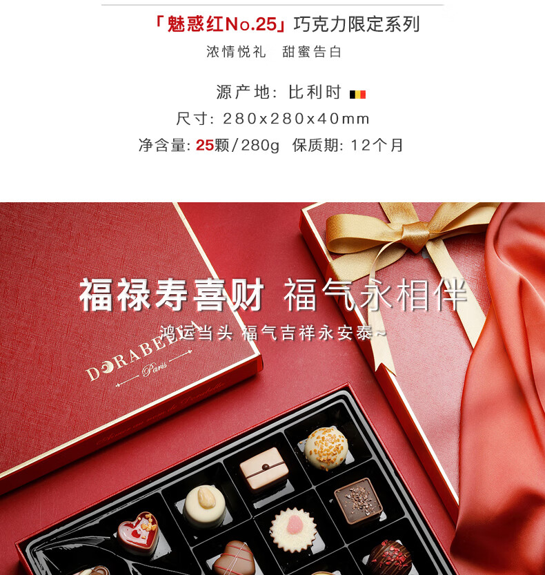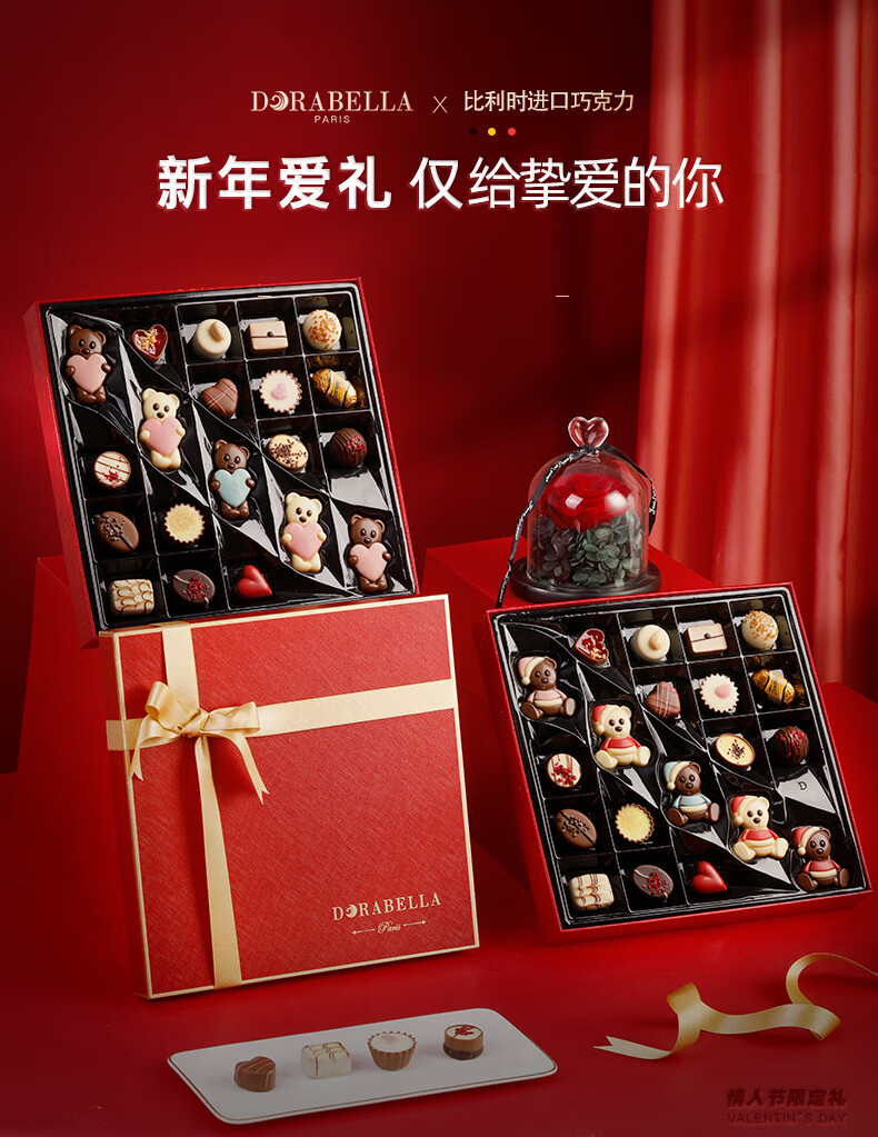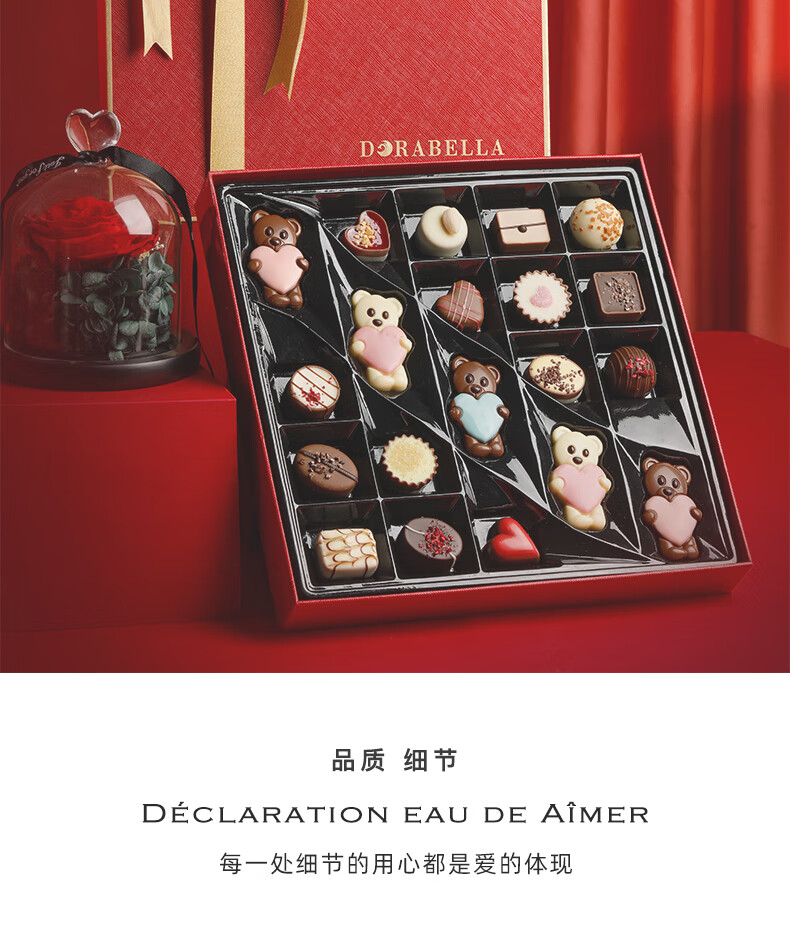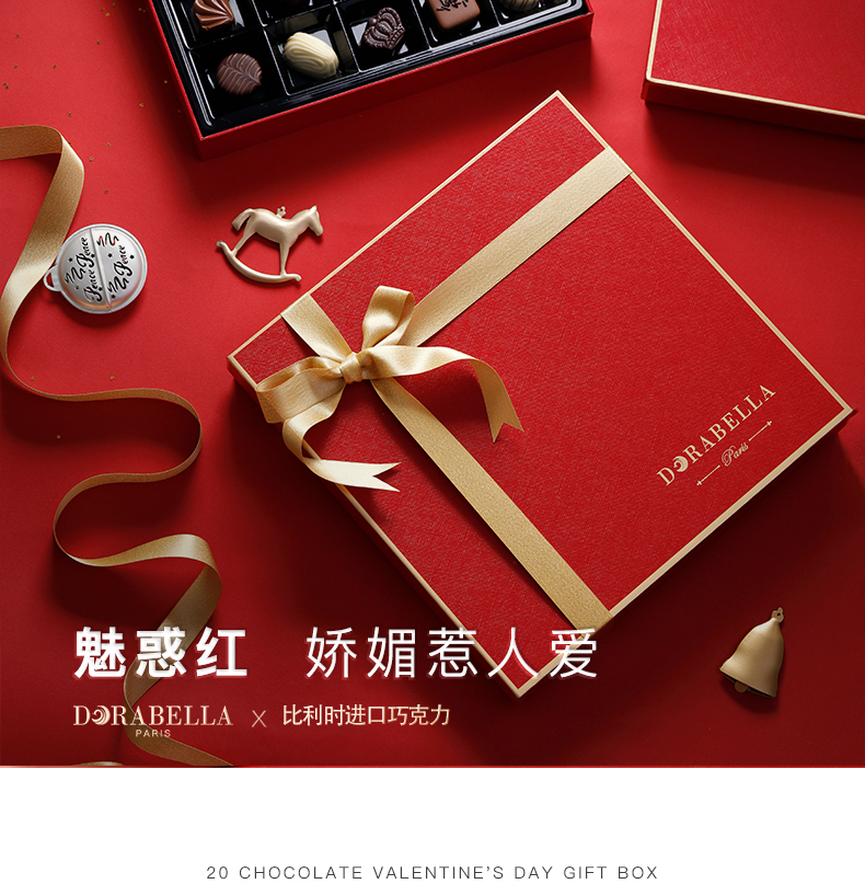 Dorabella imported chocolates from Belgium as gifts for employees, boyfriends, girlfriends, candies, wives and best friends, Valentine's Day birthday gifts, Charm Red, 20 pieces in gift box