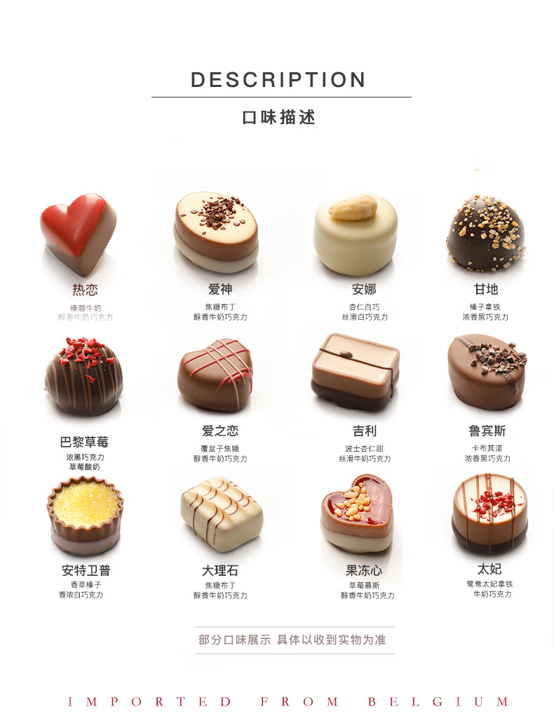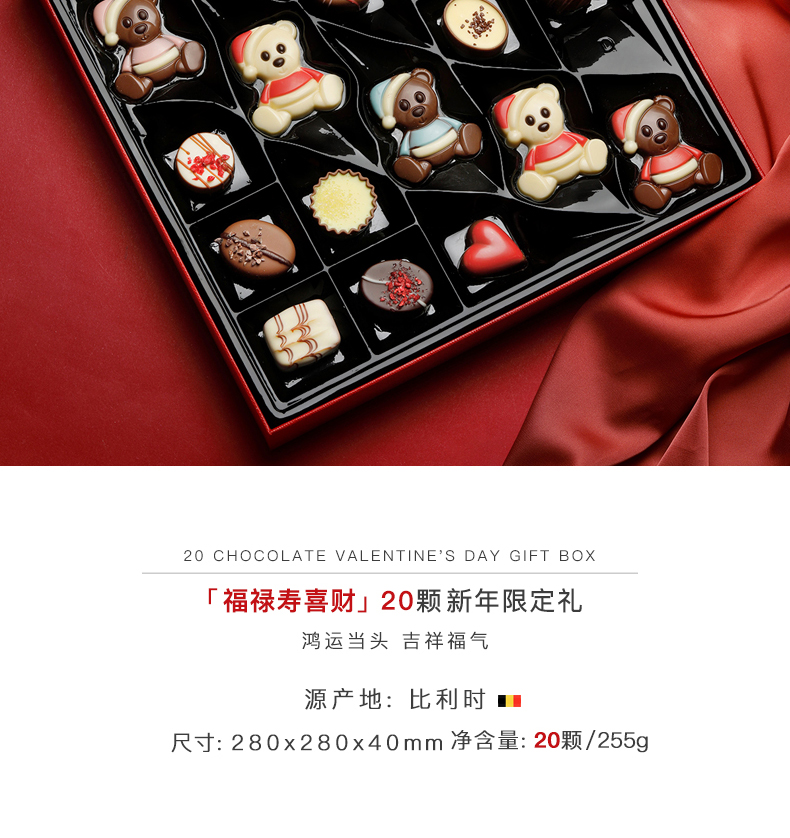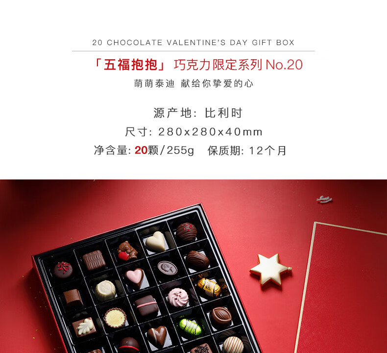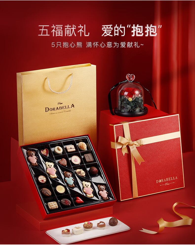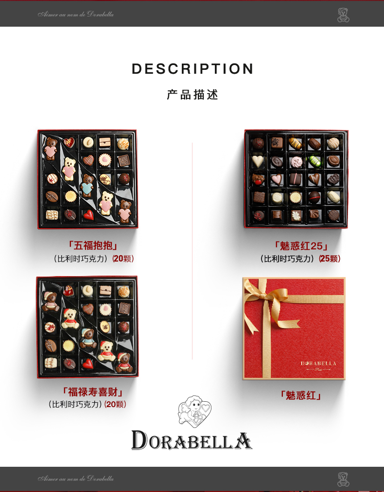 Dorabella imported chocolates from Belgium as gifts for employees, boyfriends, girlfriends, candies, wives and best friends, Valentine's Day birthday gifts, Charm Red, 20 pieces in gift box