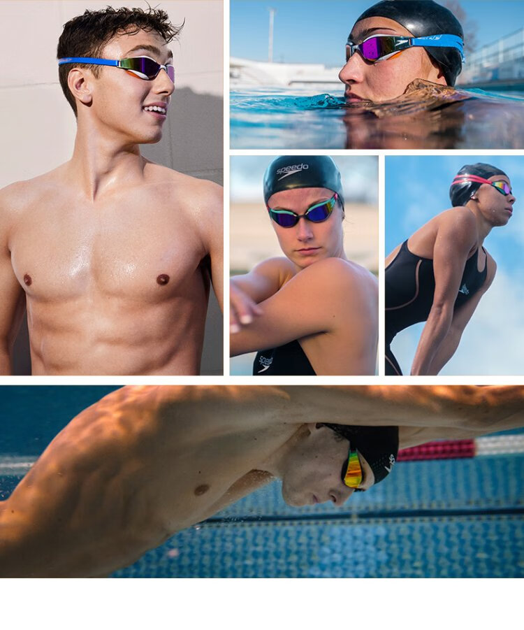 Speedo Racing Swimming Goggles Fastskin Shark Skin Ultra Platinum Series Competition Training Anti-fog Coated Swimming Goggles Dark Night Silver