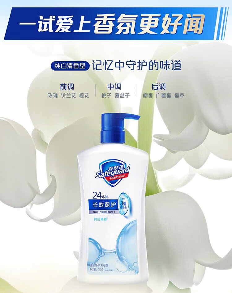 Safeguard Healthy Purifying Shower Gel Cherry Blossom Fragrance 720g Shower Lotion for Men and Women, New and Old Packaging Randomly