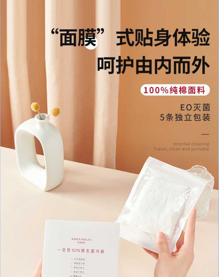 Aimu disposable underwear, 5 pack, no-wash EO sterilized daily travel underwear, white 165