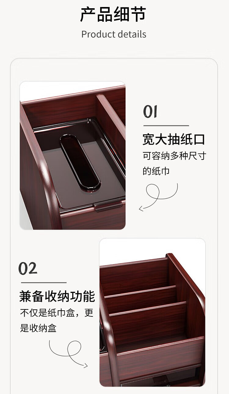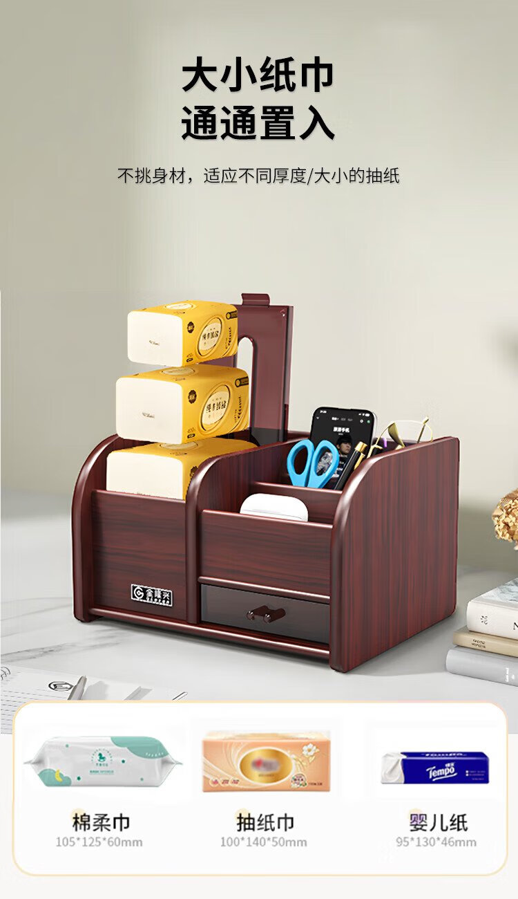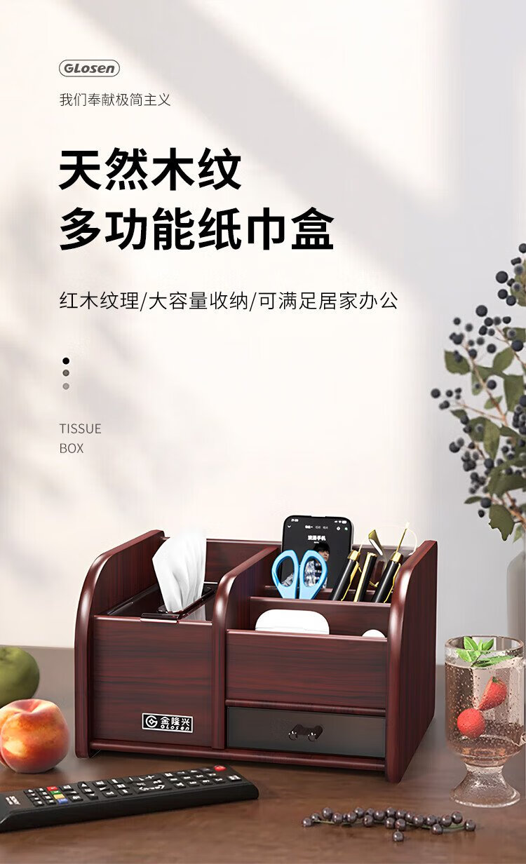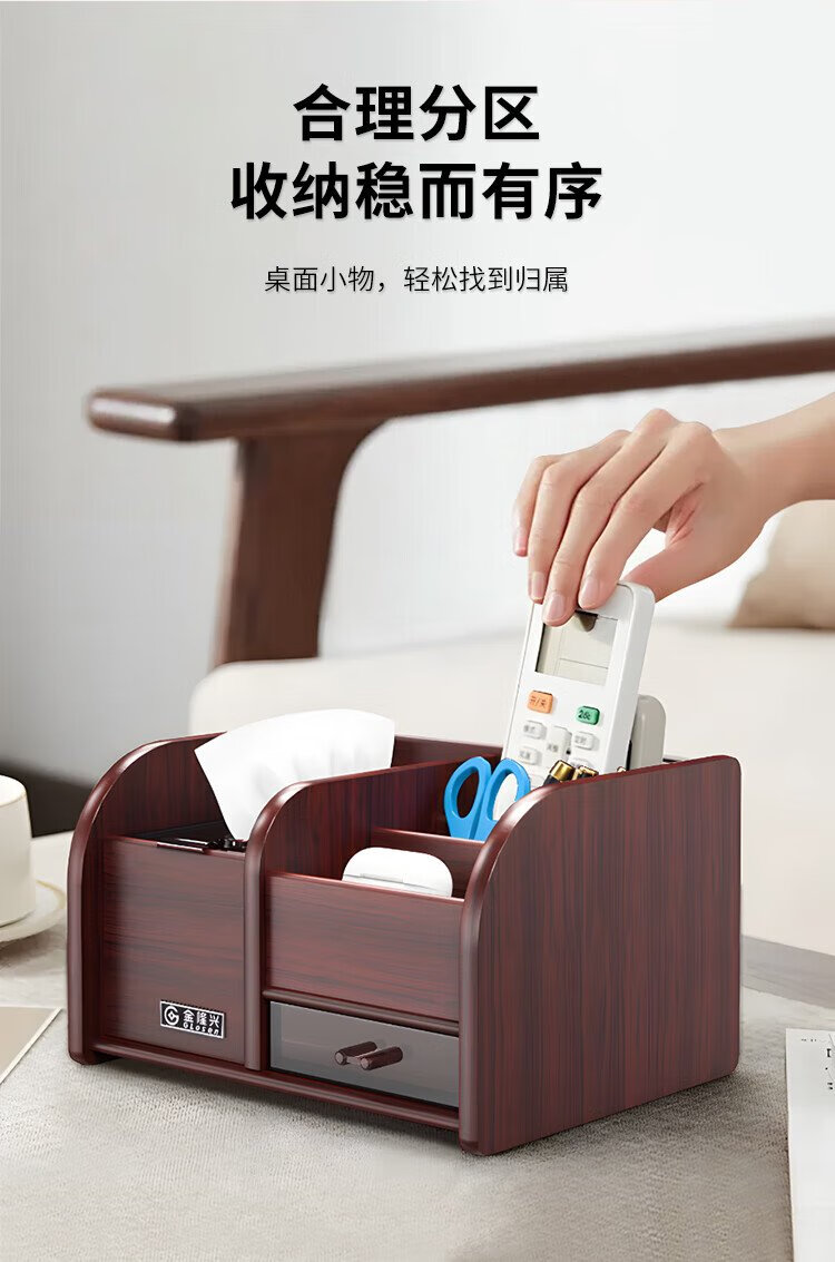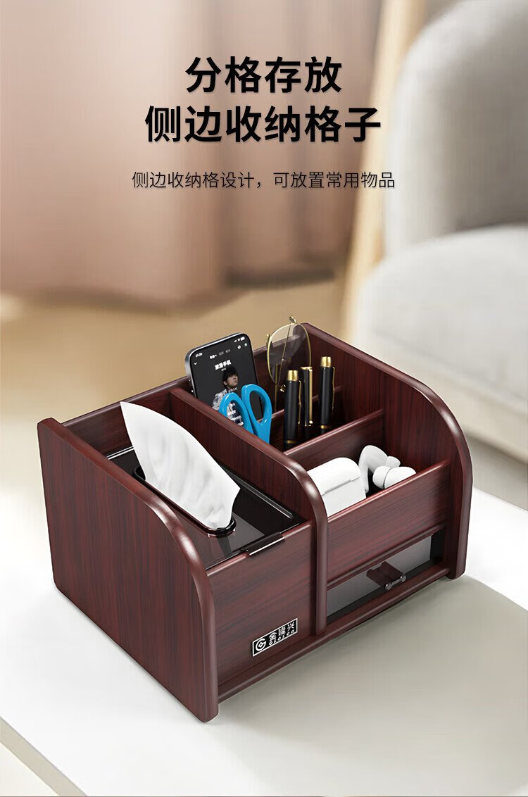Jin Longxing multifunctional light luxury wooden desktop tissue box office home living room coffee table remote control storage box paper box