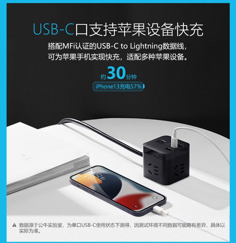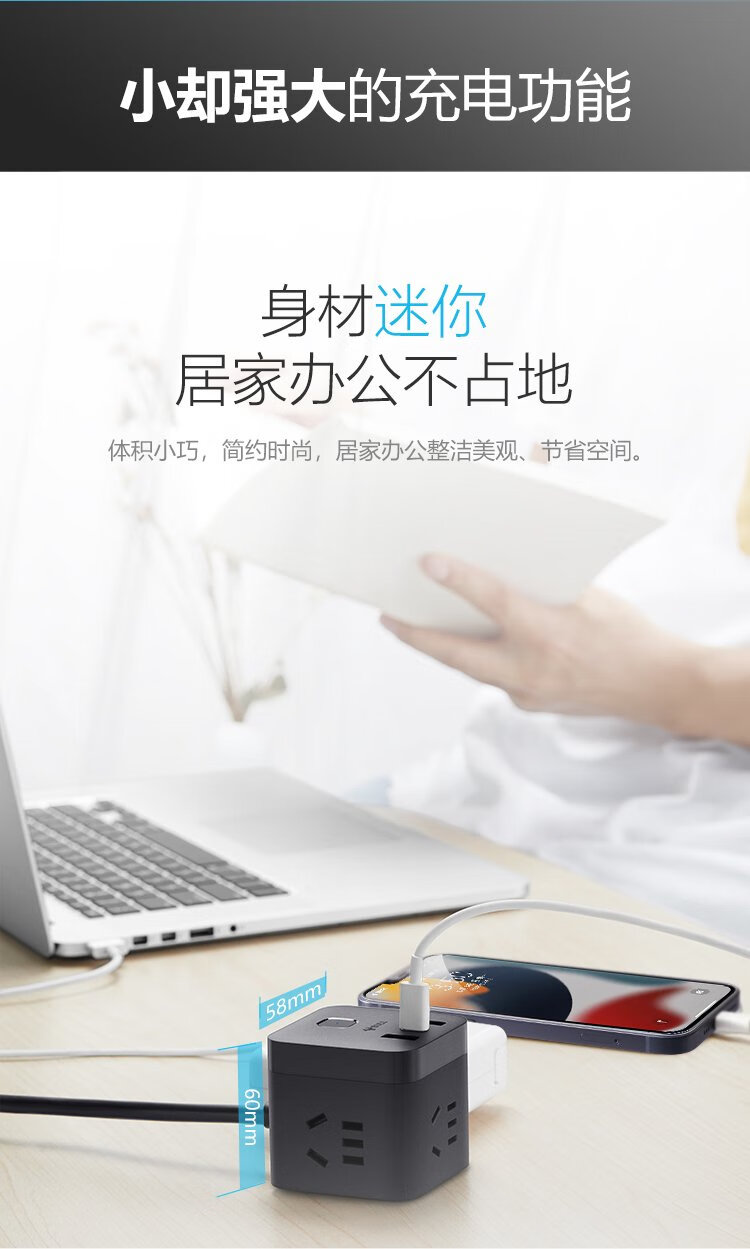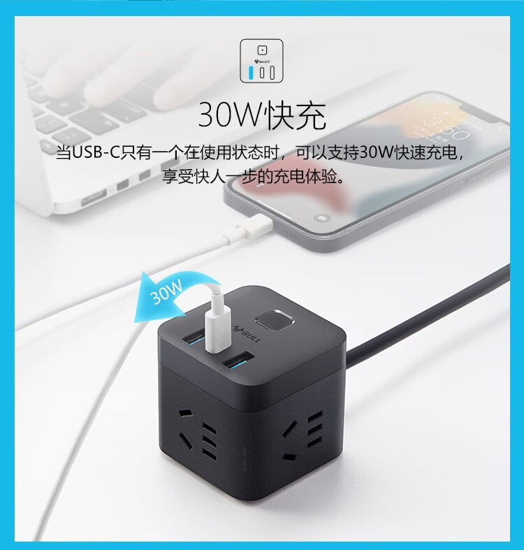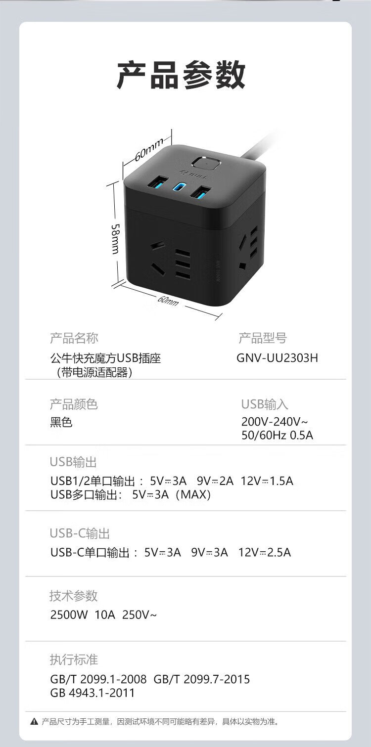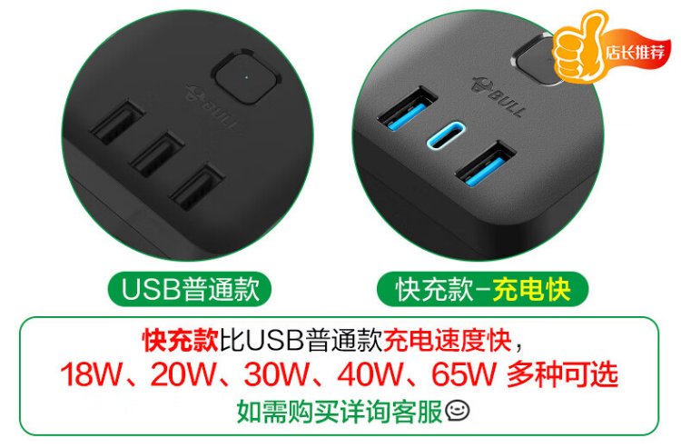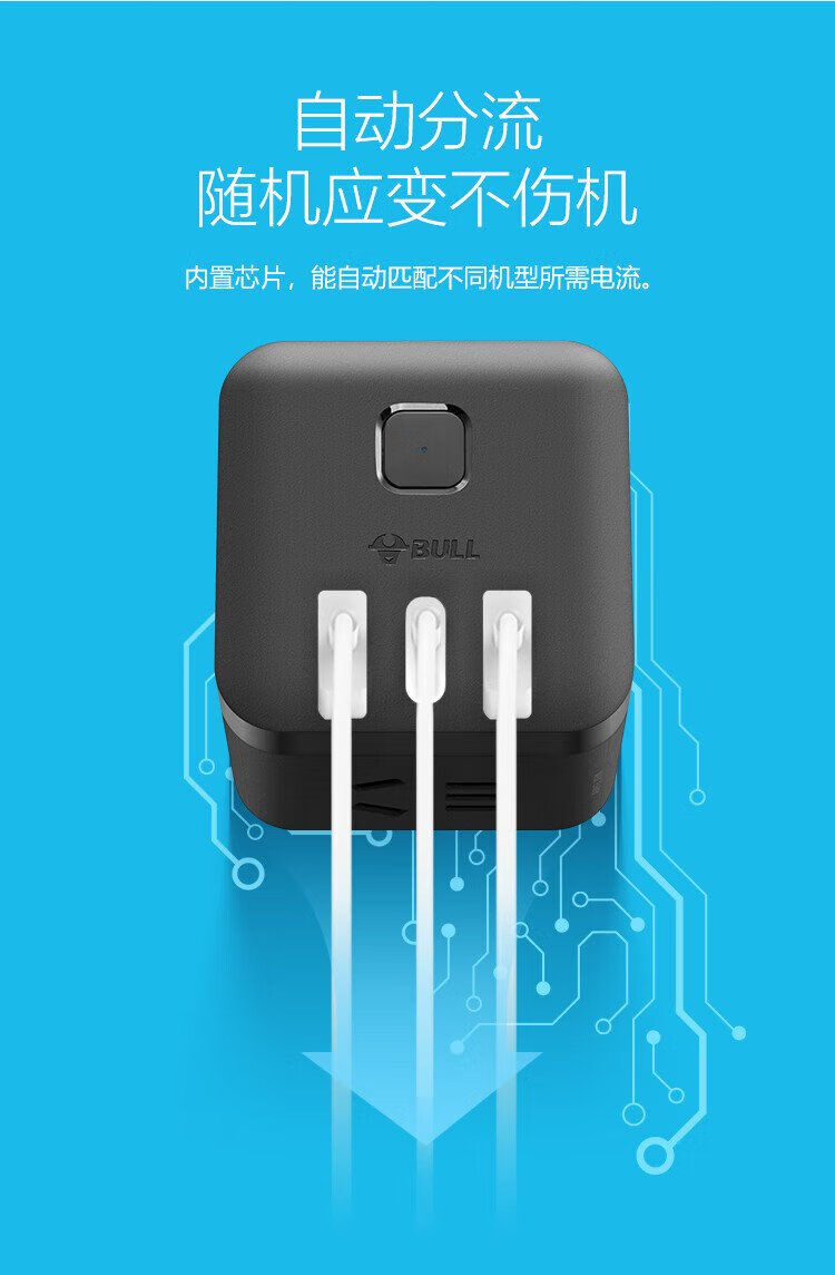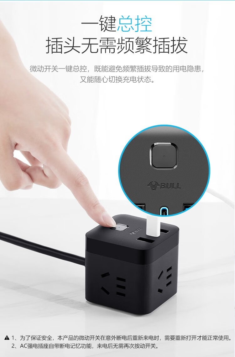 BULL (BULL) 30WPD Apple Quick Charging Rubik's Cube Socket / Plug Board / Plug Strip / Dormitory Household Wiring Board 1C2A+3 Jacks Full Length 1.5 Meters GNV-UU2303H Master Control Switch