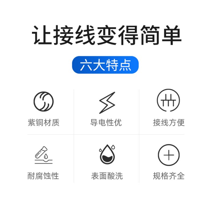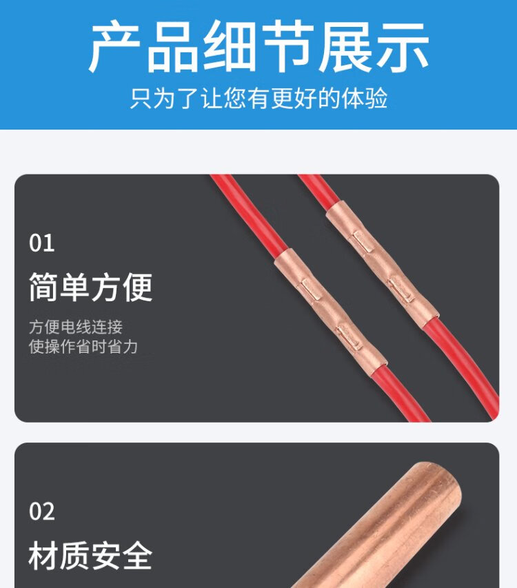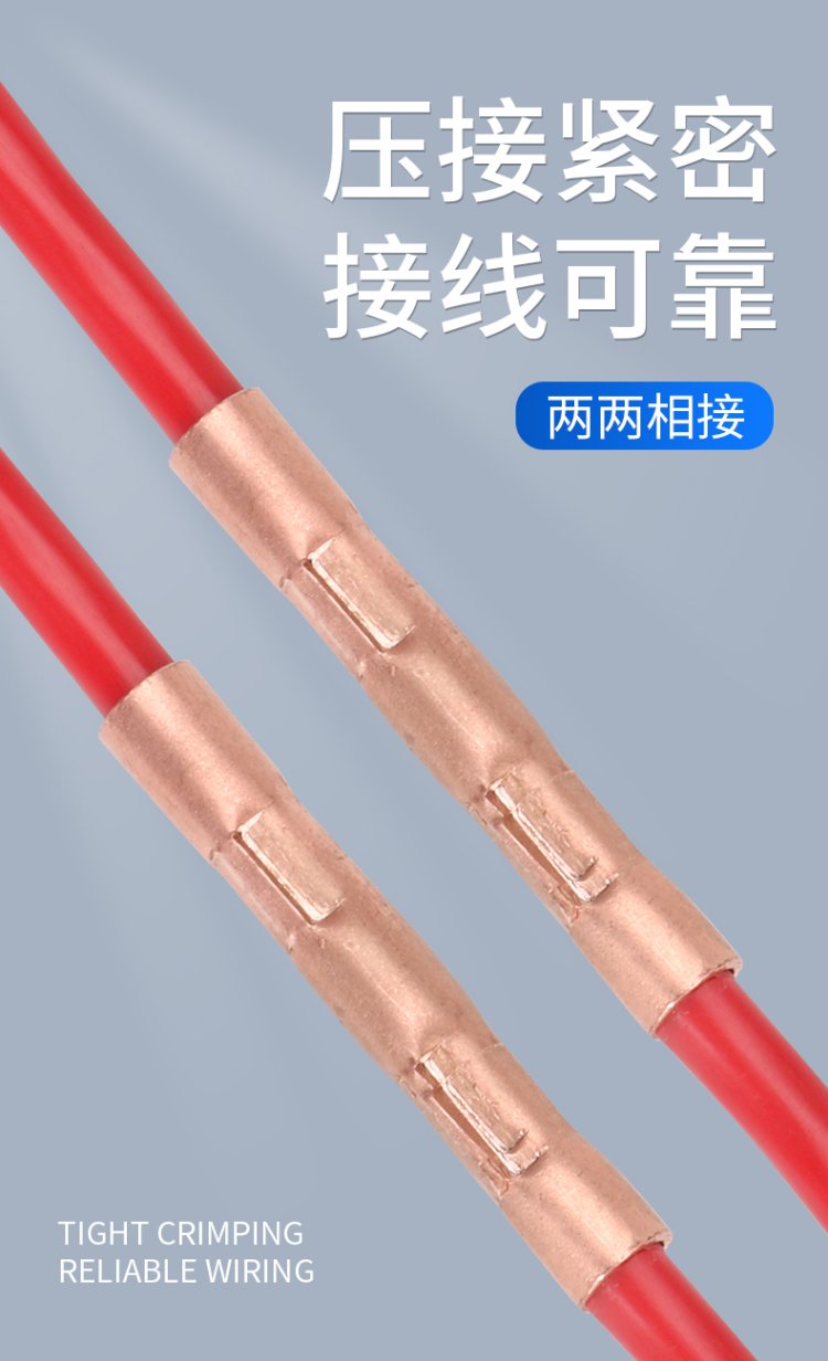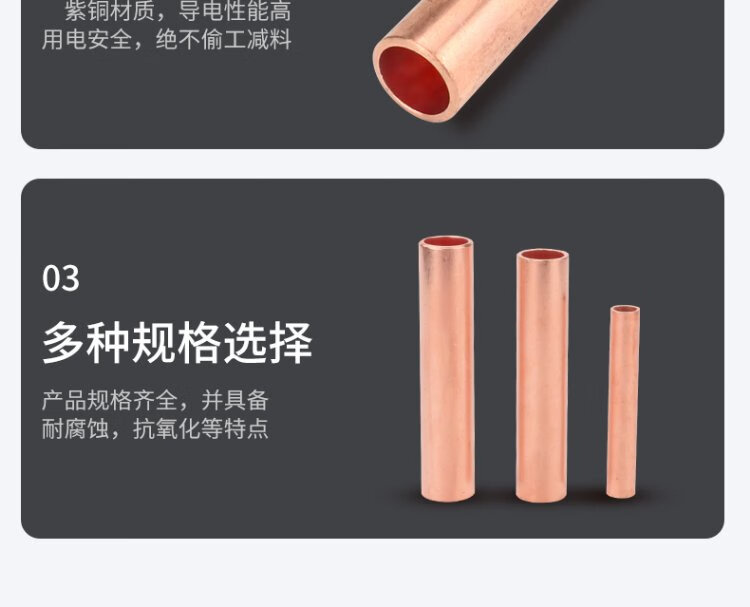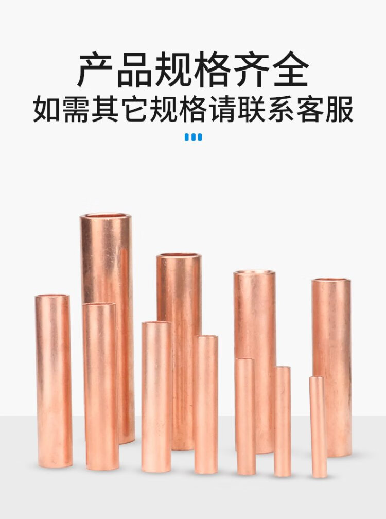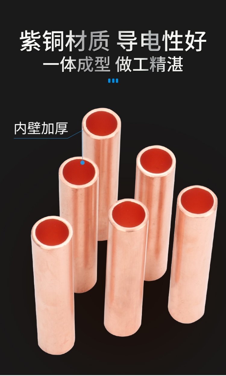 安达通 GT铜接线管 紫铜电工电线中间对接器连接管铜管鼻子冷压接线端子 250只套装1送热缩管