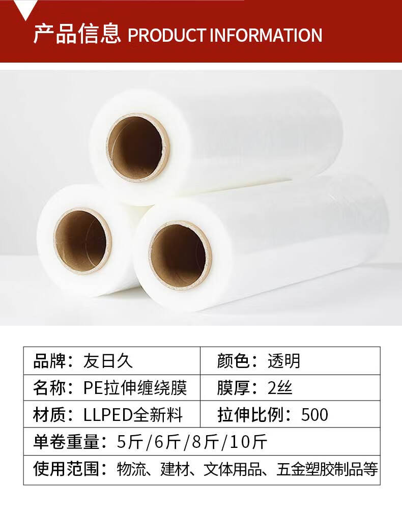 Yourijiu stretch film wide 50cm long 600M film net weight 4.5kg single roll packaging film packing film plastic film wide 50cm industrial cling film large roll stretch film