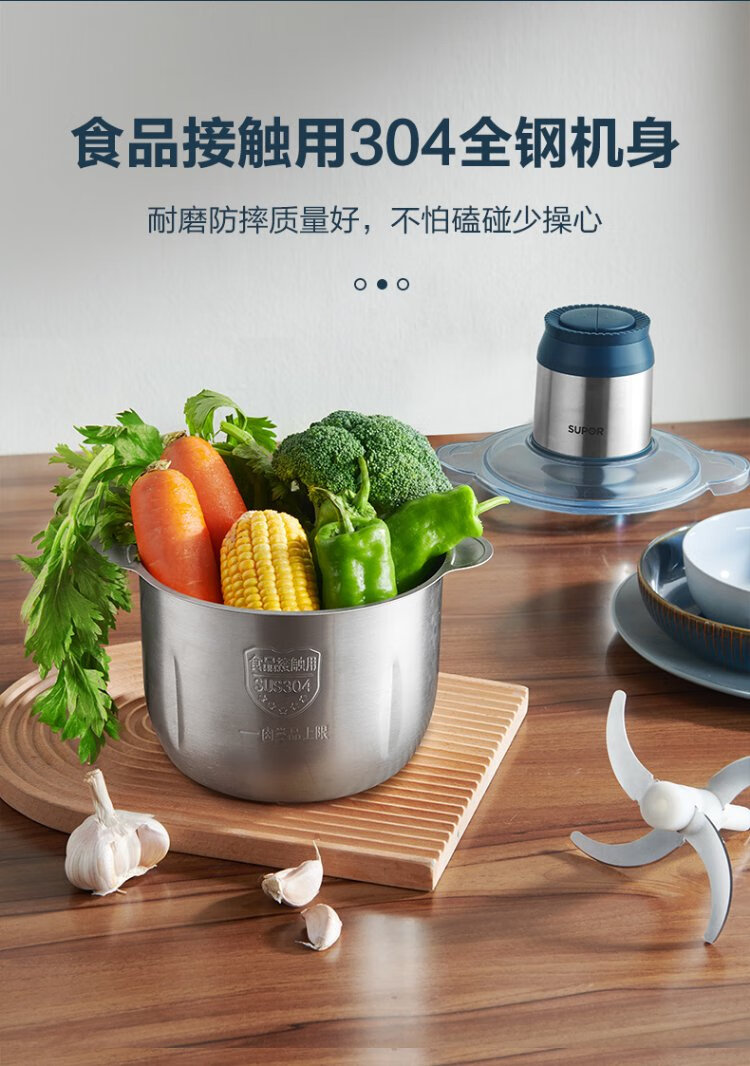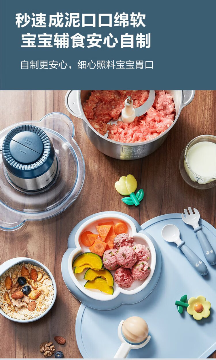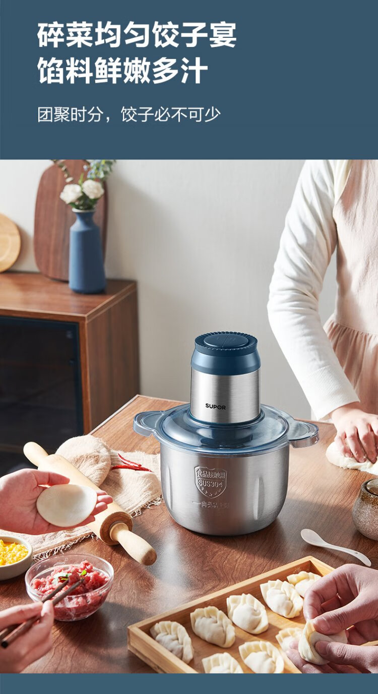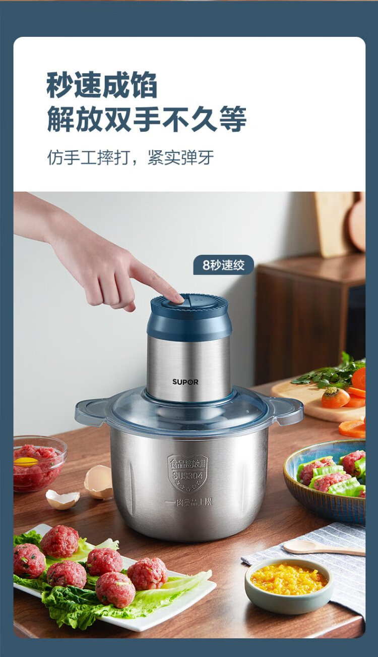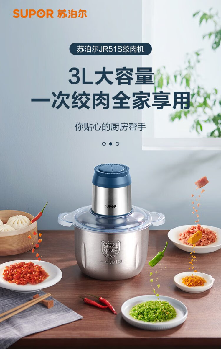 SUPOR Meat Grinder Household Multifunctional Blender Stainless Steel Food Processor 3L Large Capacity Second-speed Stuffing Baby Food Complementary Food Machine Stuffing Machine JR51S