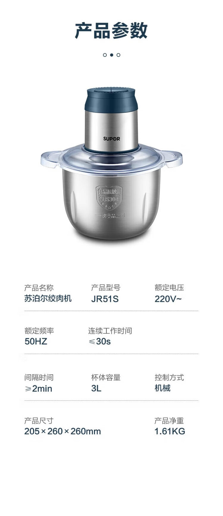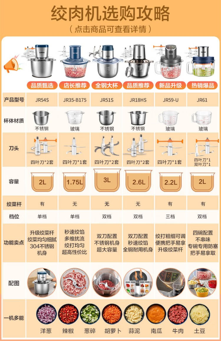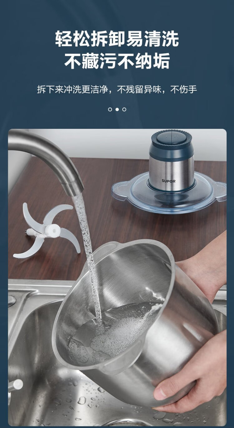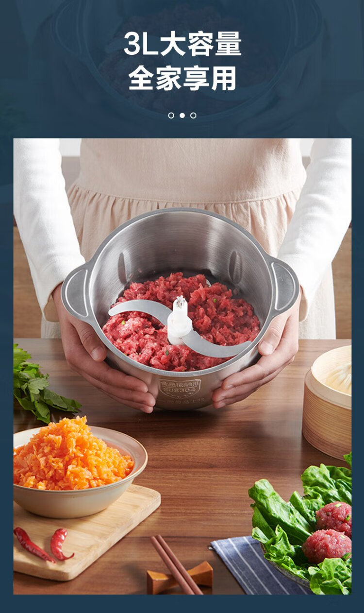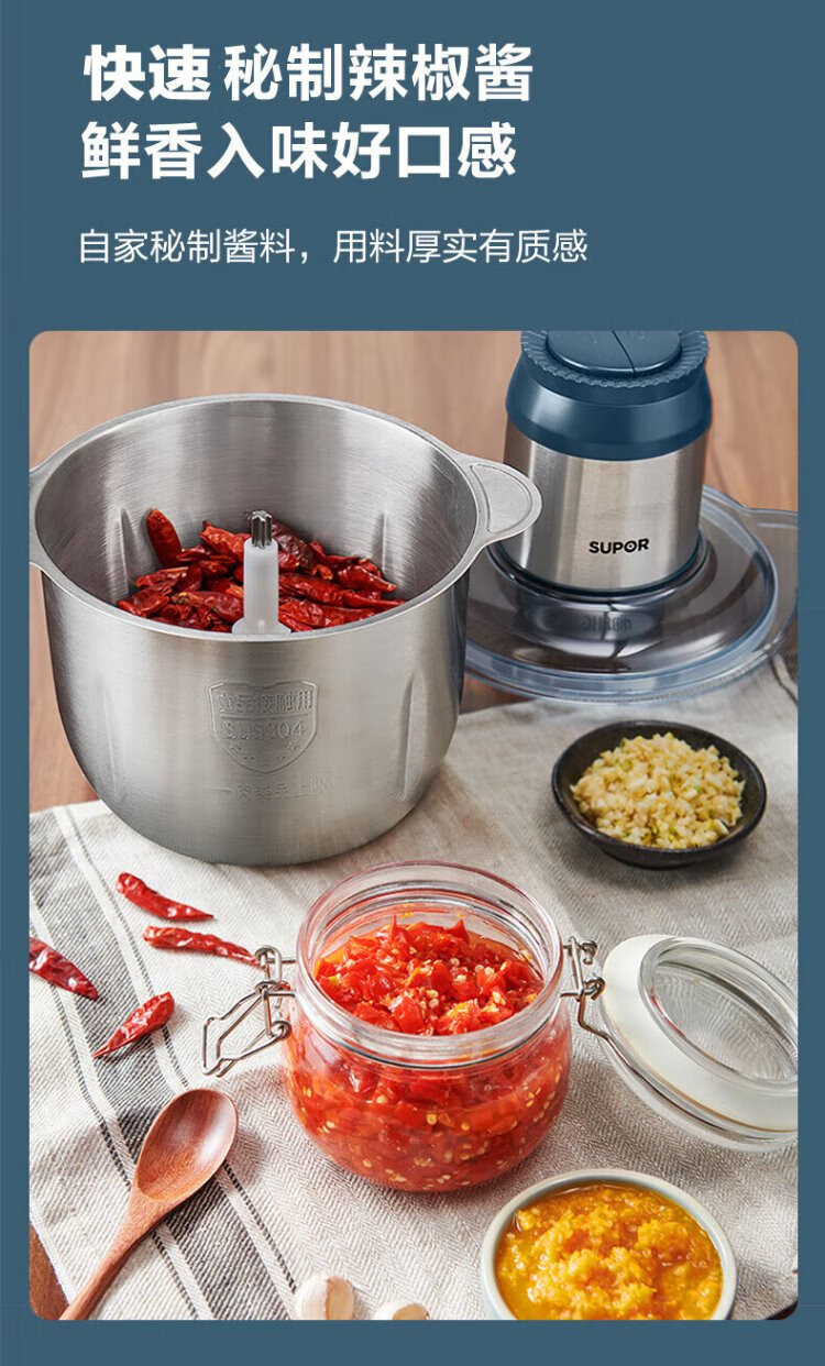 SUPOR Meat Grinder Household Multifunctional Blender Stainless Steel Food Processor 3L Large Capacity Second-speed Stuffing Baby Food Complementary Food Machine Stuffing Machine JR51S