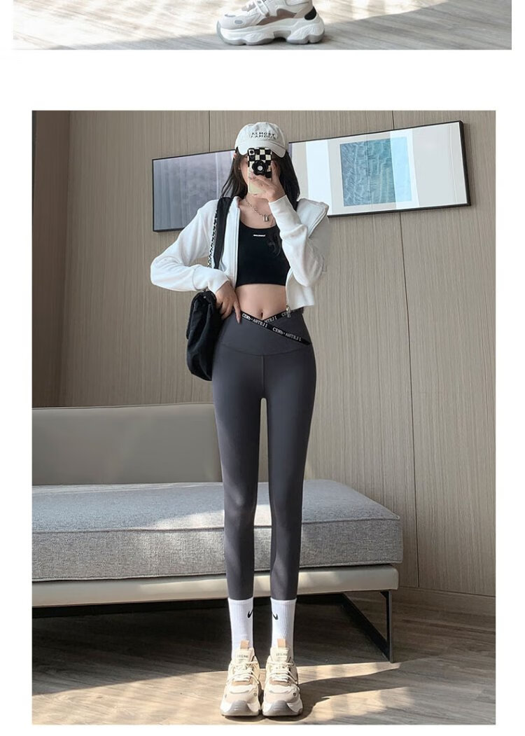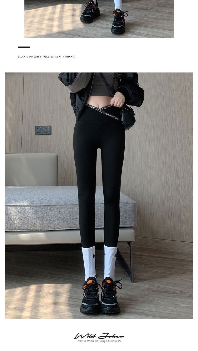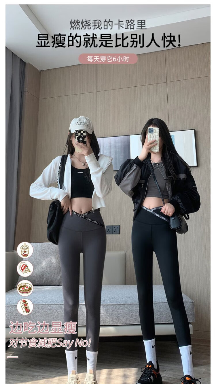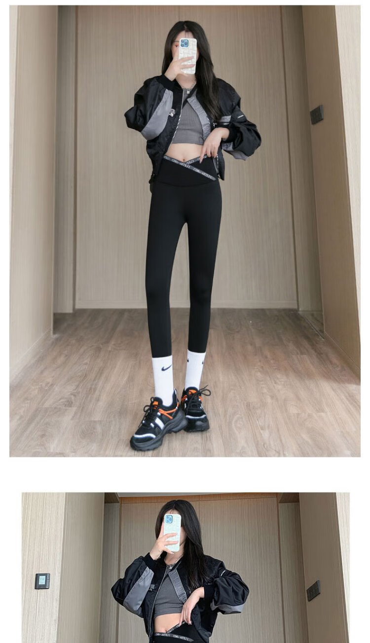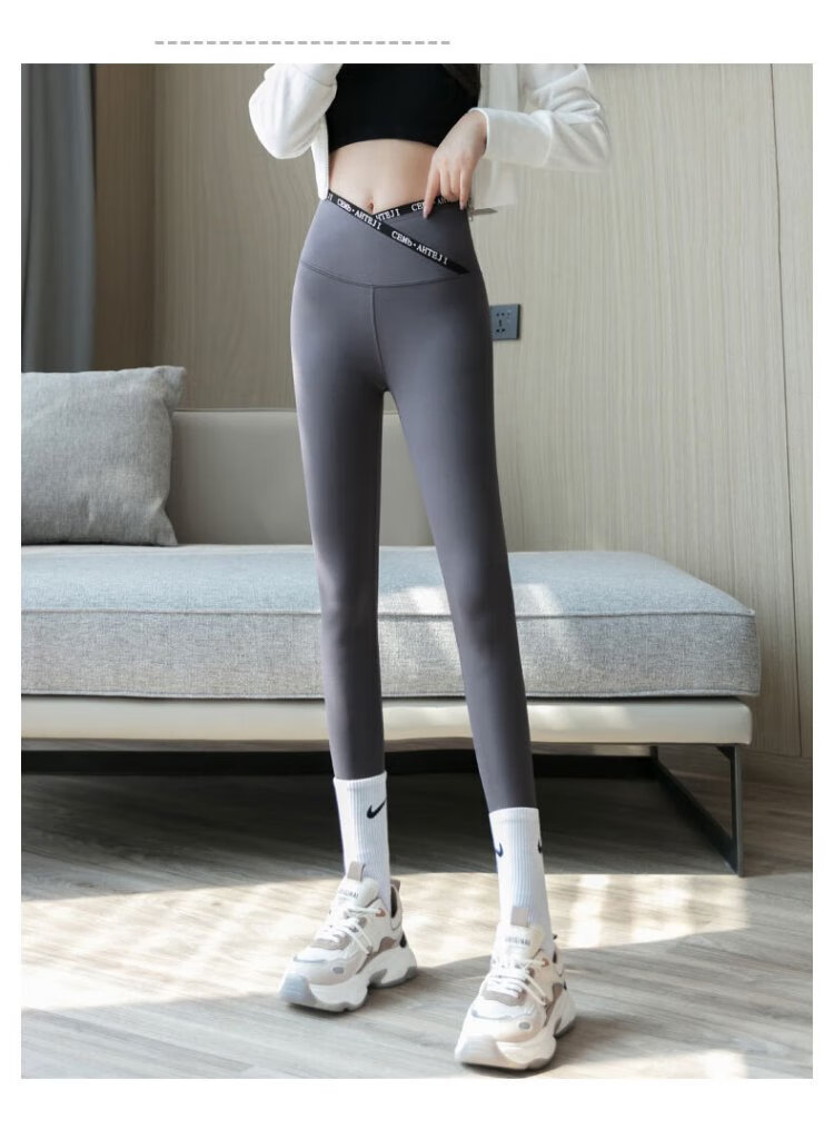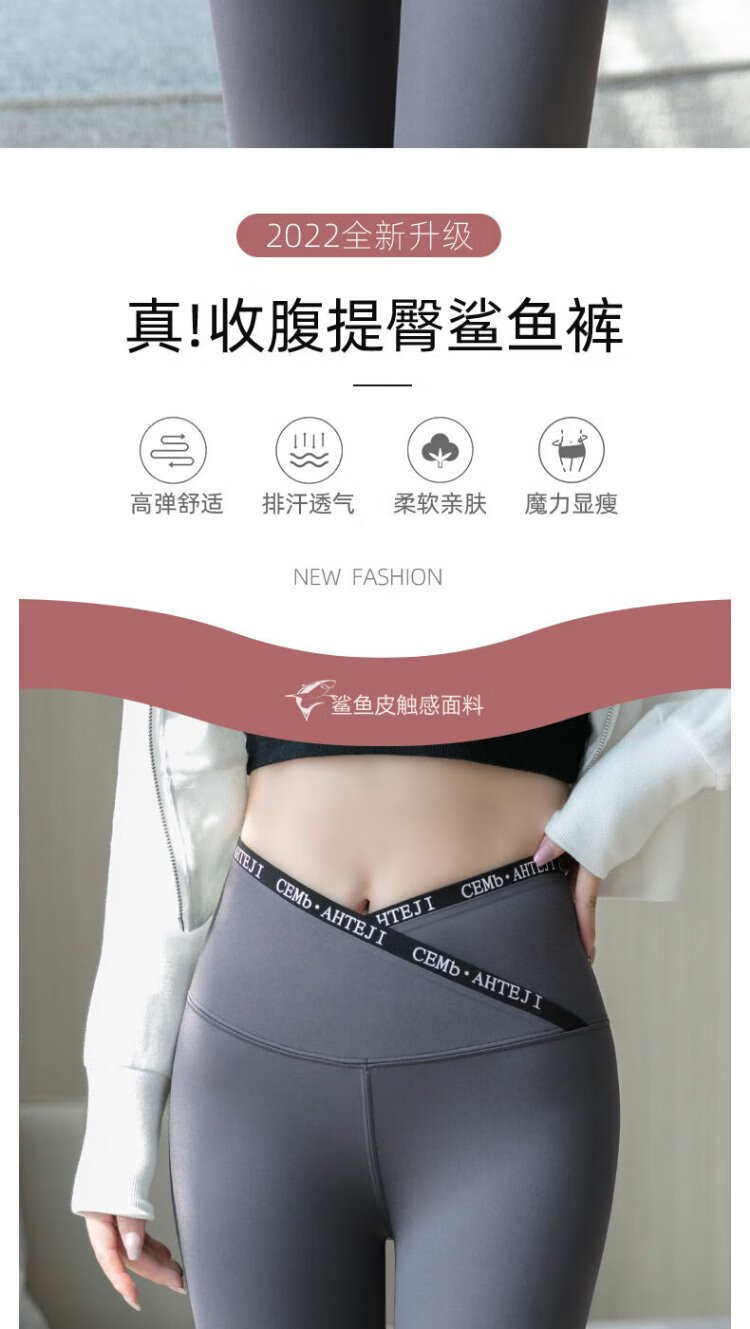 Langsha Letter Cross Waist Shark Skin Leggings Spring and Autumn High Waist Hip Lifting Pants for External Wear Thin Yoga Pants