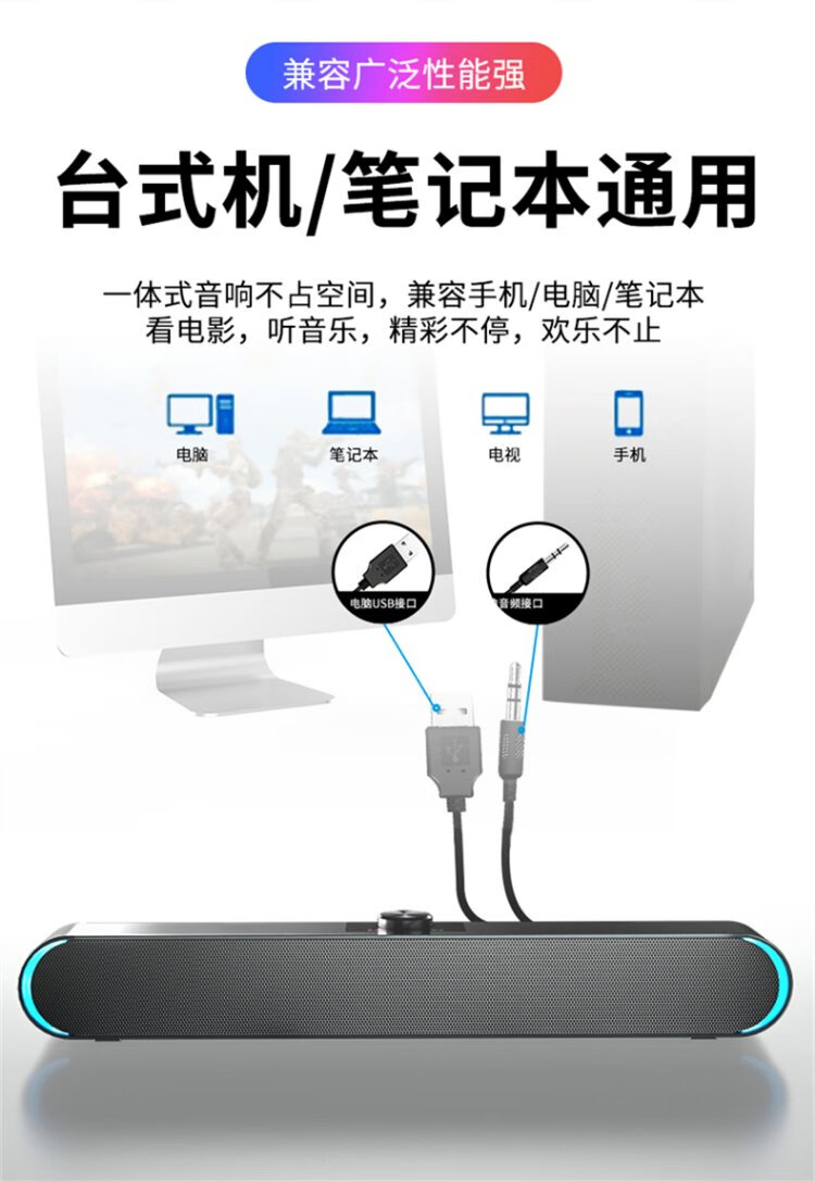 SADA computer audio speaker mini long subwoofer with microphone speaker USB wired suitable for laptops and mobile phones small steel cannon large volume V-183