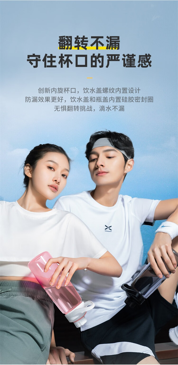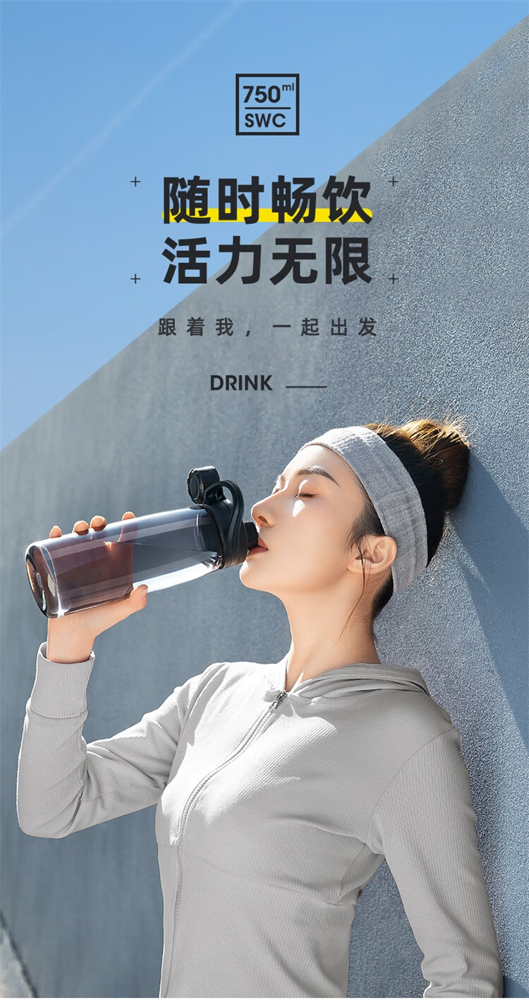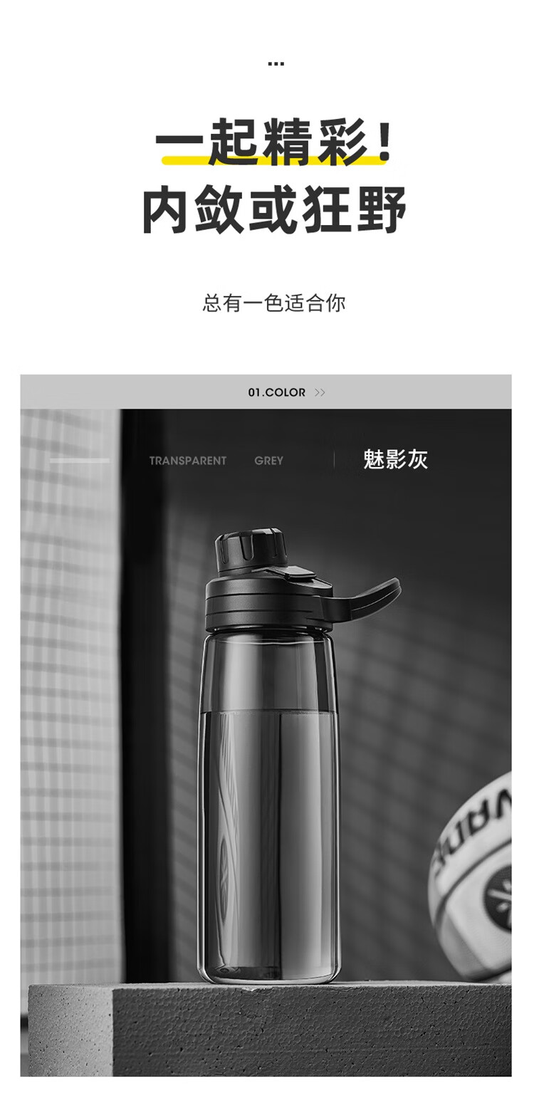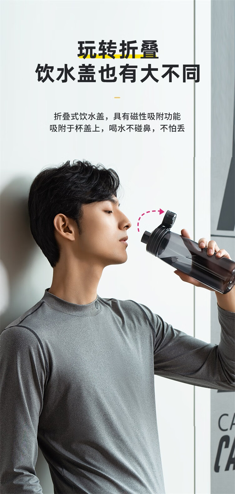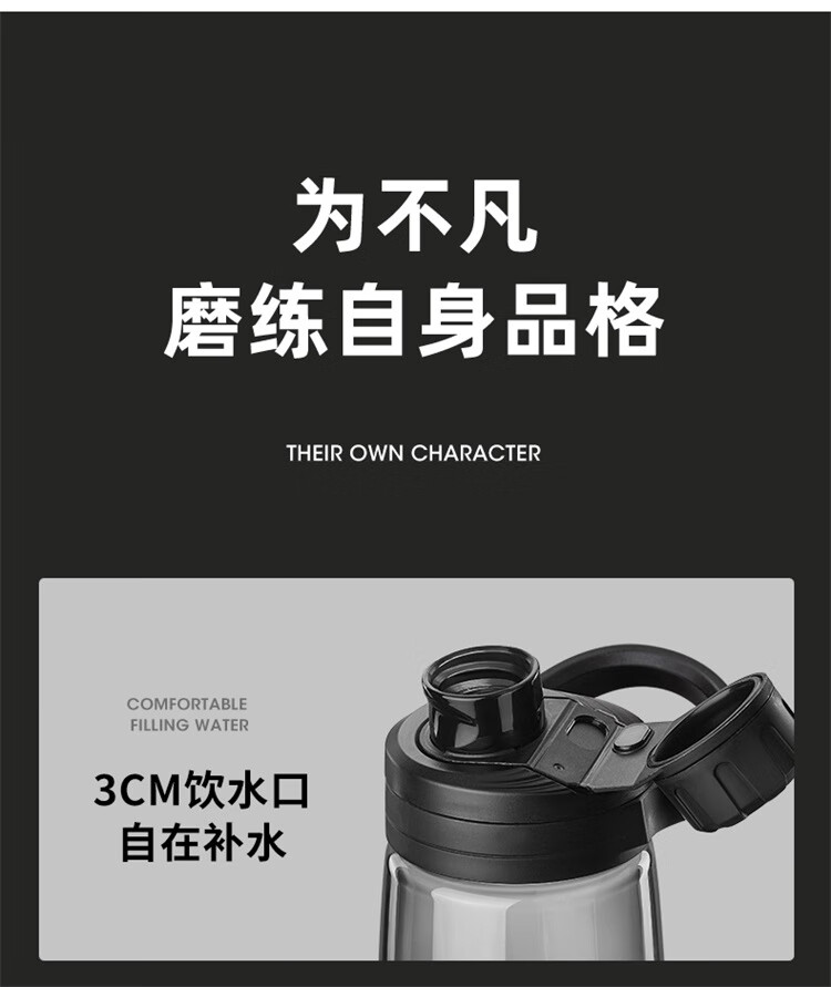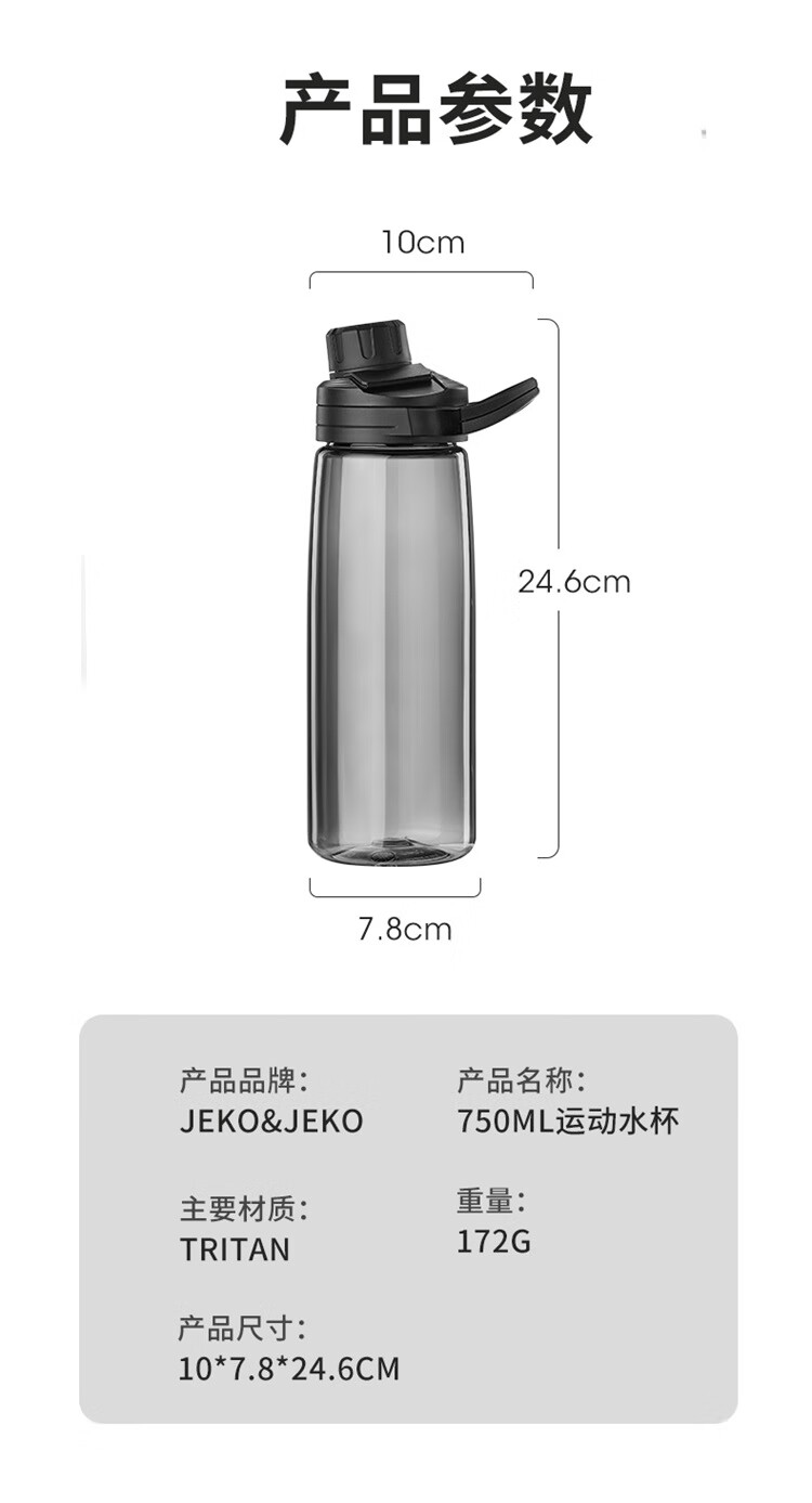 JEKO&JEKO sports water cup men's large-capacity sports water bottle summer cycling cup men's fitness plastic water cup phantom gray