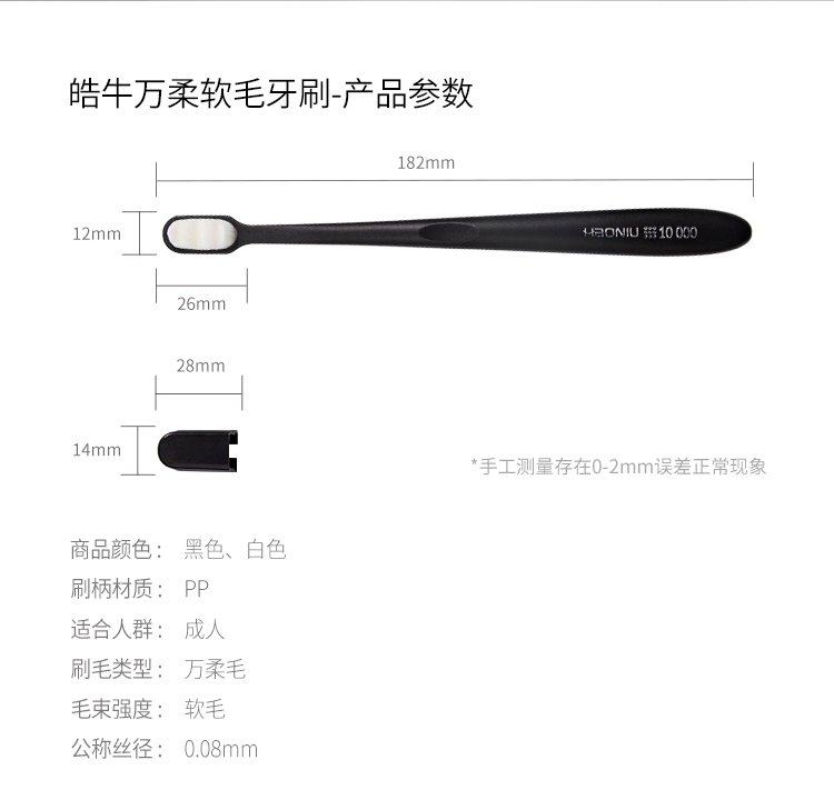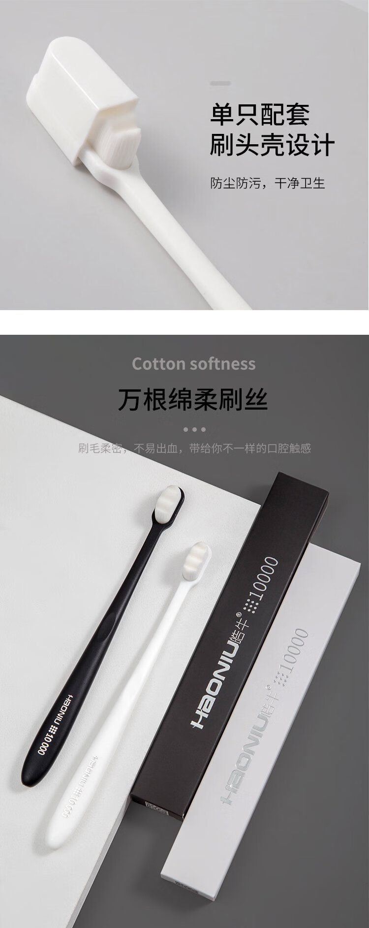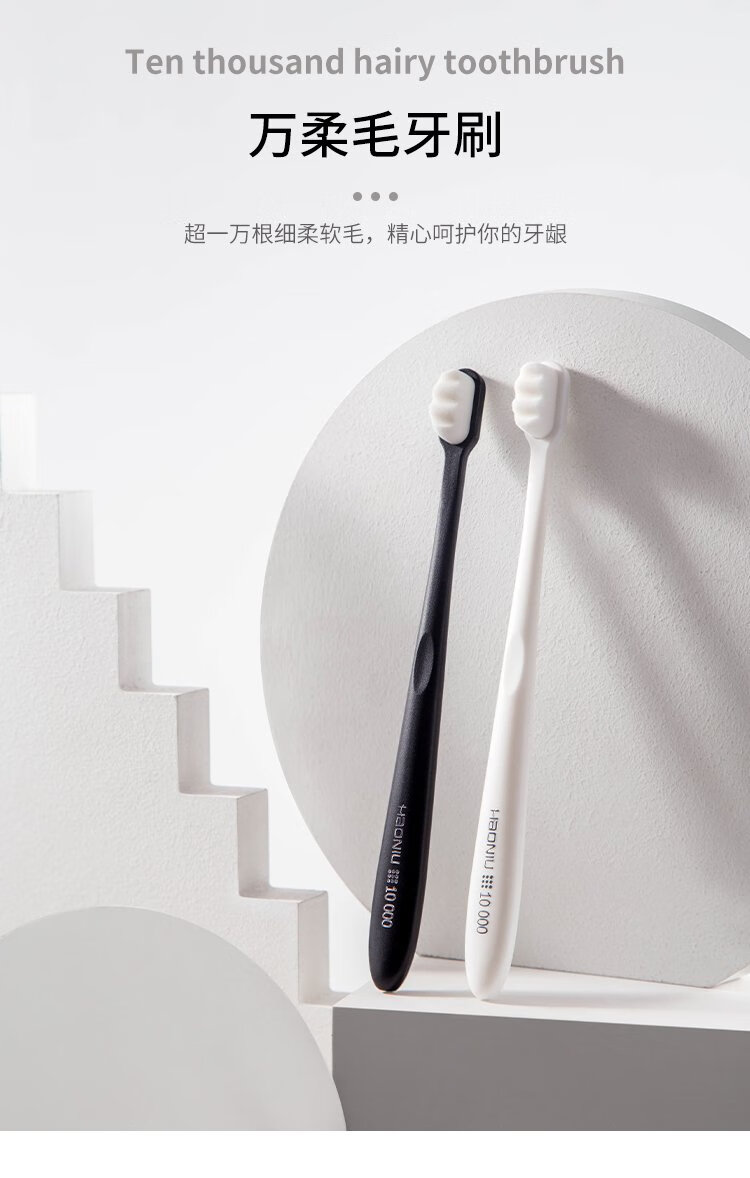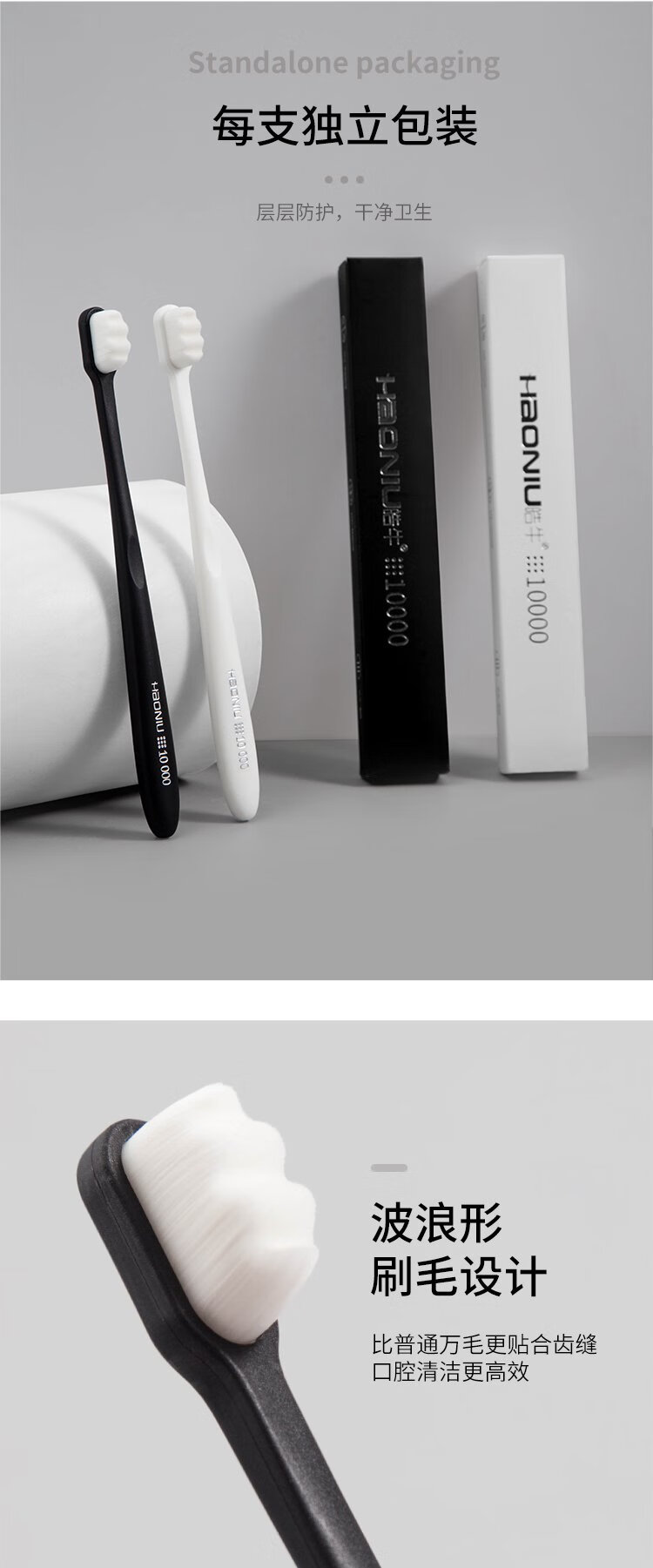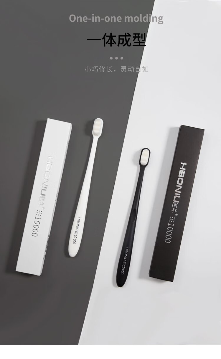 Haoniu Wanrou black and white adult soft bristle toothbrushes 2 pieces