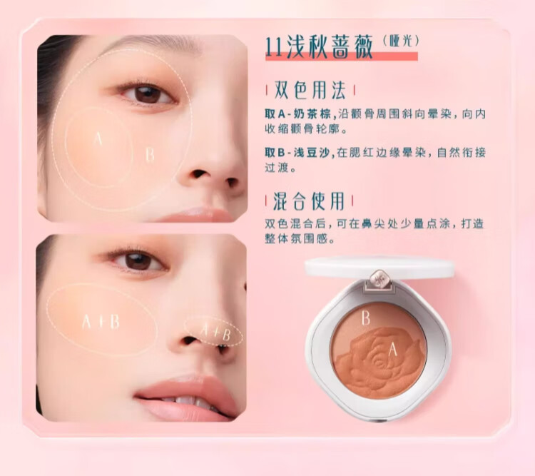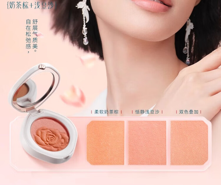 Huaxizi Rouge Blush Brightening Light Autumn Rose (Matte Milk Tea Brown + Light Bean Paste) 4g