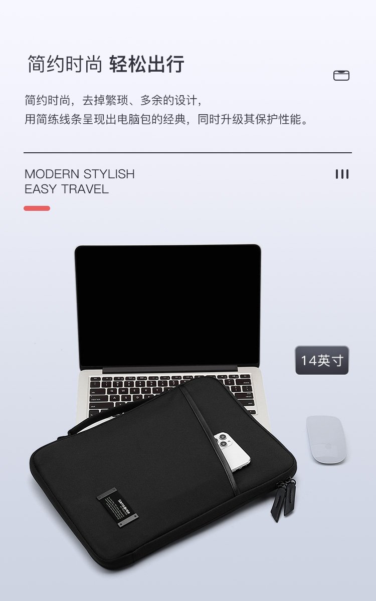 Samsonite computer bag liner bag 14.1-inch handbag thin business notebook macbook air airbag protective cover