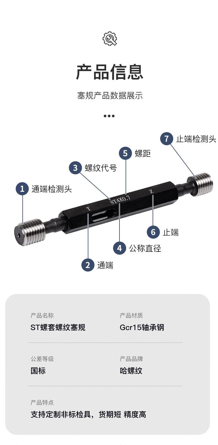 Kazakhstan thread ST steel wire thread insert thread plug gauge ST thread insert sheath pass-and-stop gauge Steel sleeve plug gauge Internal thread gauge height accuracy pass-and-stop gauge ST screw sleeve plug gauge ST6*1