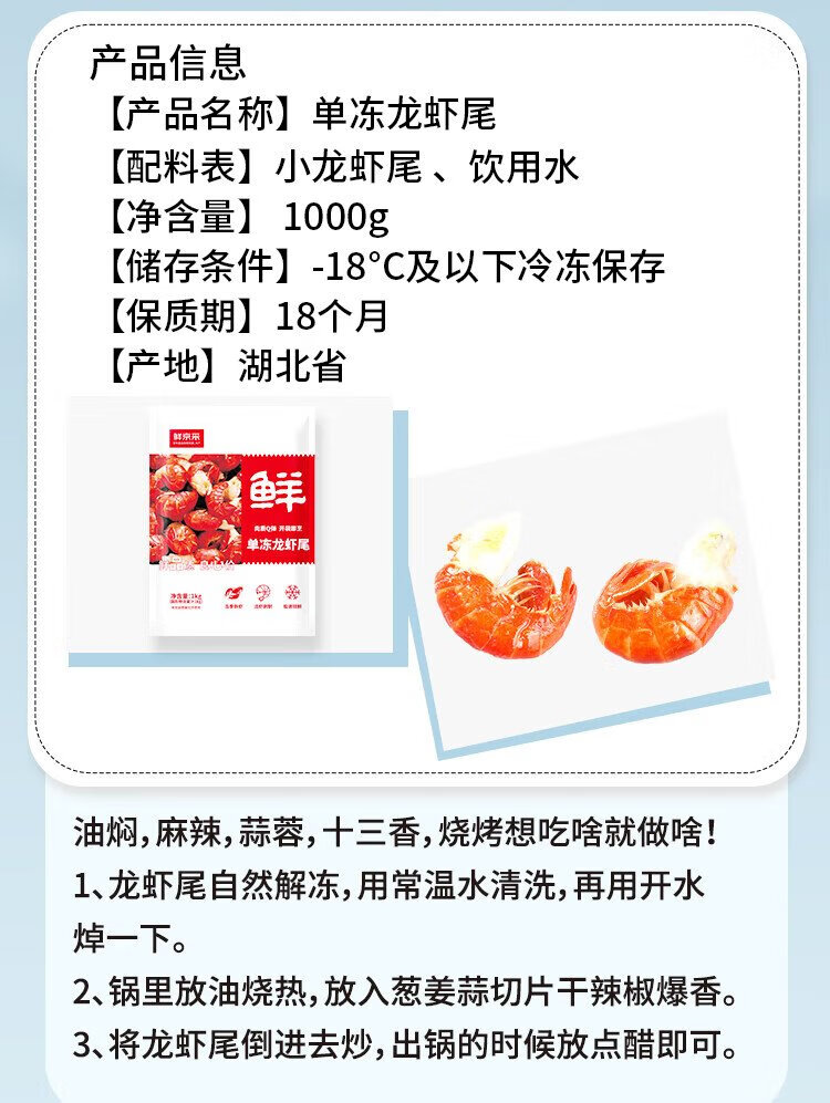 Fresh Jingcai ice-free crayfish tail (first grade) 2Jin Jin equals 0.5kg (120-130 pieces/Jin Jin equals 0.5kg) No added fresh food