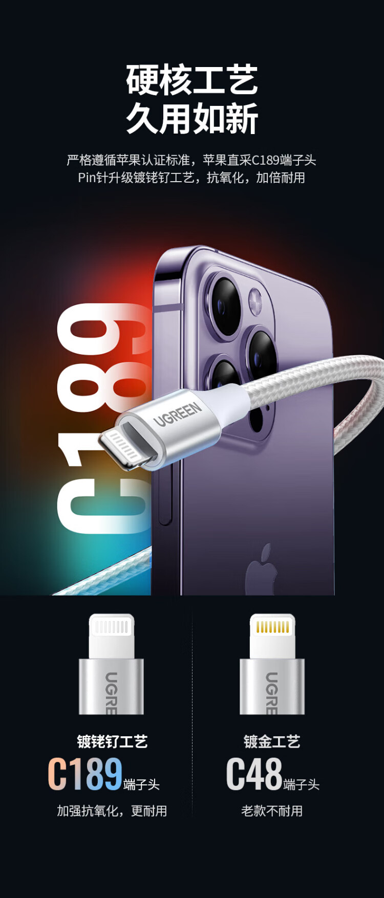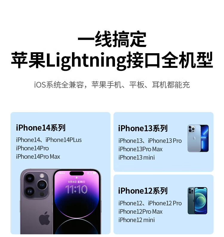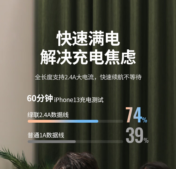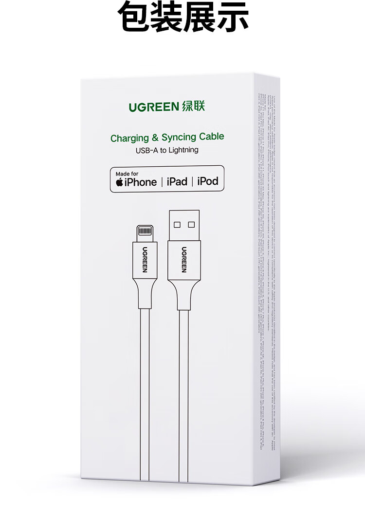 Greenlink MFi certification does not pop up, suitable for Apple charging cable fast charging data cable USB to Lightning iPhone14/13/12 mobile phone ipad tablet 1m