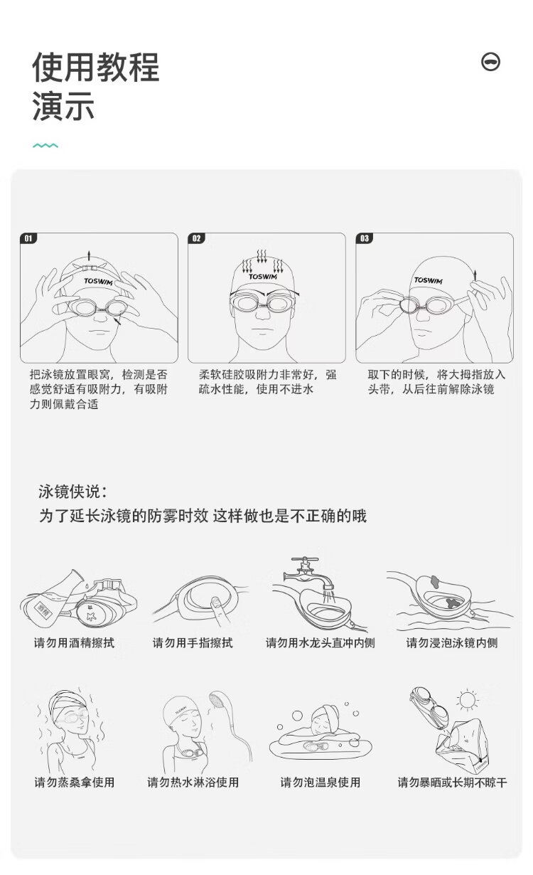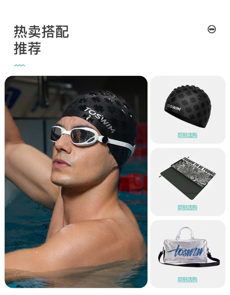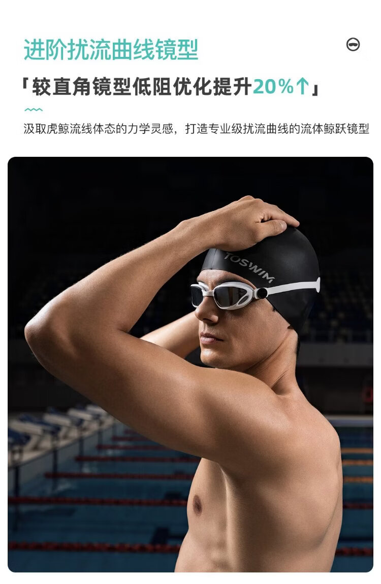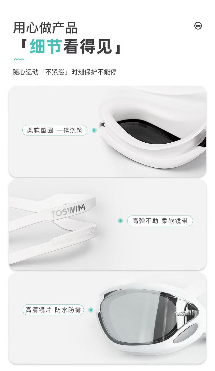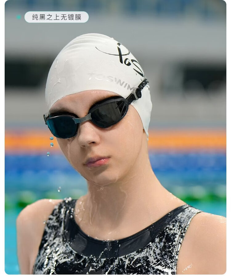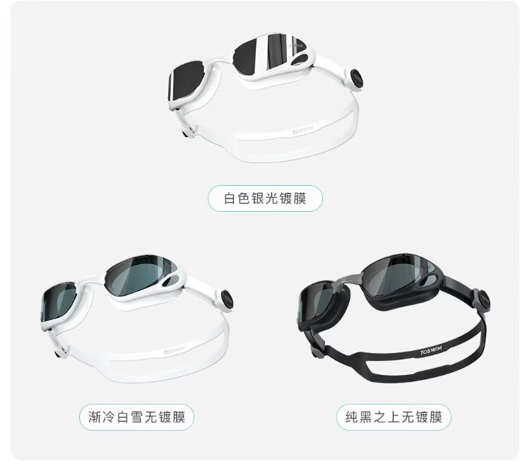TOSWIM Tuosheng swimming goggles HD anti-fog waterproof large frame coated glasses for men and women swimming goggles white silver