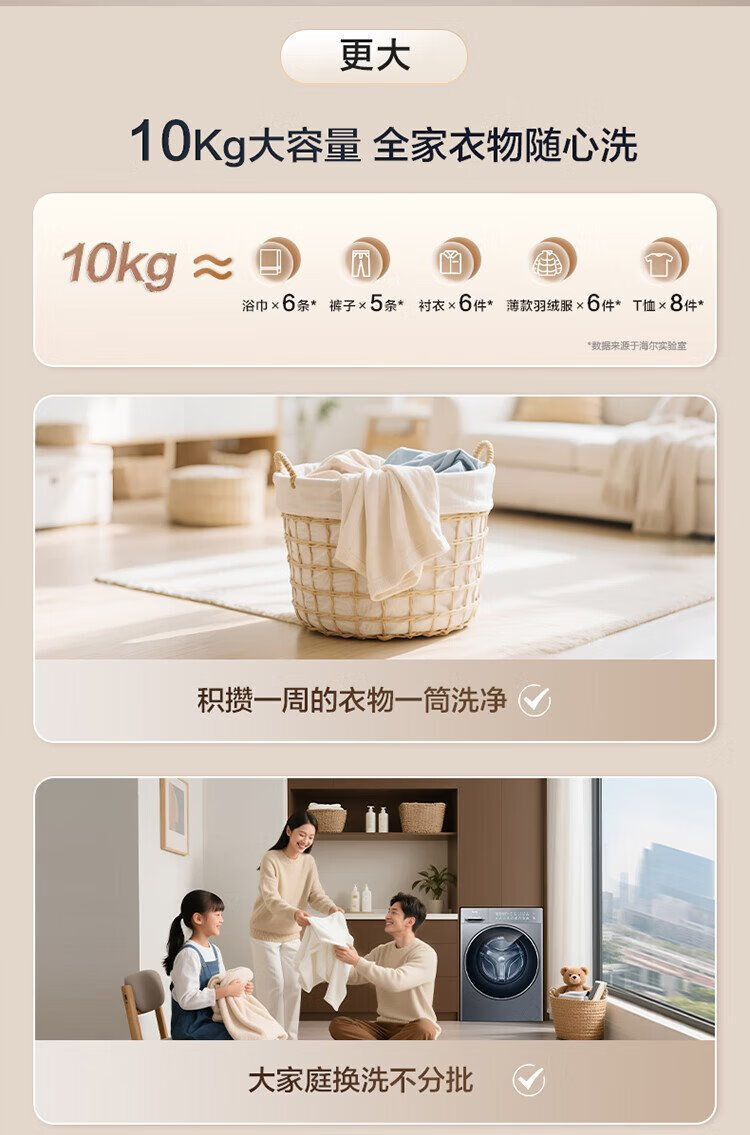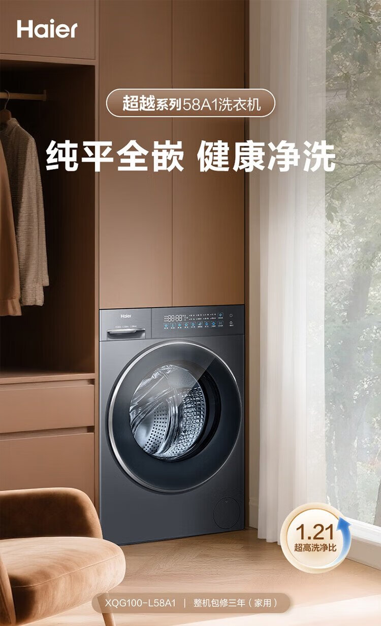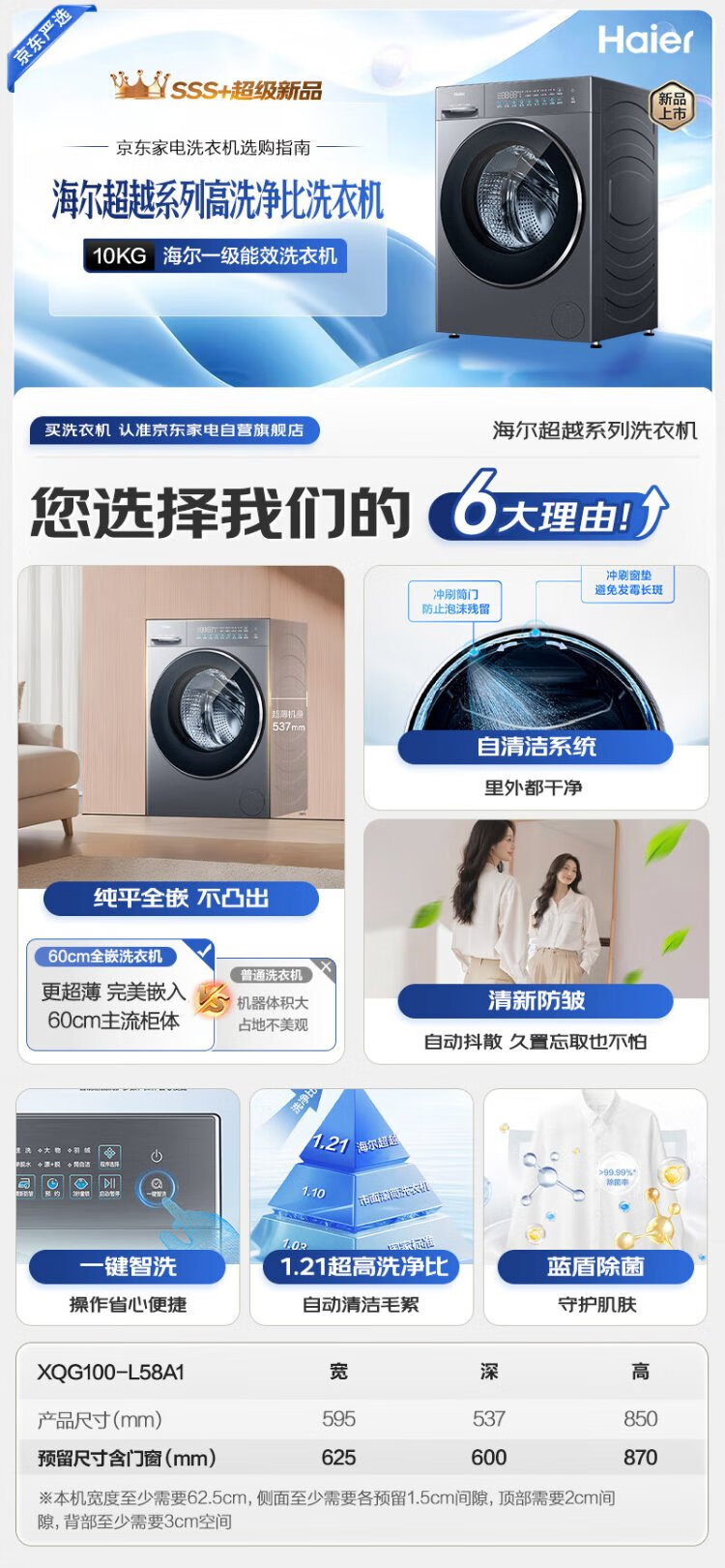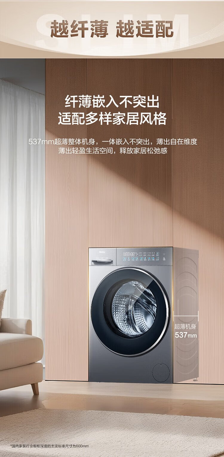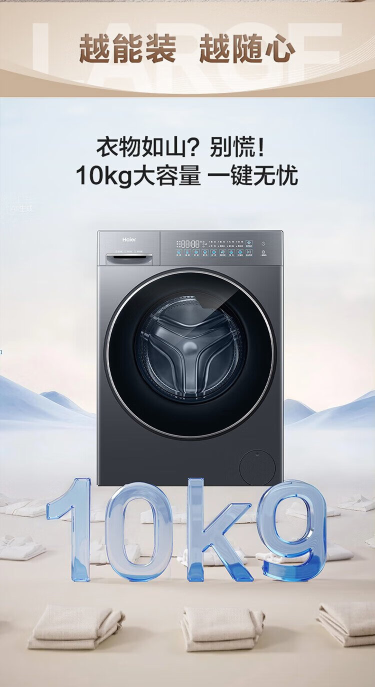 Haier (Haier) drum washing machine fully automatic 10kg 25 years new product丨537 ultra-thin flat-mounted + blue shield sterilization + anti-rust + 525 large drum diameter same model XQG100-L58A1 in the mall