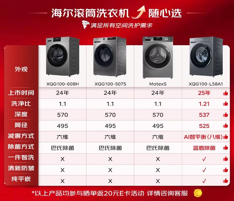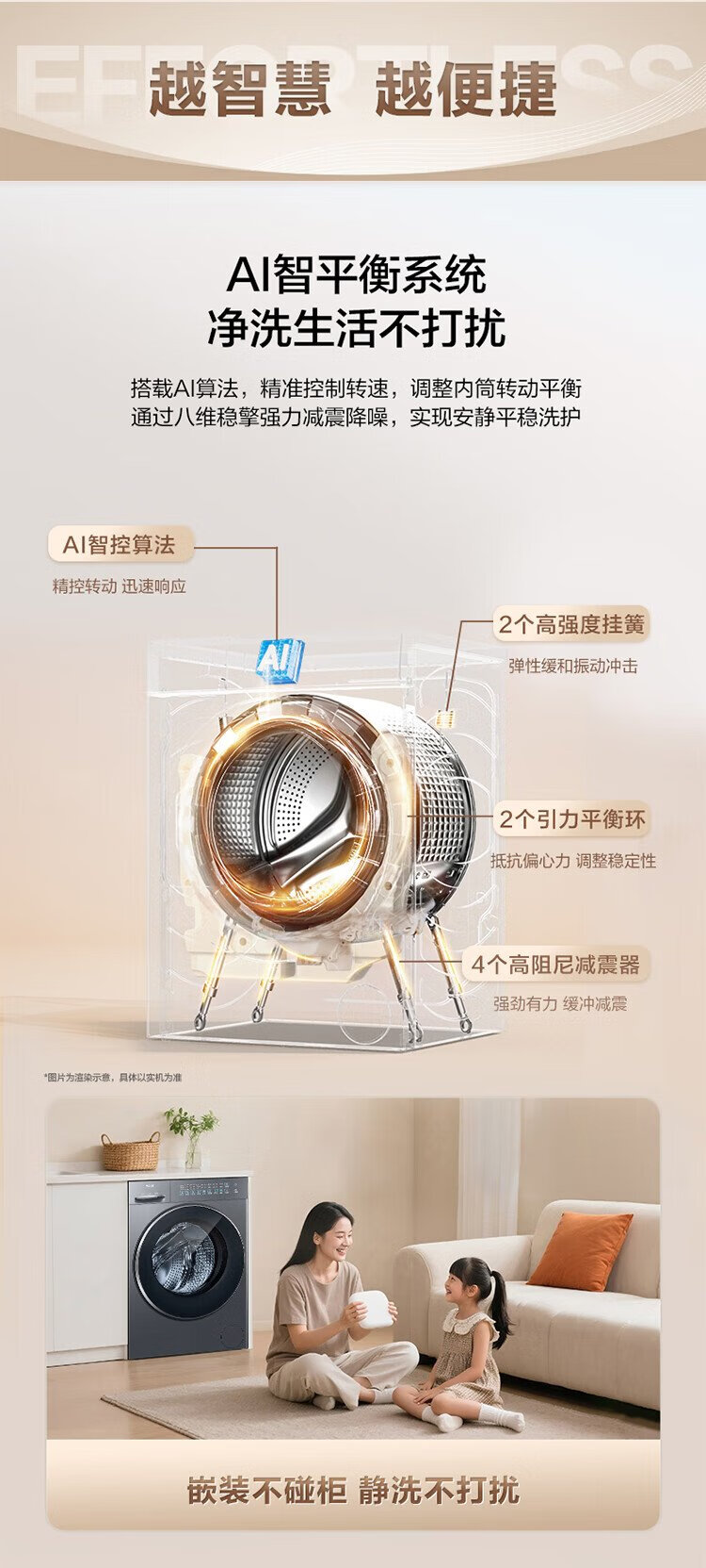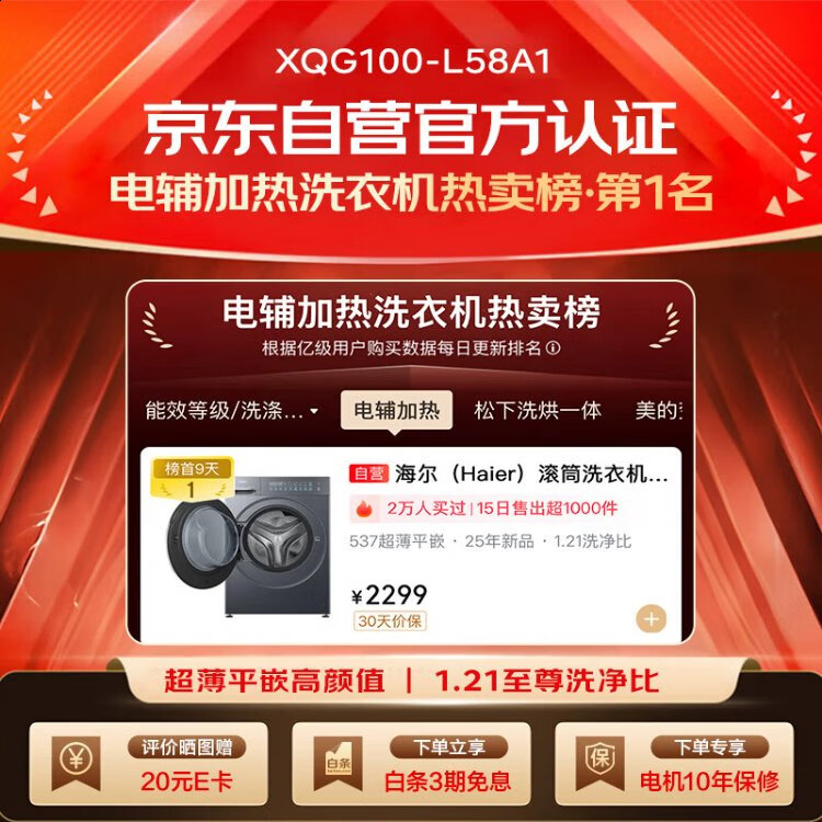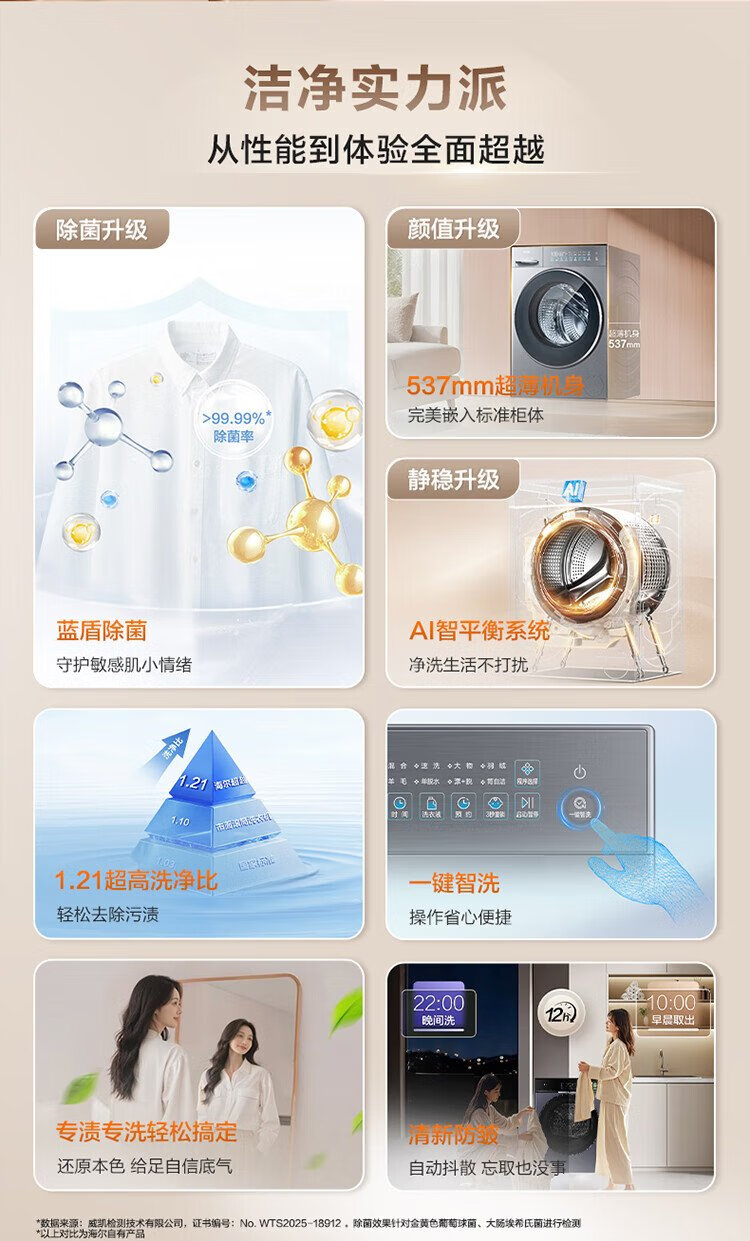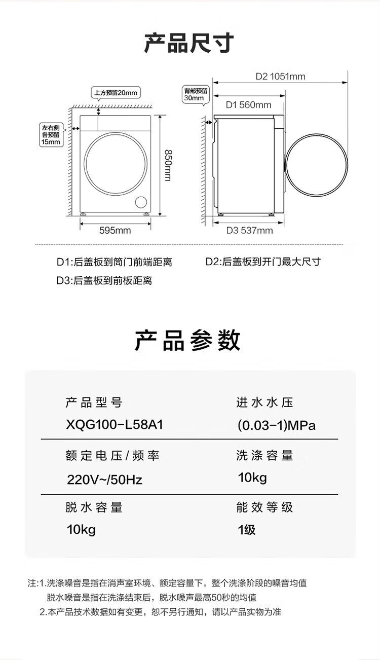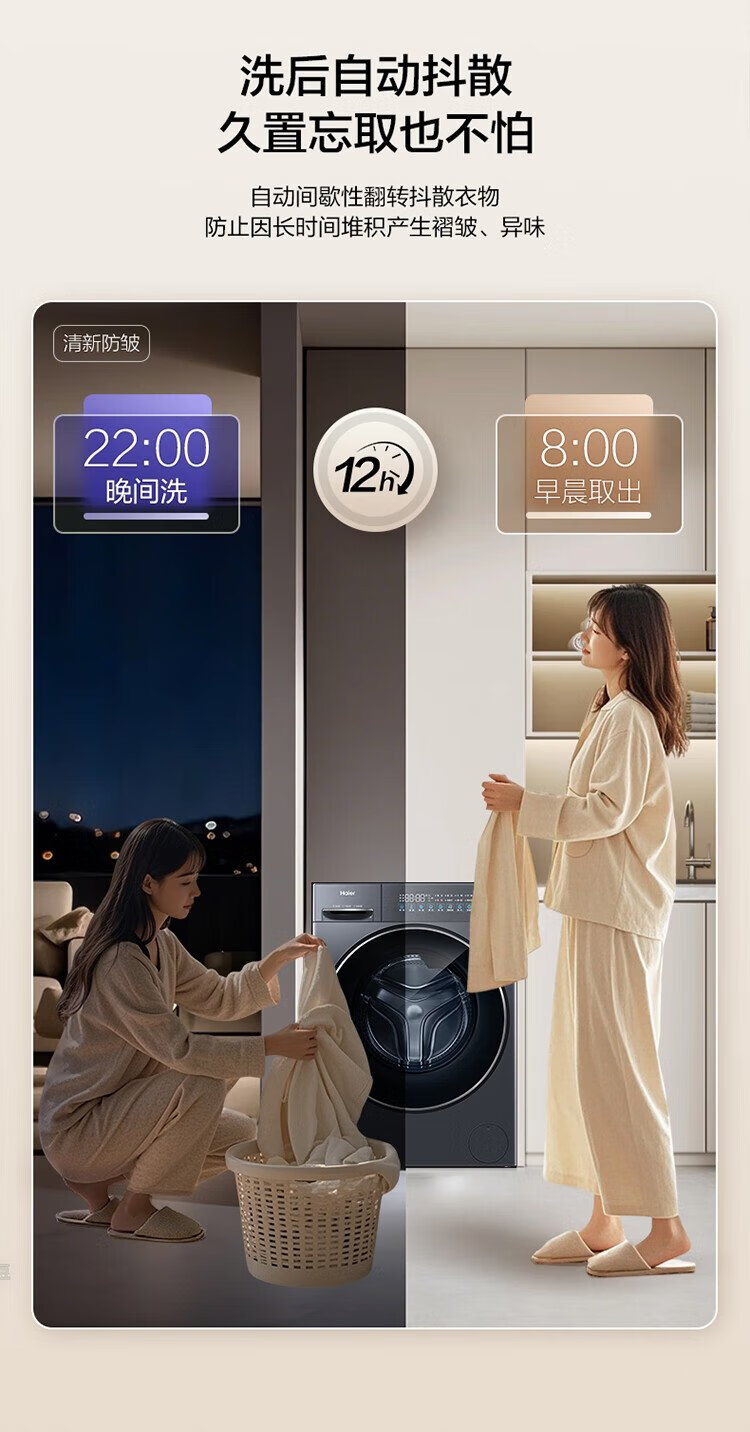 Haier (Haier) drum washing machine fully automatic 10kg 25 years new product丨537 ultra-thin flat-mounted + blue shield sterilization + anti-rust + 525 large drum diameter same model XQG100-L58A1 in the mall