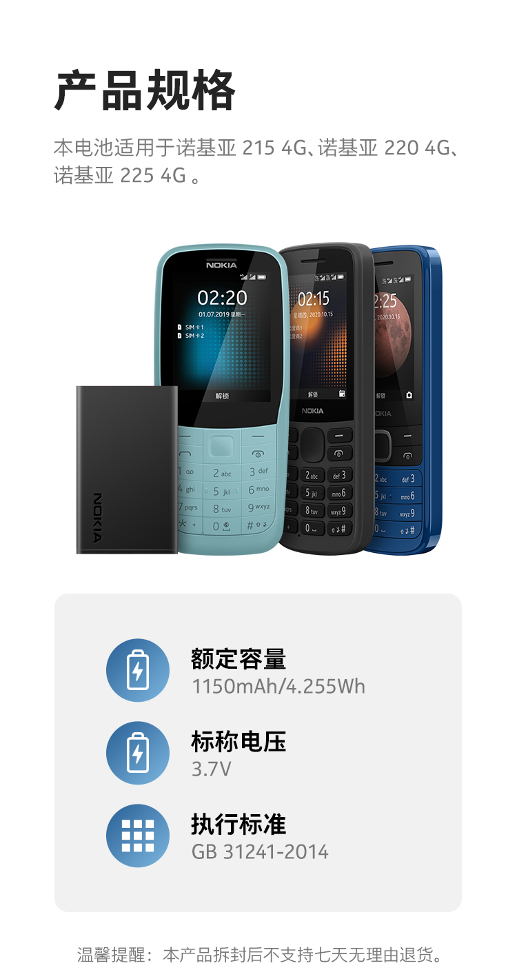 Nokia BL-4WL original mobile phone battery accessories suitable for Nokia 220 215 225 230 3310 black original battery
