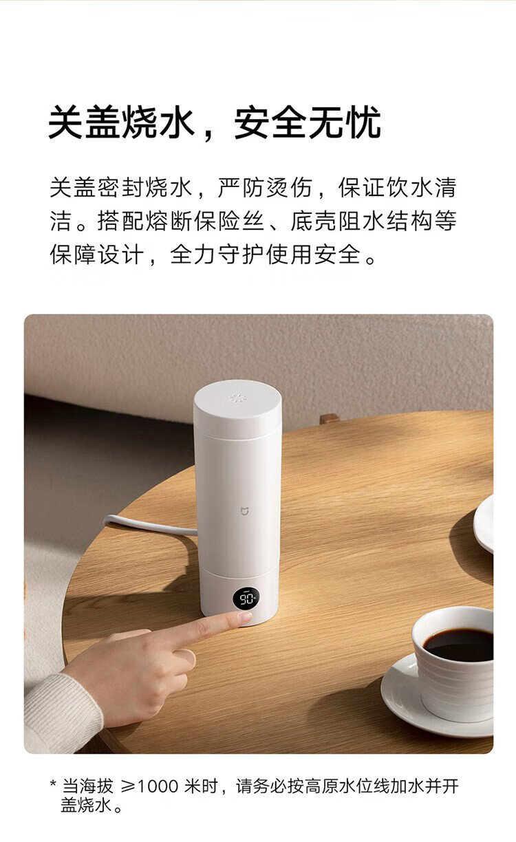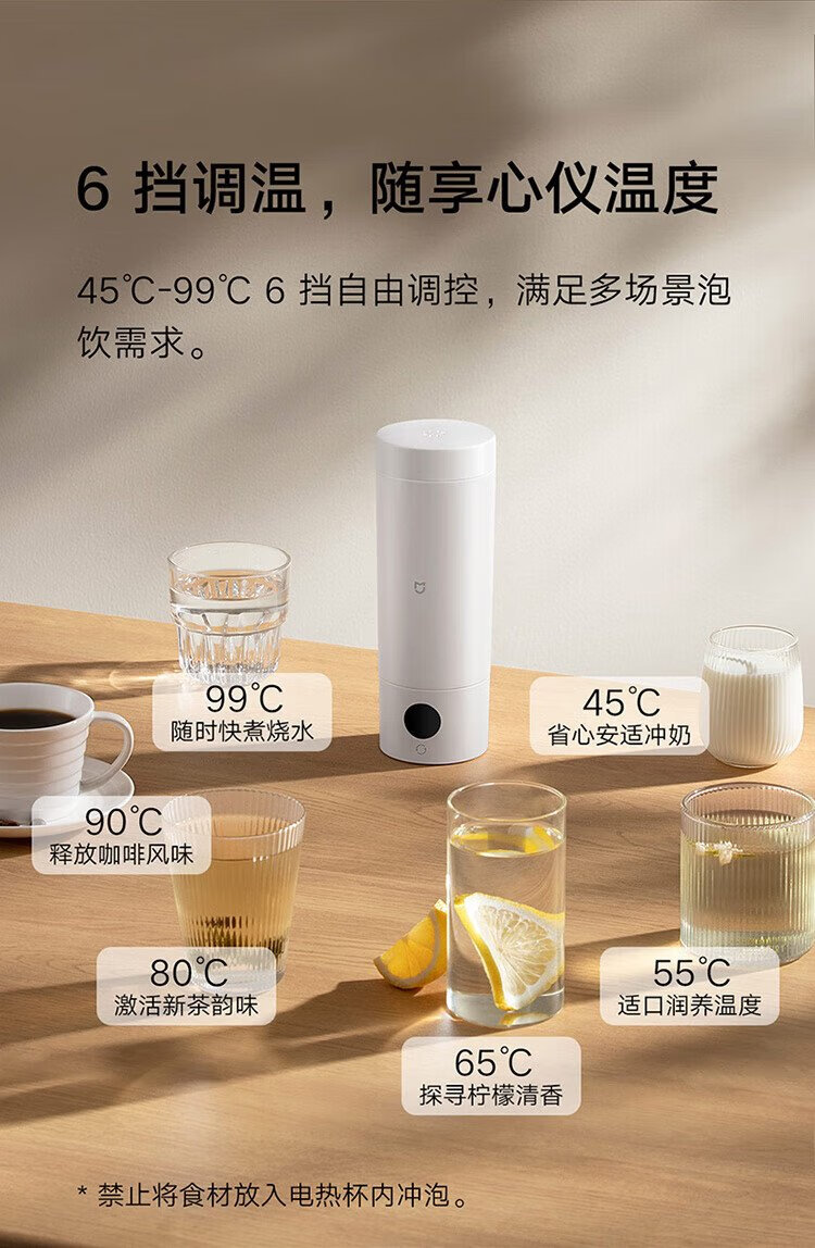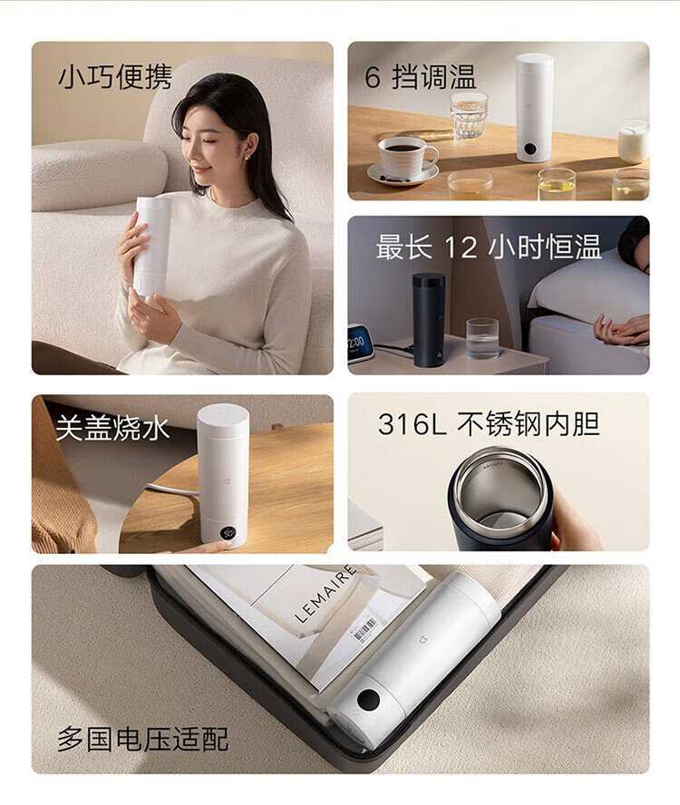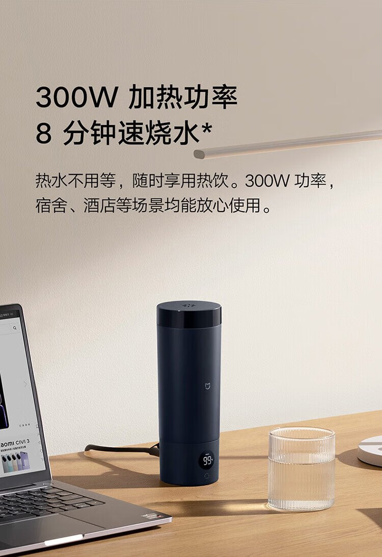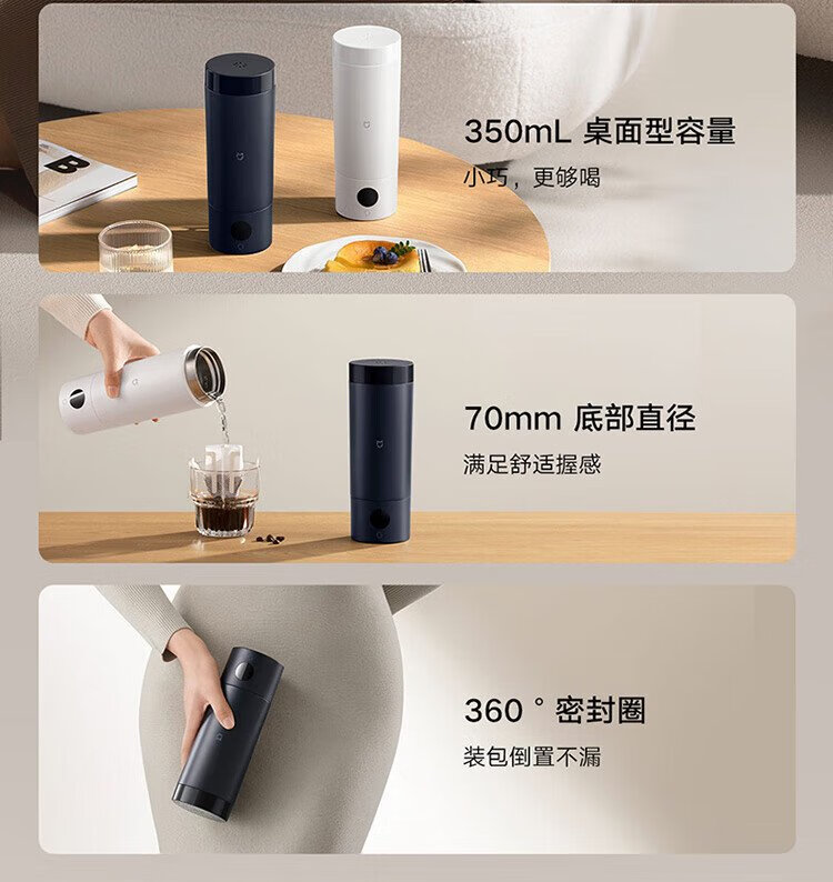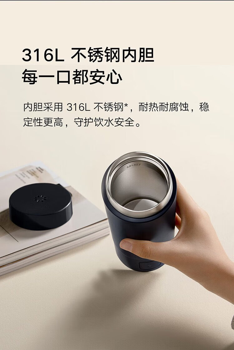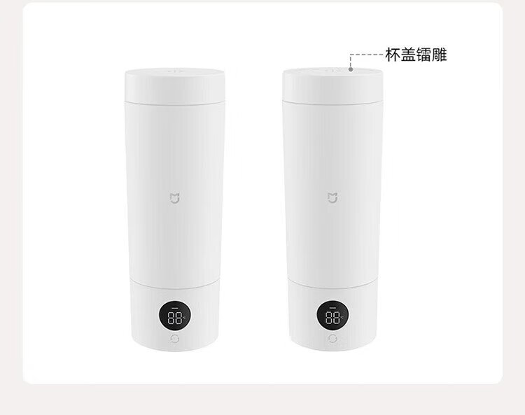 Mijia Xiaomi Portable Electric Heating Cup 2 Electric Hot Water Cup Heating Cup Hot Water Kettle Insulated Water Boiling Cup 350ml Mini Travel and Business Trip Smart Constant Thermostat 316L Stainless Steel