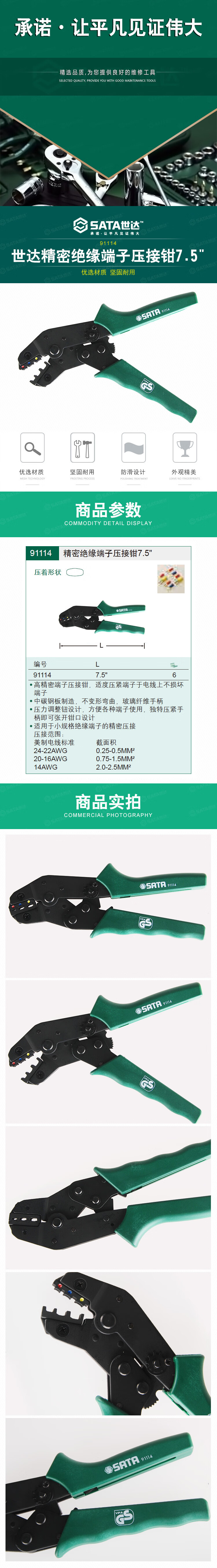 SATA 91114 precision insulated terminal crimping pliers
