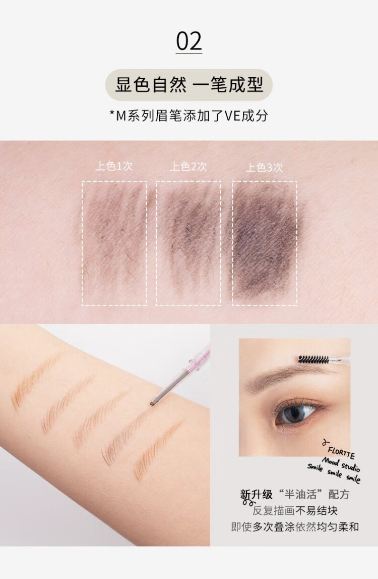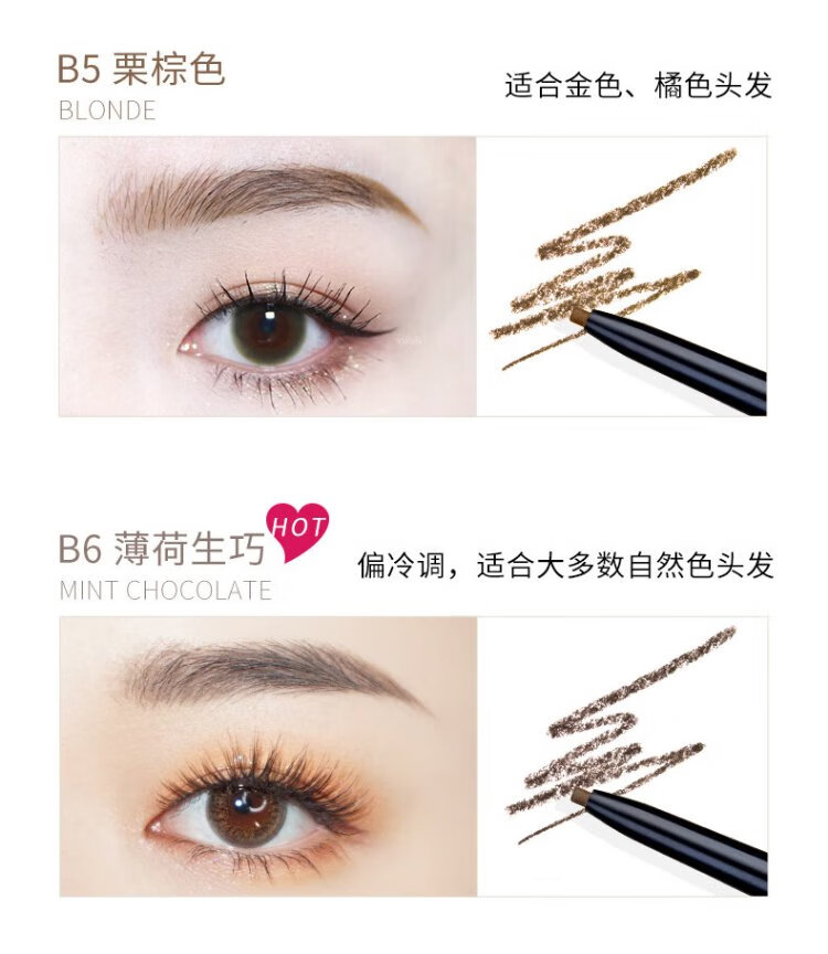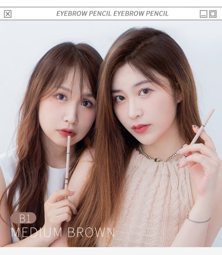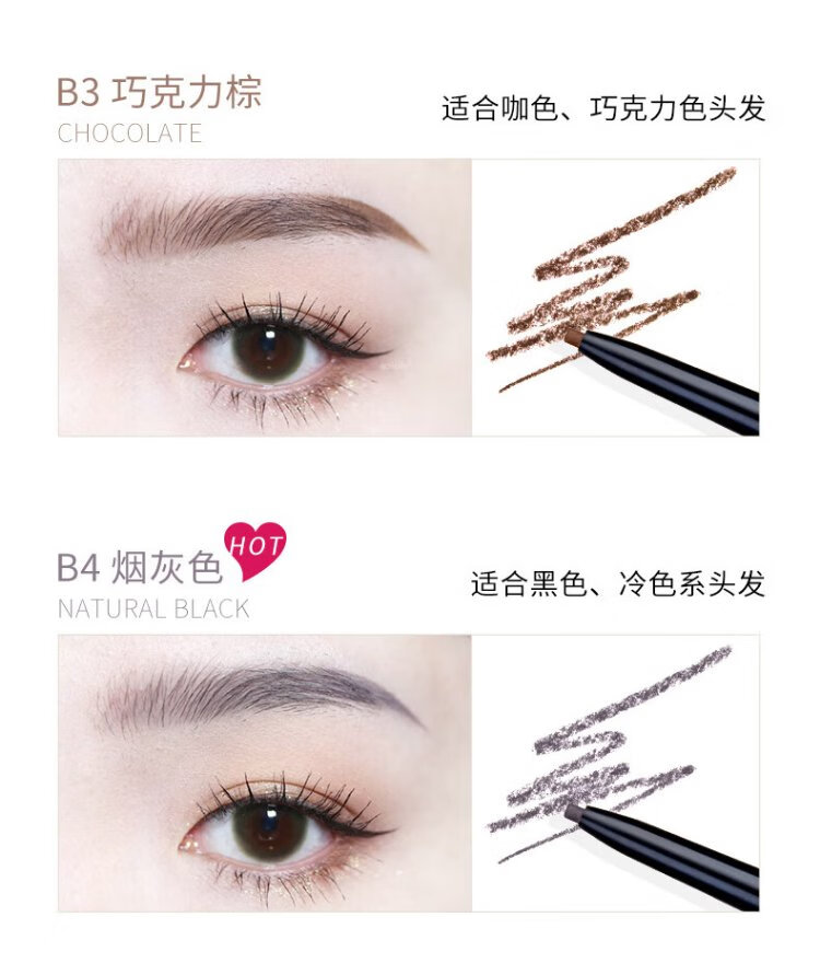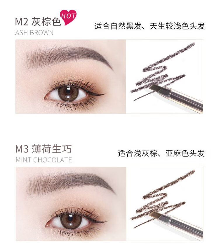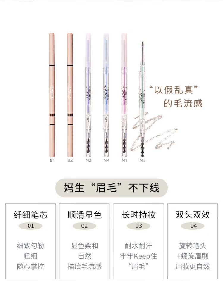 FLORTTE rotating double-headed ultra-fine eyebrow pencil waterproof and sweat-proof, long-lasting and non-fading wild eyebrow gift B1# natural brown