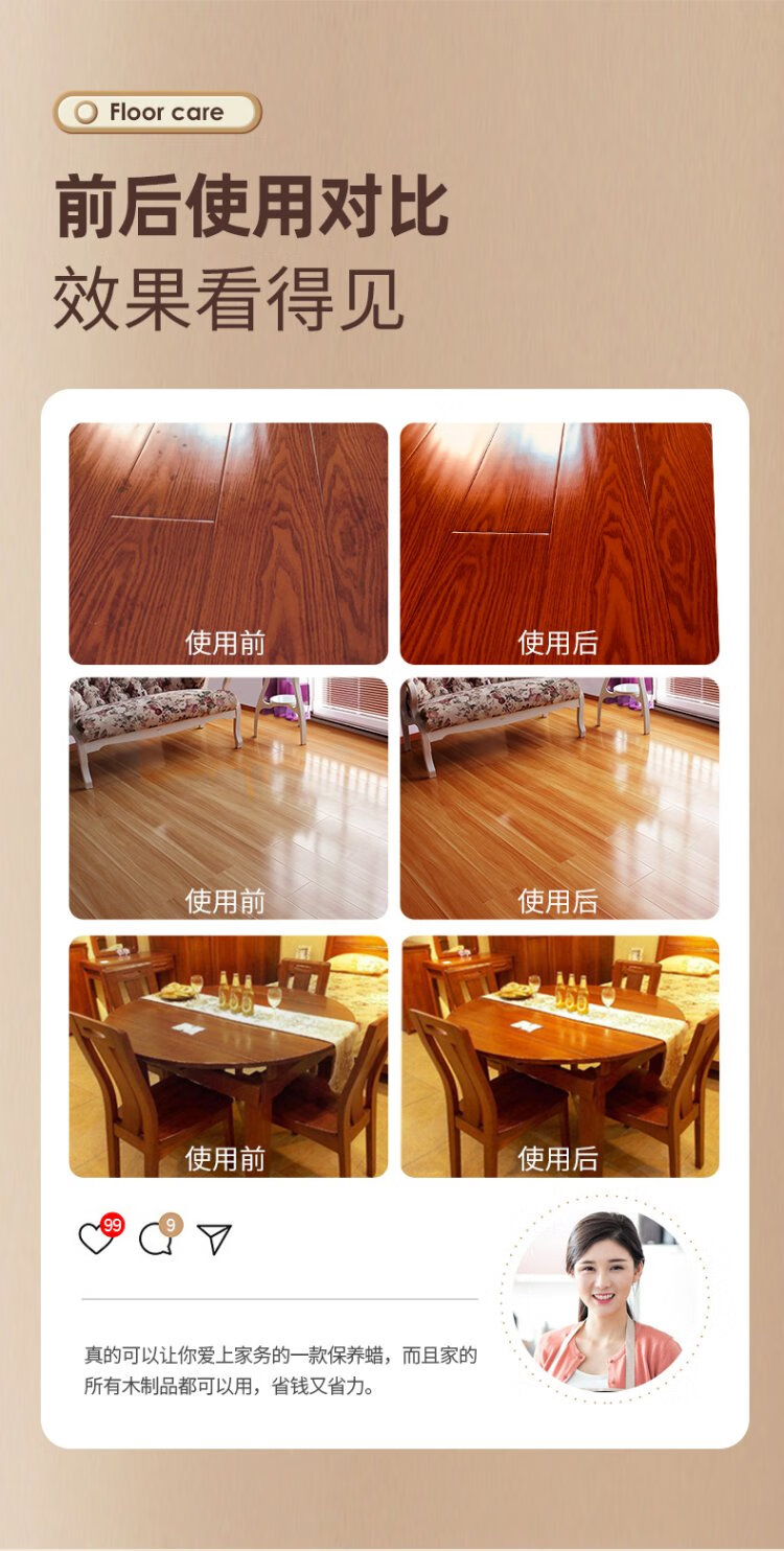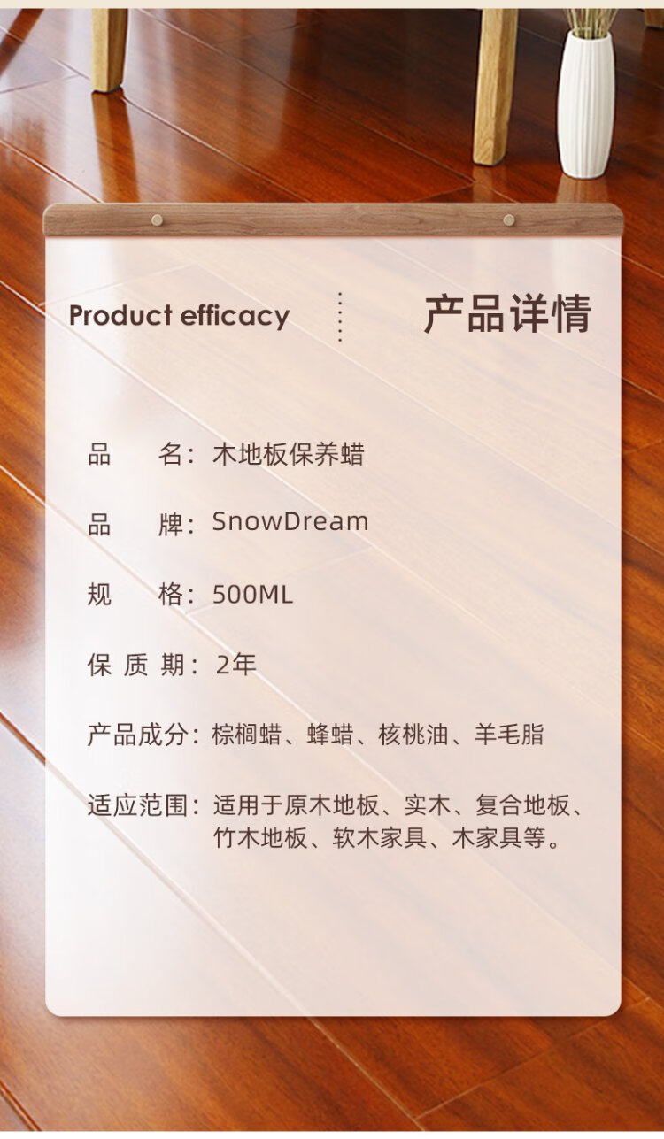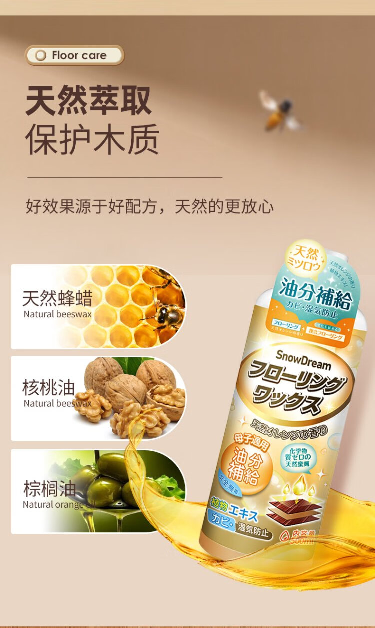 SnowDream Japanese wood floor wax solid wood composite floor care waxing anti-cracking mahogany furniture long-lasting care beeswax