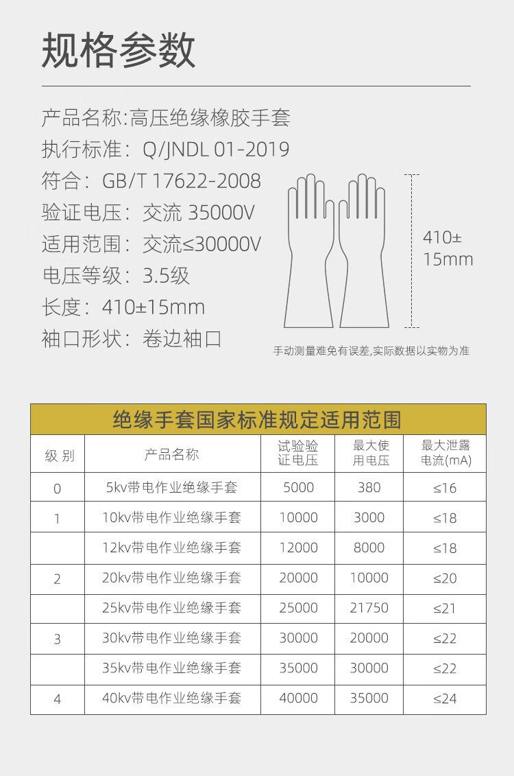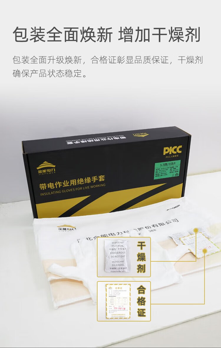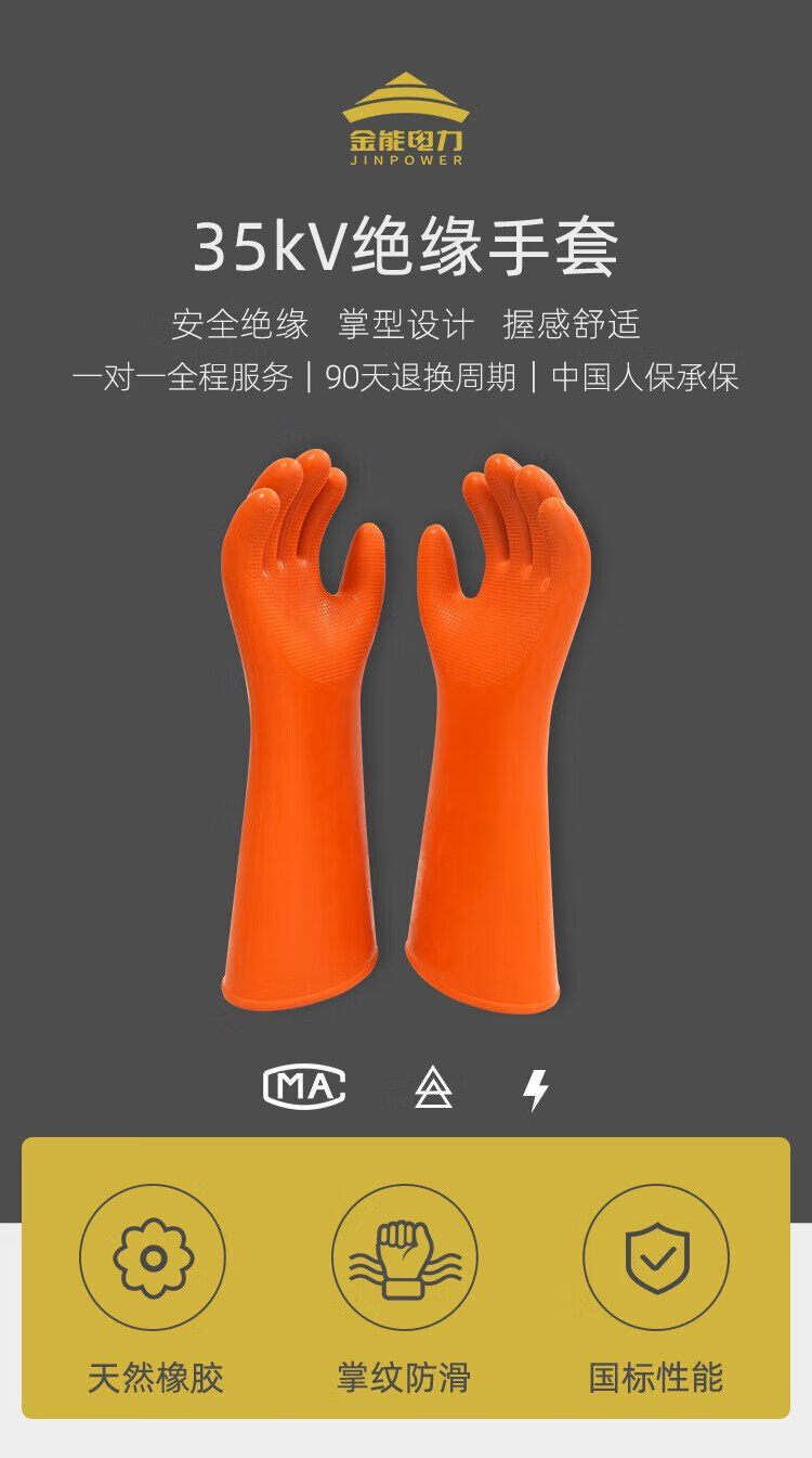 Jinneng Electric Power 35KV high voltage insulated gloves electrician rubber gloves are suitable for auxiliary equipment below 30kv