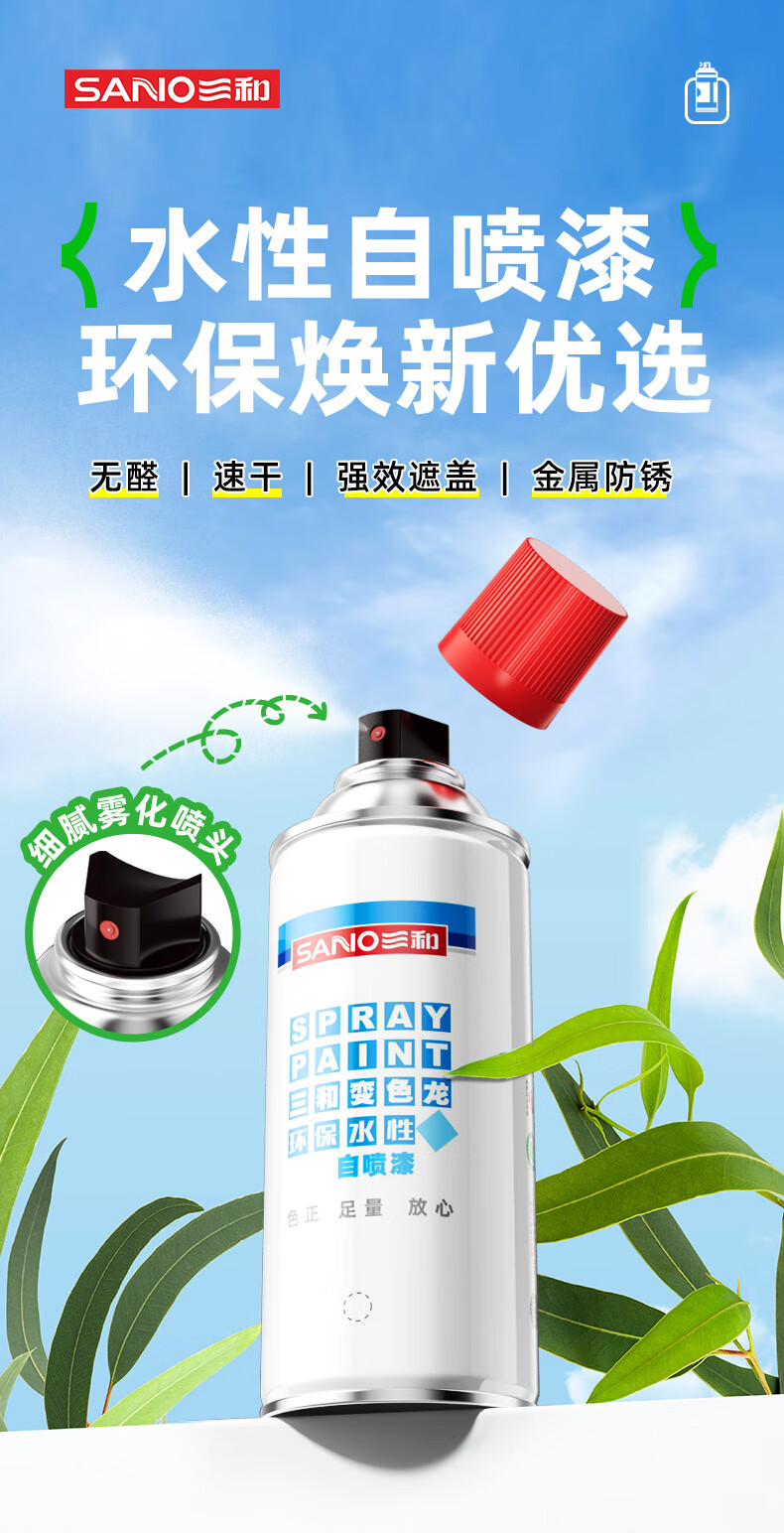 Sanhe water-based self-spray paint, metal anti-rust paint, automatic spray paint, color-changing paint, environmentally friendly paint 350ml water-based 125 silver gray