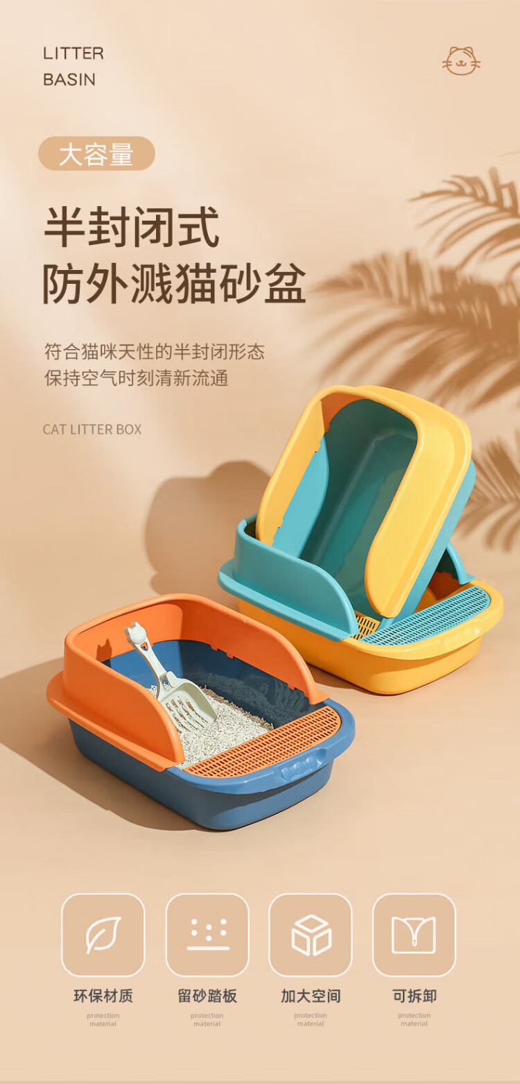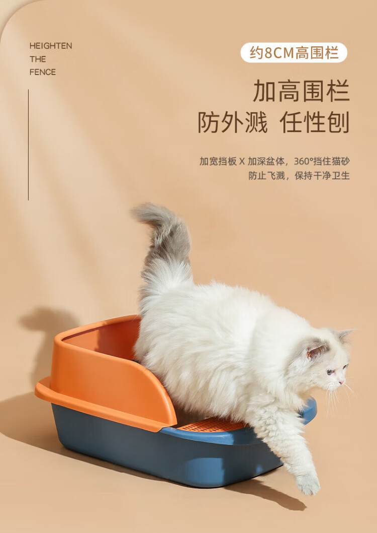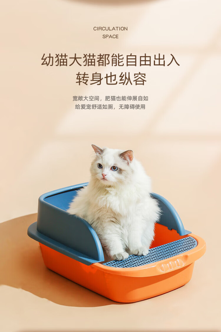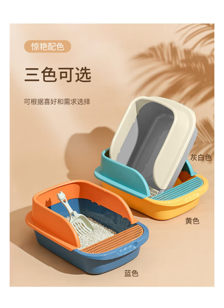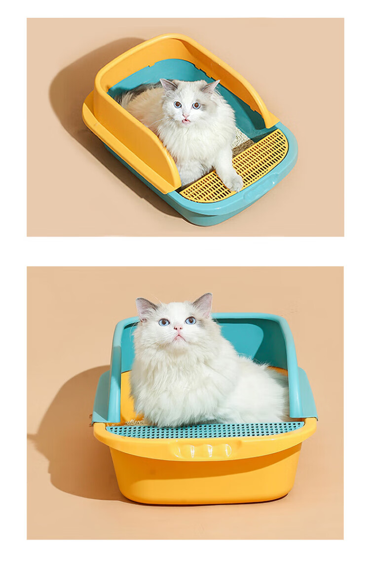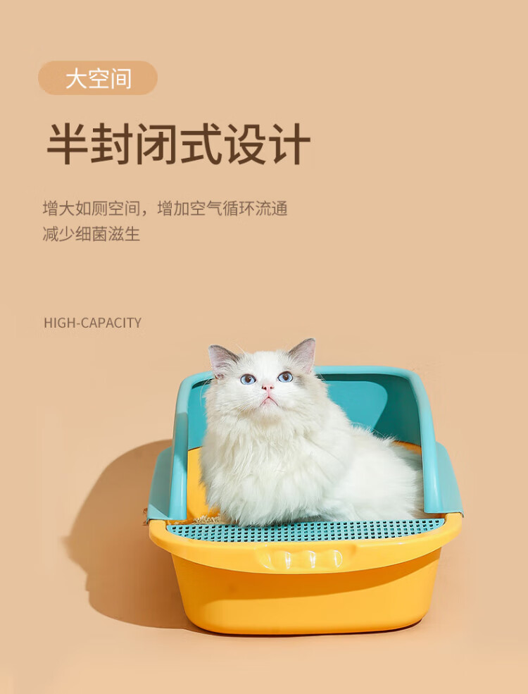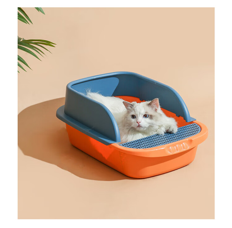 Wang Yejun cat litter box semi-enclosed top-in cat toilet to prevent splashing kitten adult cat cat litter box cat litter box with cat litter shovel medium size